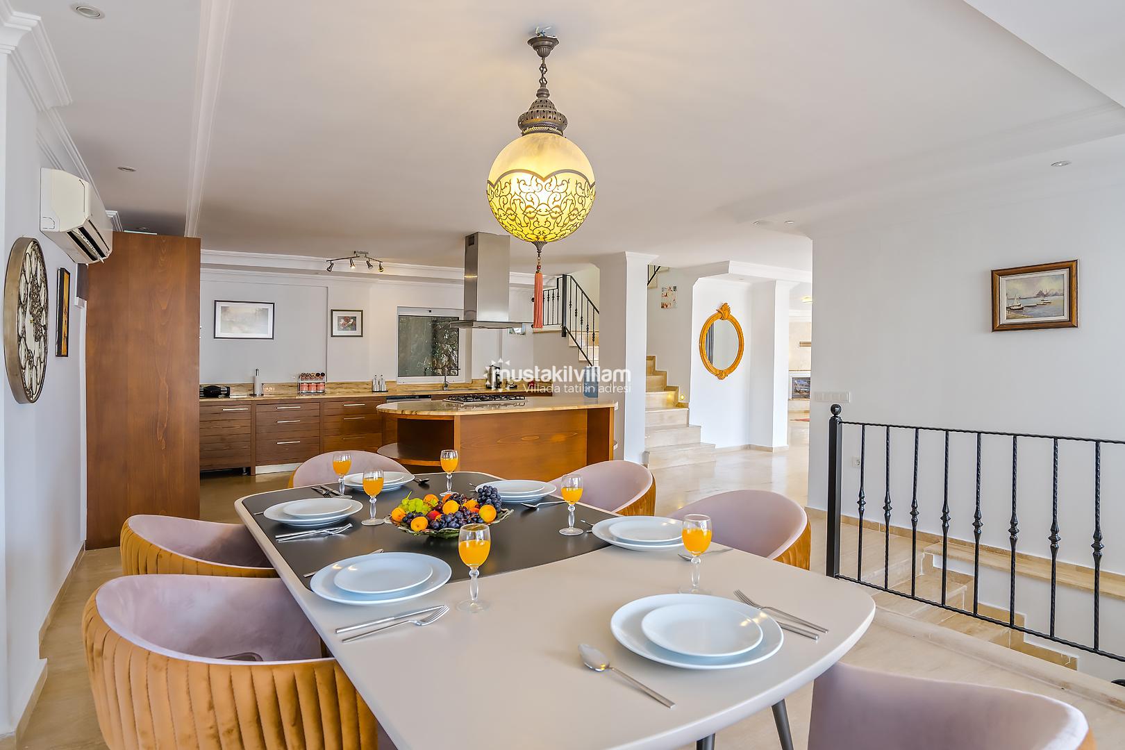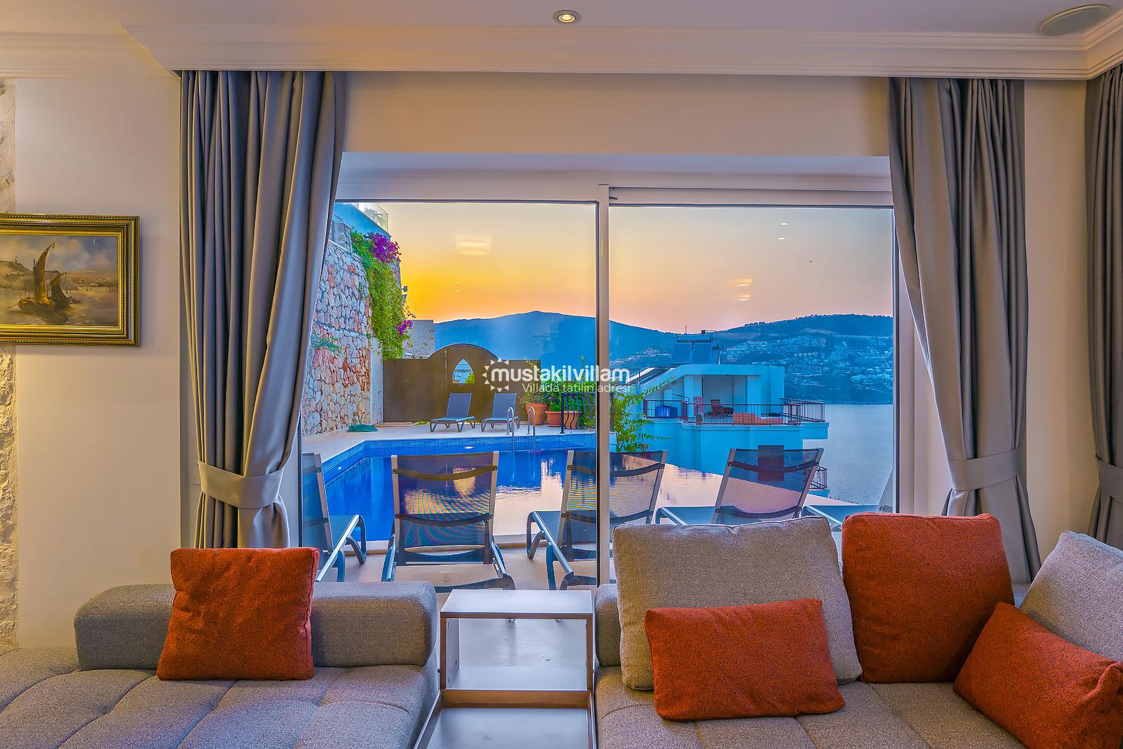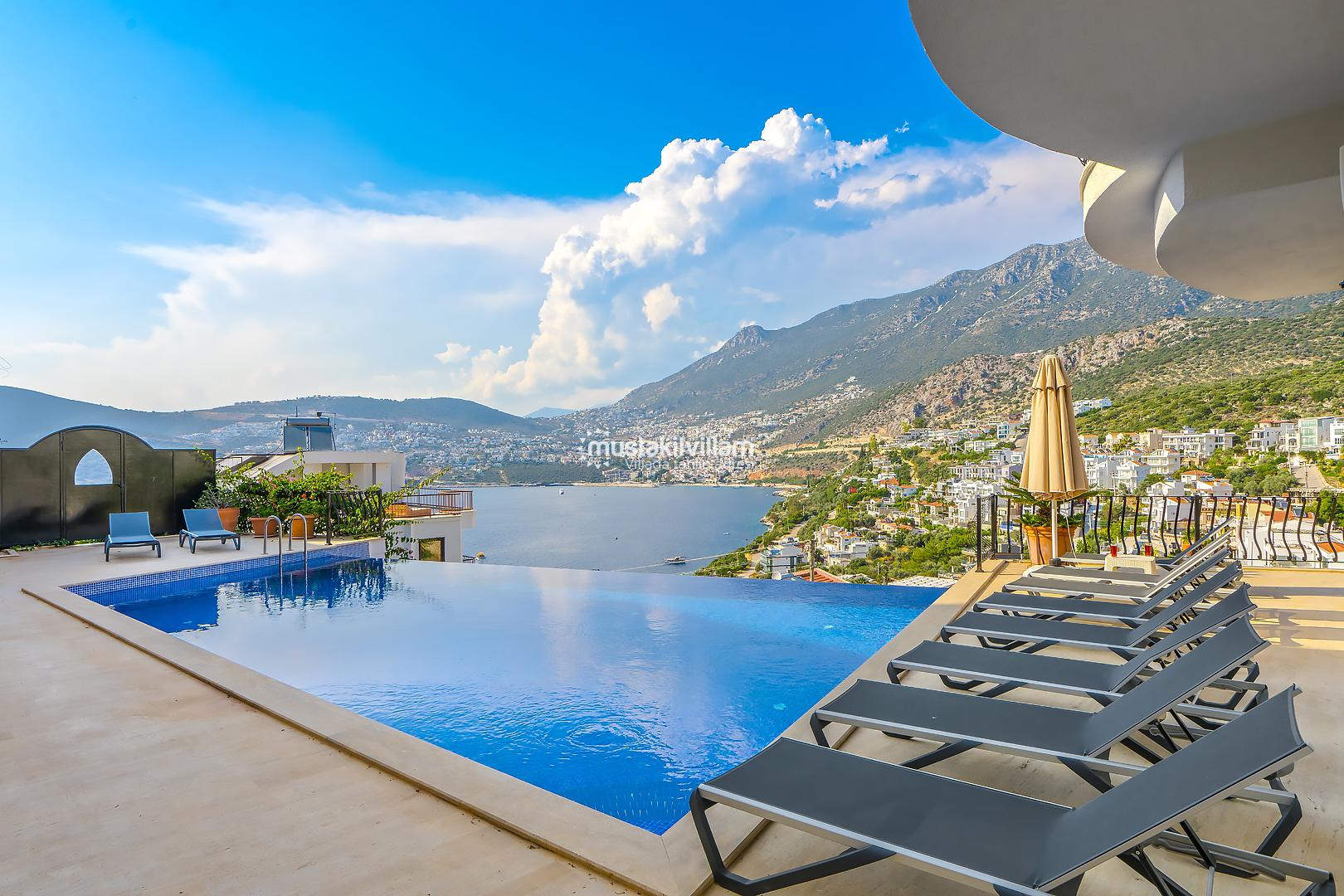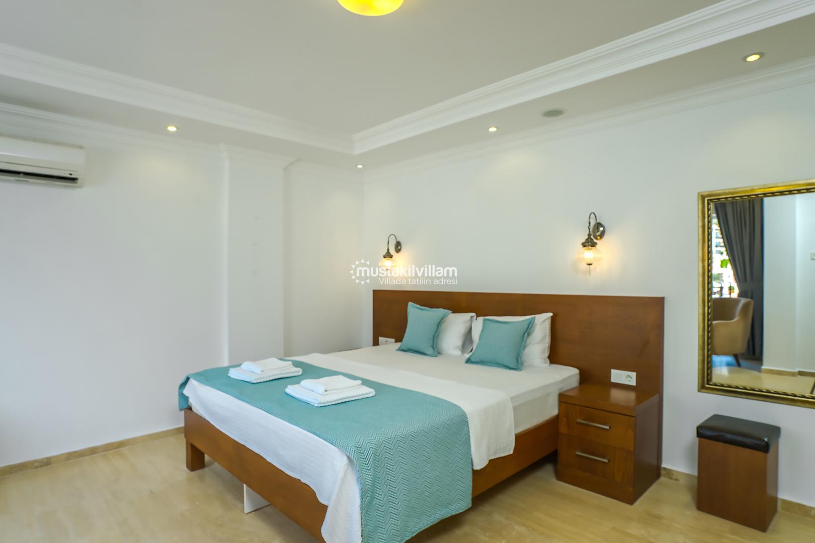 Villa Mavna Özlem, Kalkan’ın seçkin Kışla Bölgesi'nde yer alan, lüks ve konforu bir arada sunan özel bir tatil villasıdır. Modern mimarisi, şık dekorasyonu ve Akdeniz'e hakim konumuyla dikkat çeken villa, Kalkan Körfezi'nin etkileyici gün batımı manzarasına ev sahipliği yapar. Zeytin ağaçlarıyla çevrili özel bahçesi, geniş sonsuzluk havuzu, oyun odası ve konforlu yaşam alanlarıyla Villa Mavna, kalabalık aileler ve arkadaş grupları için ideal bir seçenektir. Toplam 5 yatak odası ve 5 banyosu bulunan villada, 10 kişiye kadar konaklama imkânı sunulmaktadır. Tüm odalarda klima, yüksek hızlı internet, tam donanımlı mutfak, özel otopark ve her detayda kalite ön planda tutulmuştur. Villa Mavna, doğayla iç içe ama modern yaşamın tüm ayrıcalıklarını sunan seçkin bir tatil deneyimi vadeder.