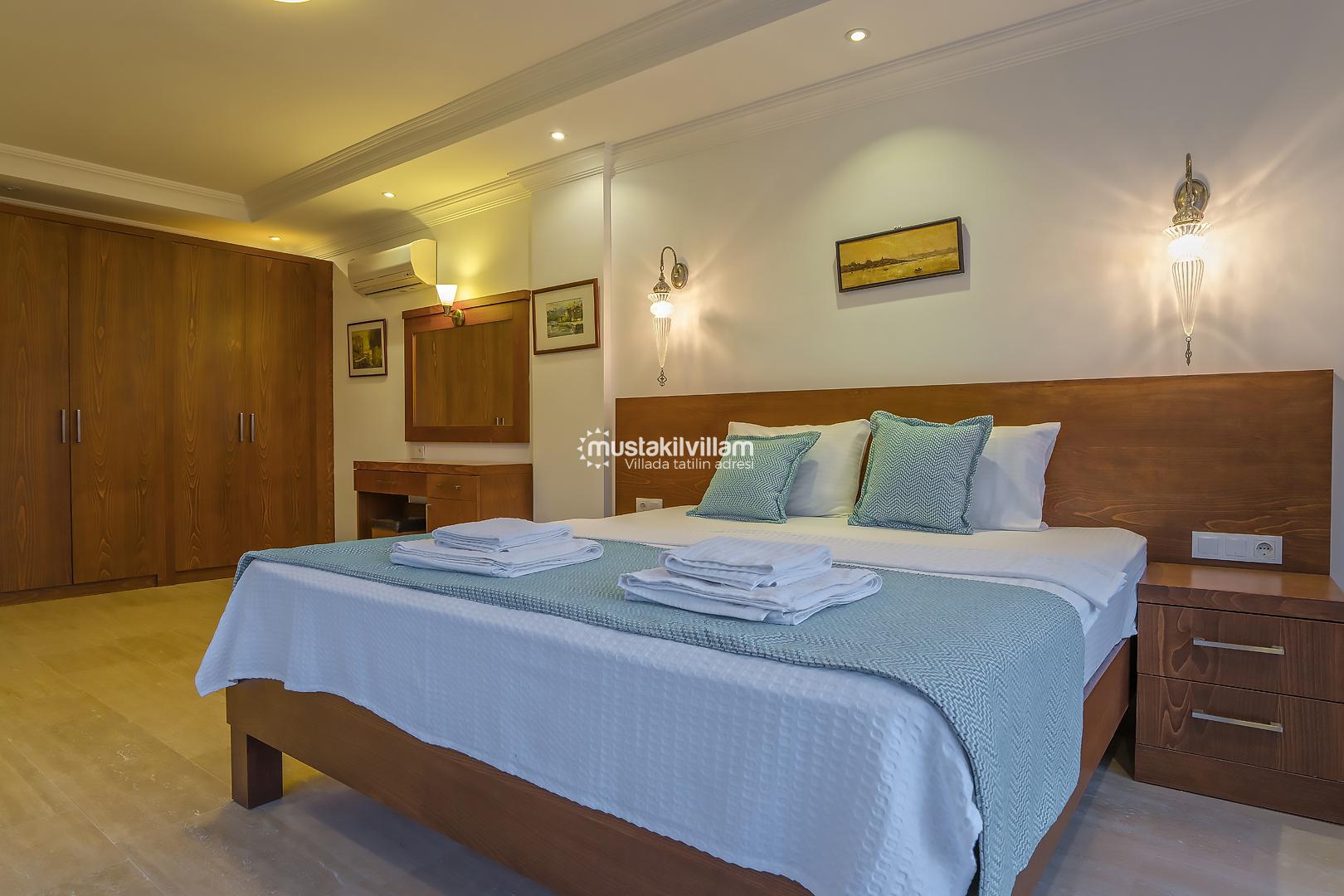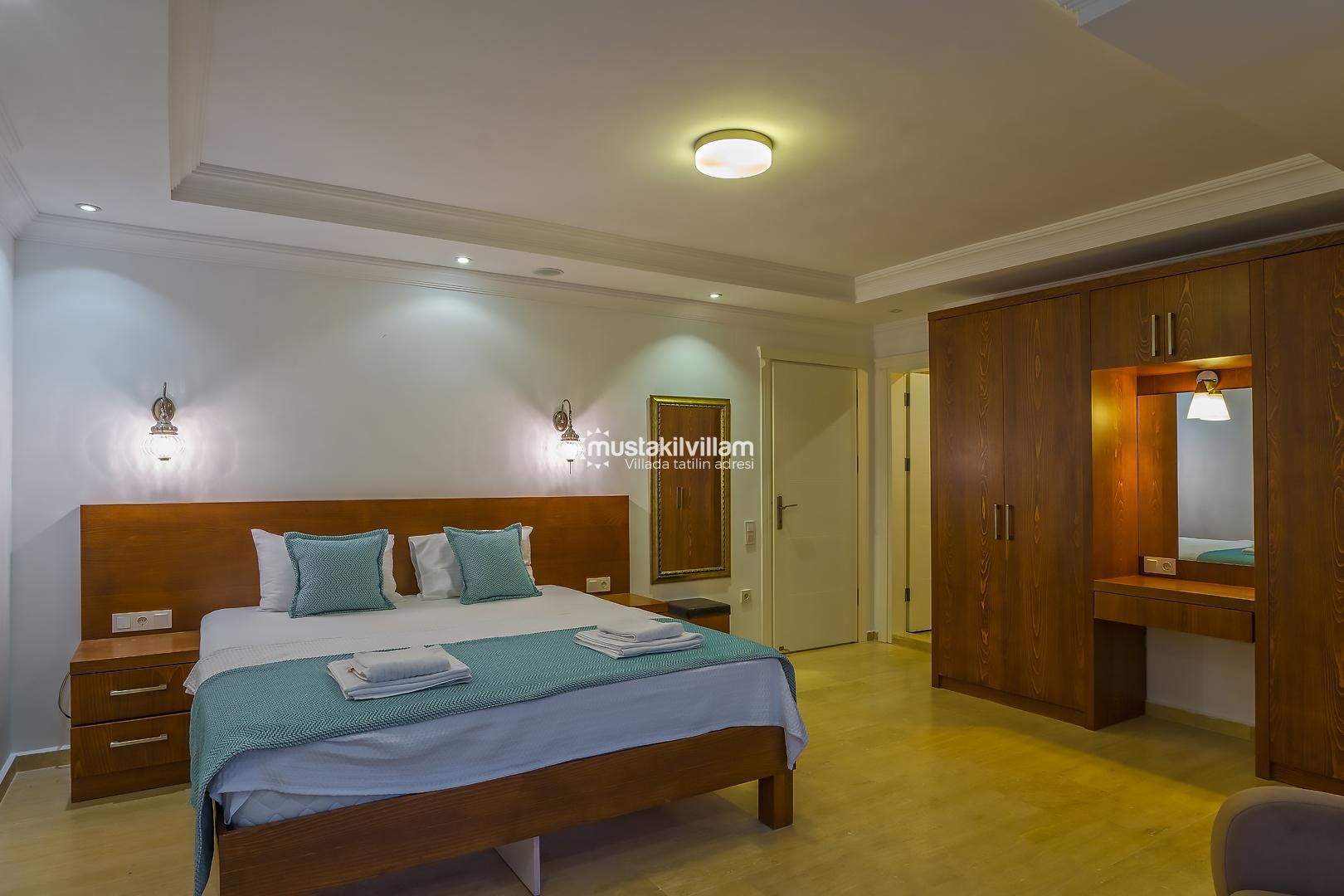 1. Yatak Odası 1 Çift Kişilik Yatak + Elbise Dolabı + Komidin + Klima + Ebevyn Banyo