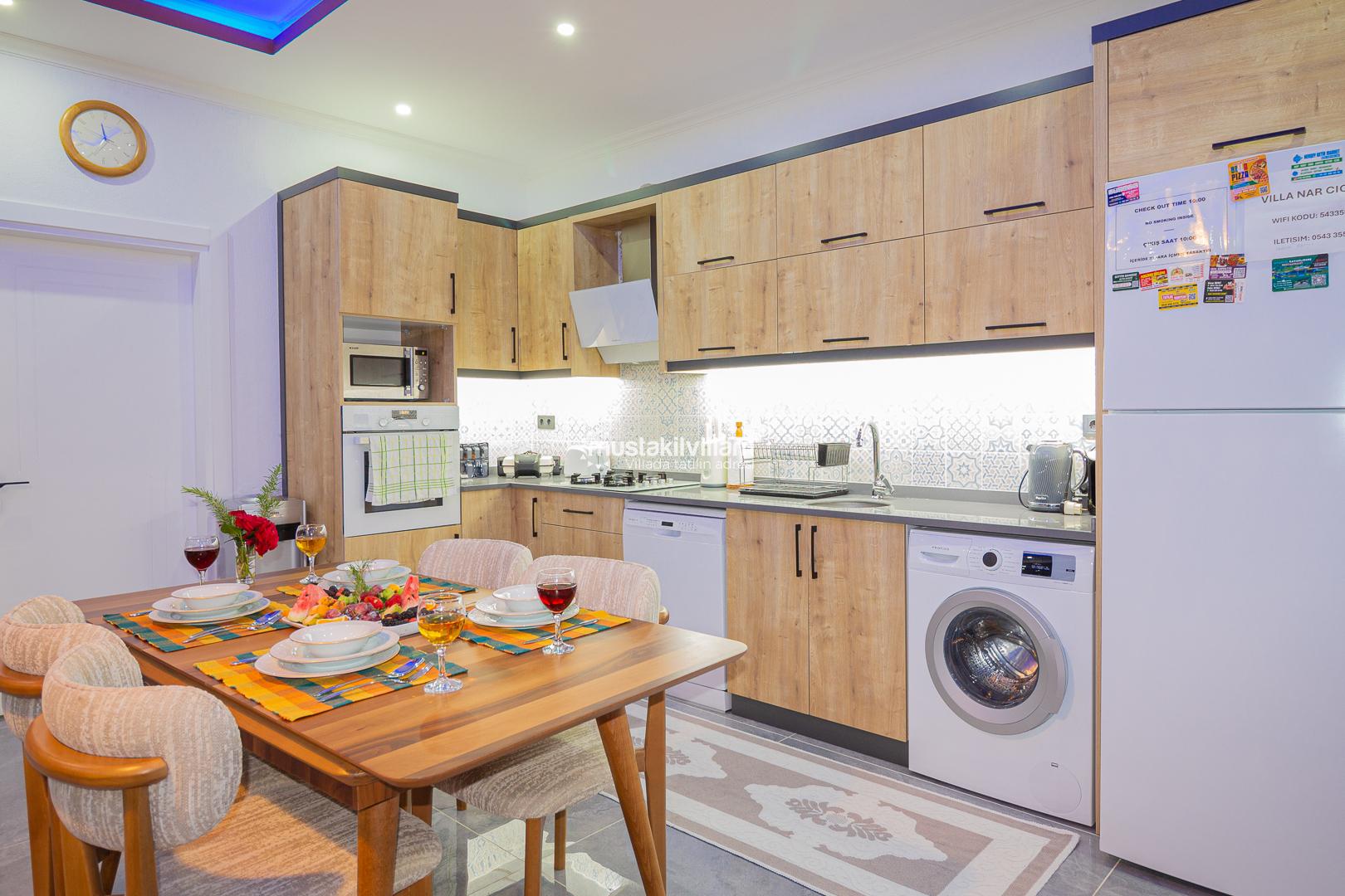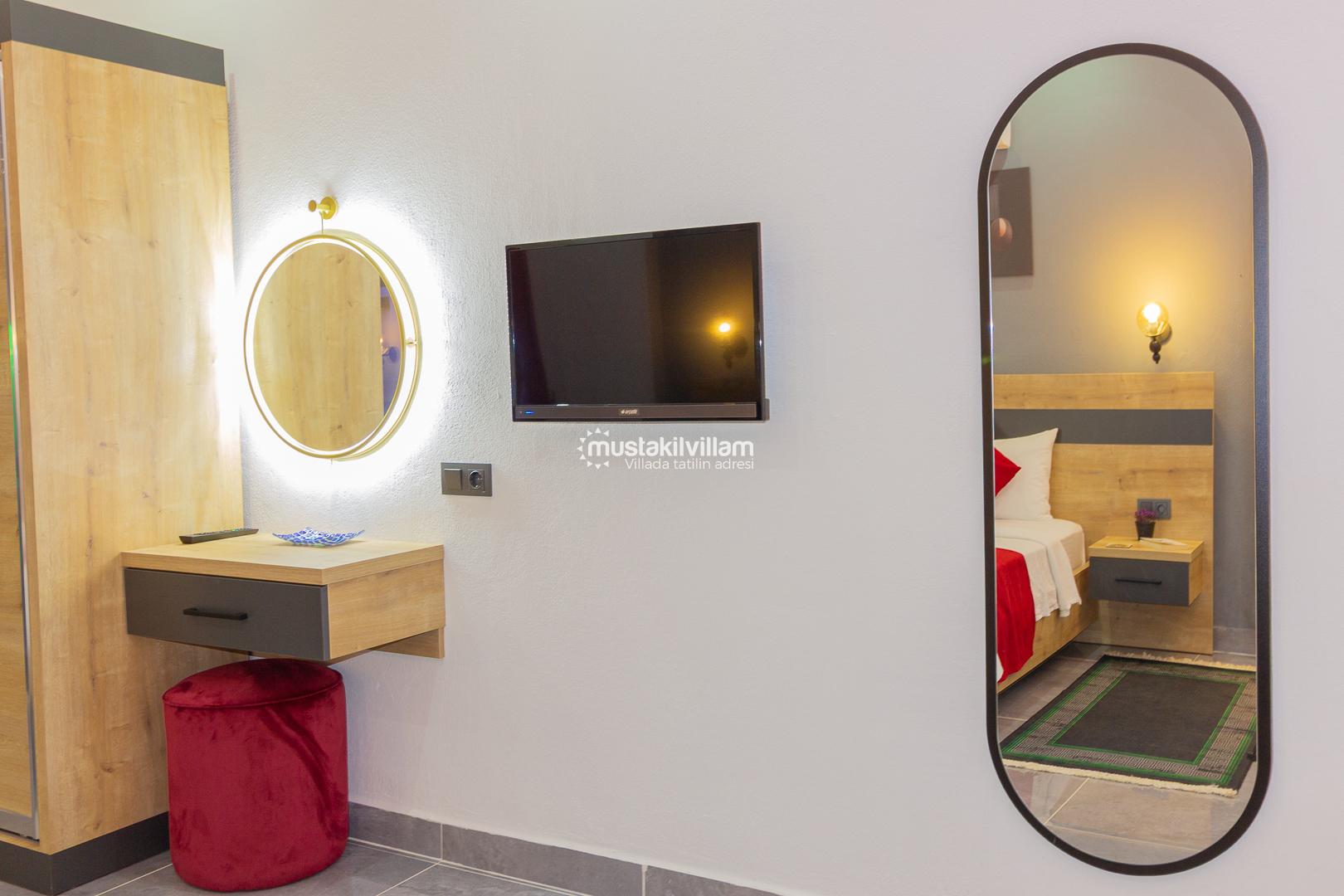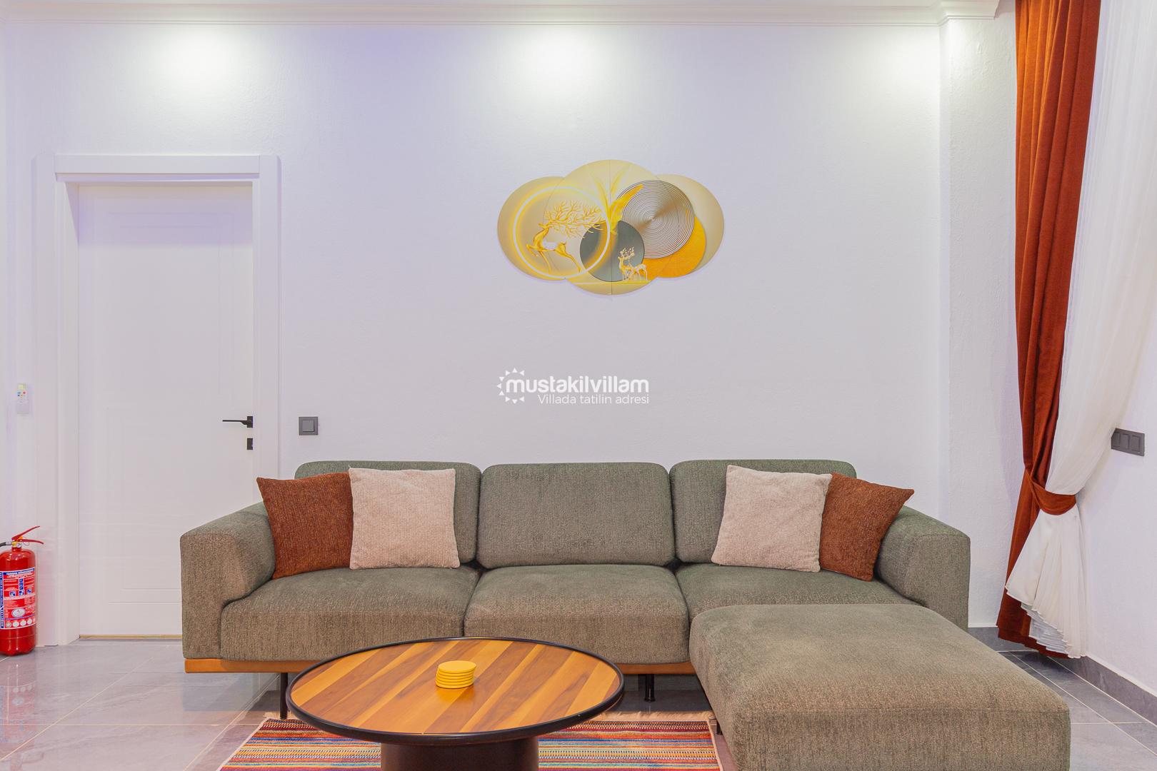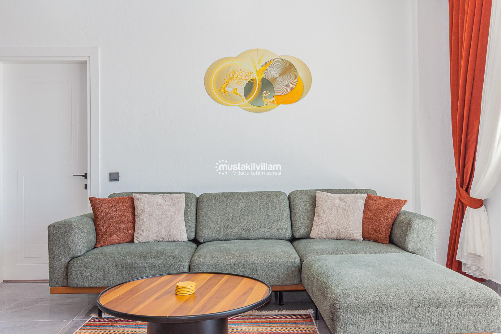 Modern ve zevkli dekorasyona sahip iç mekanları, ferah yaşam alanları ve konforlu mobilyalarıyla evinizin rahatlığını tatilde de yaşamanızı sağlar.