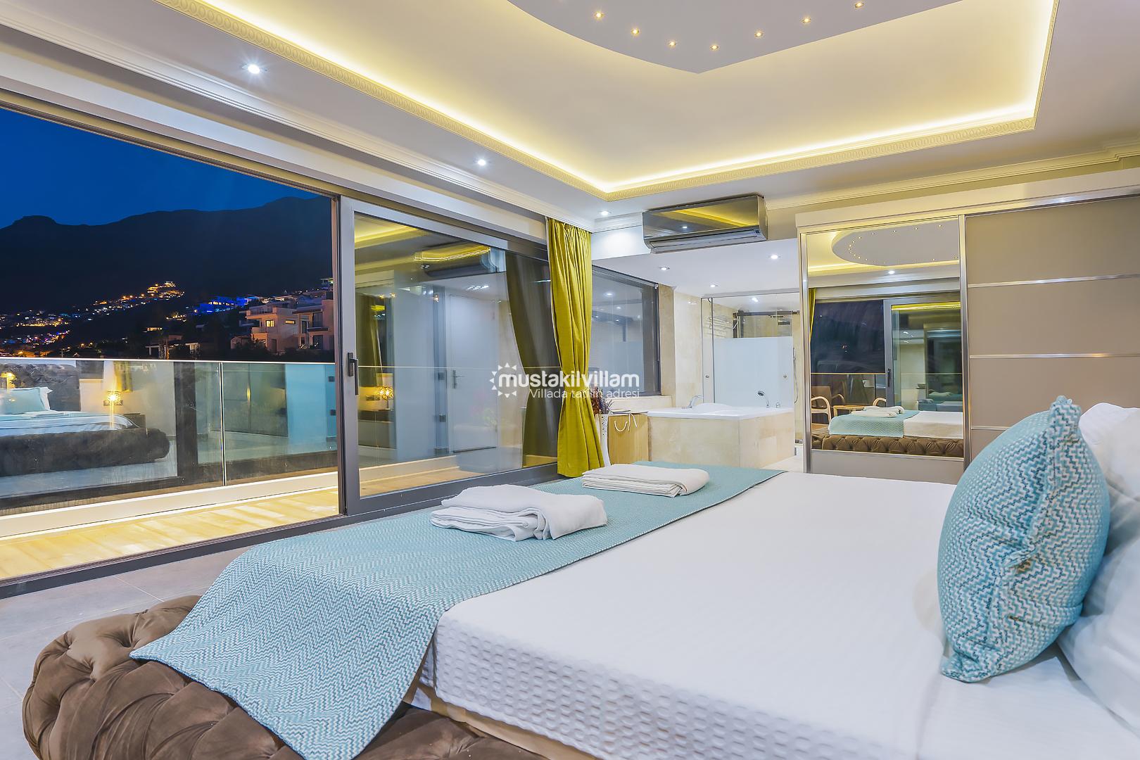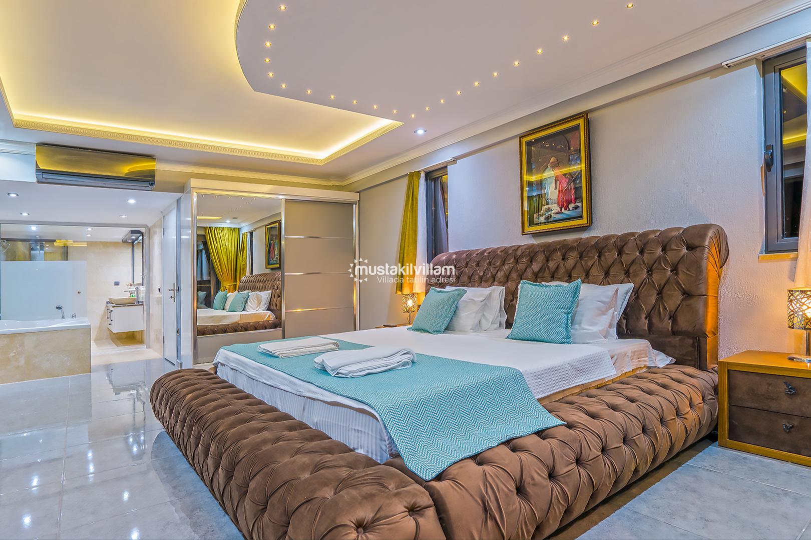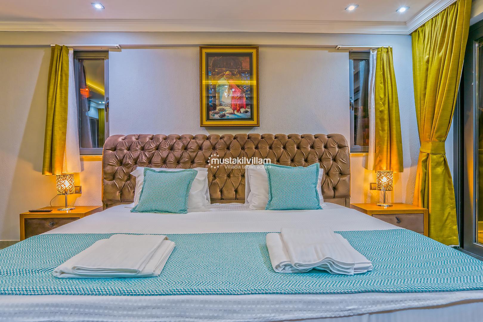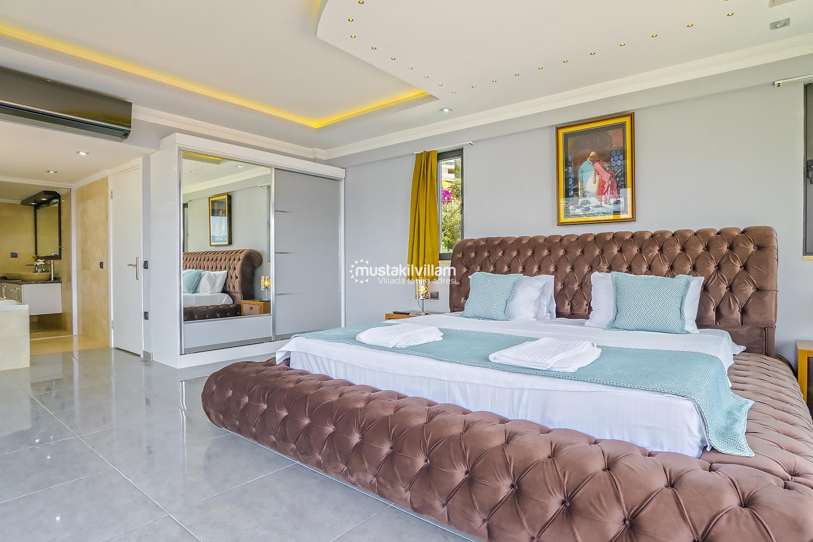 1. Yatak Odası 1 Çift Kişilik Yatak + Klima + Elbise Dolabı + Makyaj Masası + Ebeveyn Banyo +jakuzi