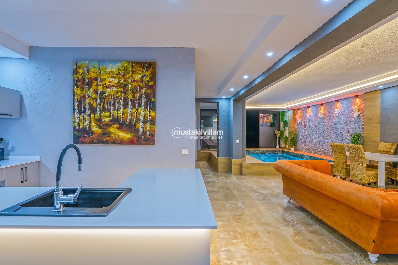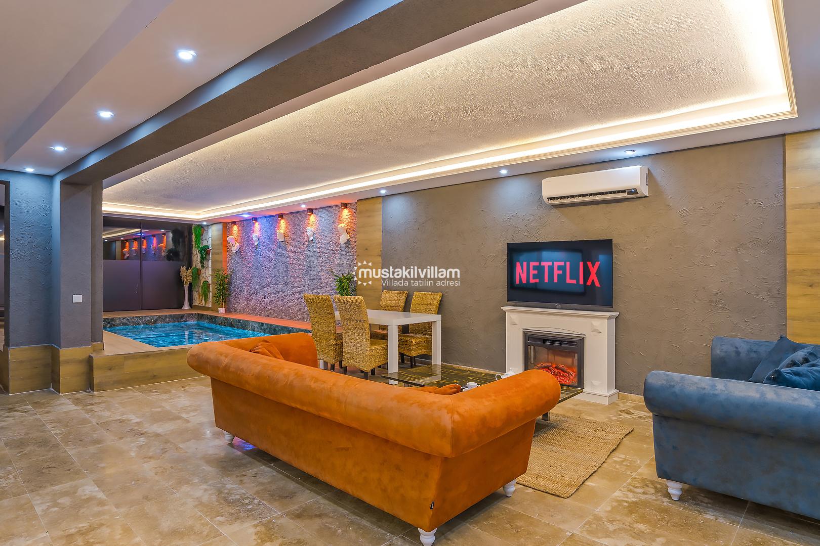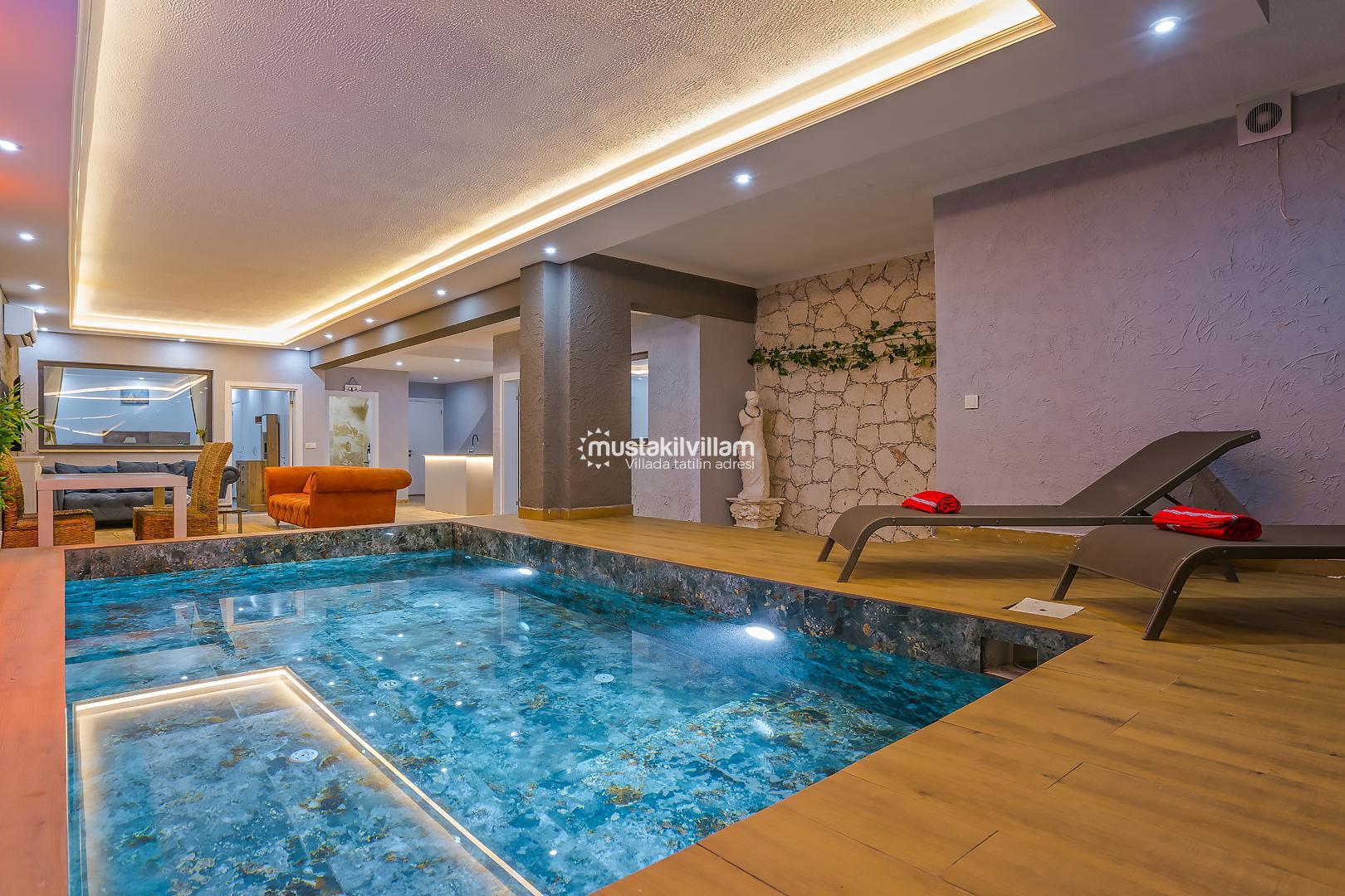 NOT: Kapalı yüzme havuzu maksimum 27 29 derece arasındadır.Havuz ısıtması opsiyonel olup ısıtma isteyen misafirlerimiz için gecelik 2.000 tl karşılığında aktif edilecektir.