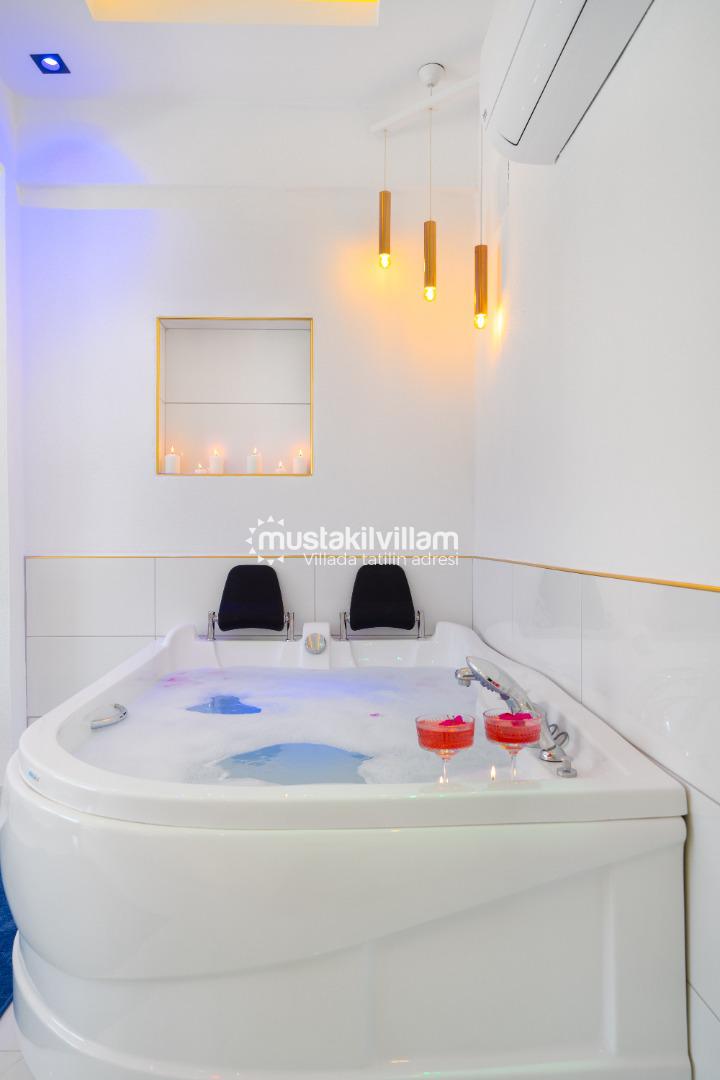 1. Yatak Odası 1 çift kişilik yatak + komidin + elbise dolabı + makyaj masası + ebeveyn banyo + Klima+jakuzi