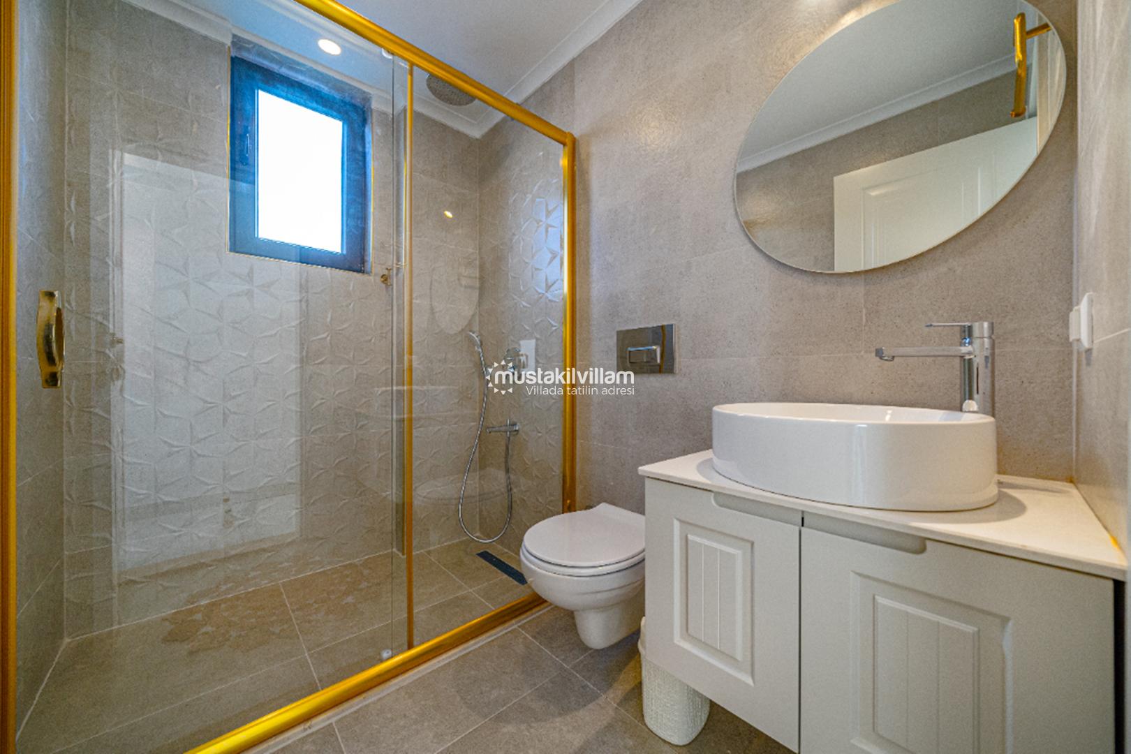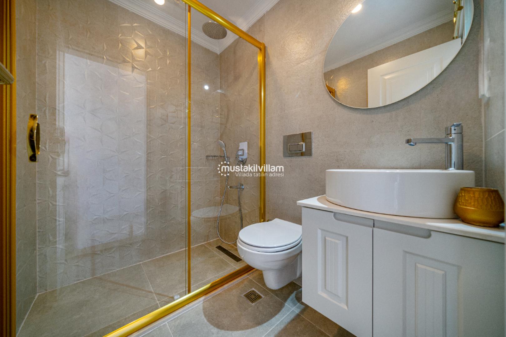 Villa Akçam'ın en büyük konfor avantajlarından biri, 4 yatak odasının her birinin kendi özel banyosuna sahip olmasıdır. 8 kişilik bir grup konaklamasında sabah trafiği yaşanmaz, herkes kendi alanında tamamen özgürdür.