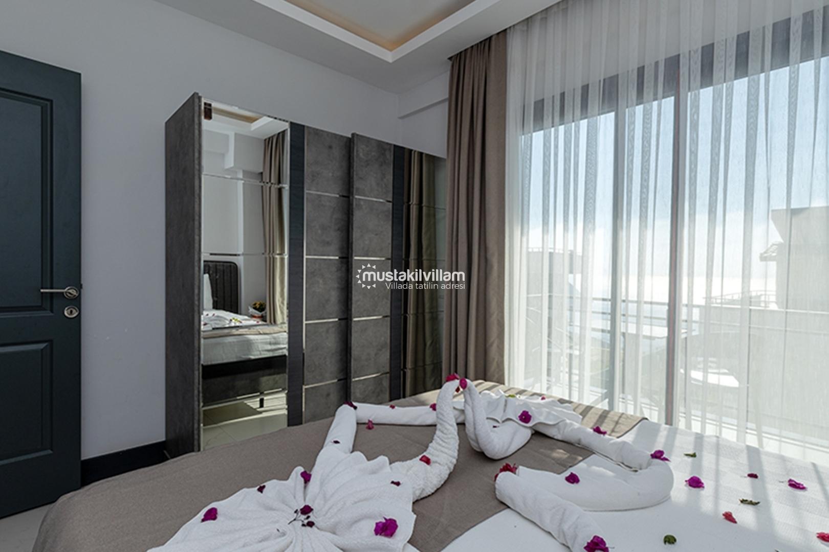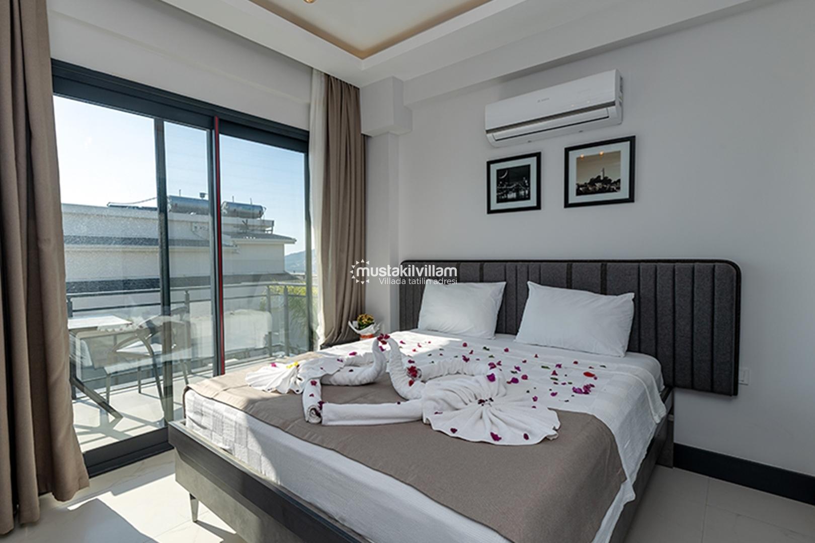 Villa Akik, toplam 4 yatak odası ve 4 banyosu ile maksimum 8 kişilik konaklama imkânı sağlar. Villanın tüm odaları suit olarak düzenlenmiş olup, modern tasarım, klimalı odalar ve özel banyolarla donatılmıştır. Bu yapı, ailelerin ve arkadaş gruplarının tatil boyunca konforlu bir konaklama deneyimi yaşamasını sağlar.