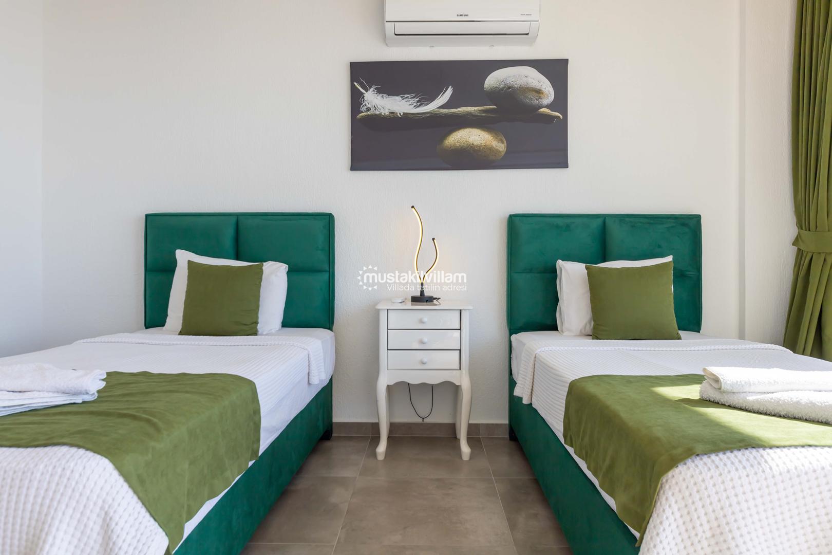 2. Yatak odası 2 tek kişilik yatak + elbise dolabı + komidin + ebeveyn banyo