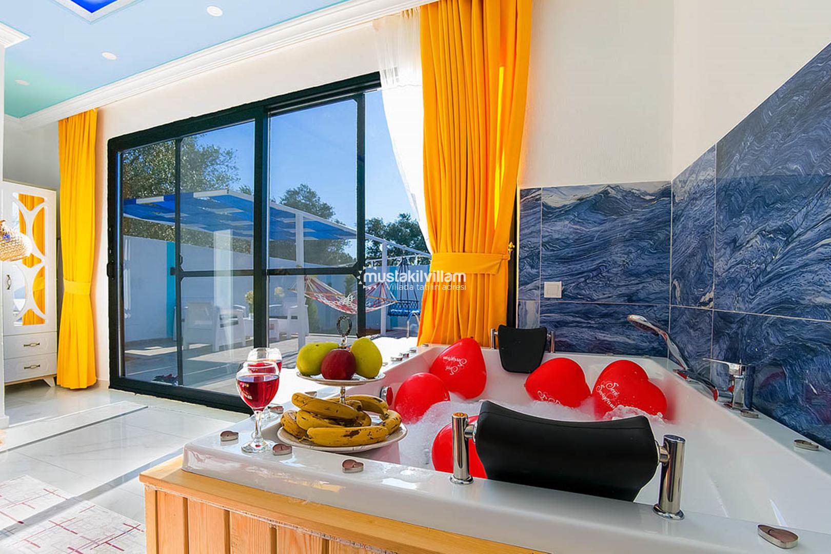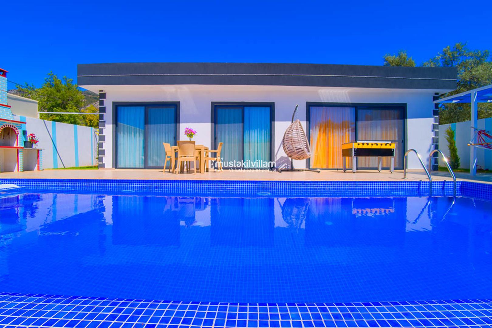 Kalkan Üzümlü mevkiinde konumludur. Bir adet yatak odası bulunmaktadır. 2 kişi konaklama kapasitesine sahiptir.Villamızın yatk odasında jakuzi yer almaktadır. Havuz terası korunaklı olup muhafazakar çiftlerimiz için oldukça ideal kiralık tatil villasıdır.Bahçe alanında lagırt ve salıncak bulunan villamızda keyifli bir tatil geçirmenize olanak sağlamaktadır.