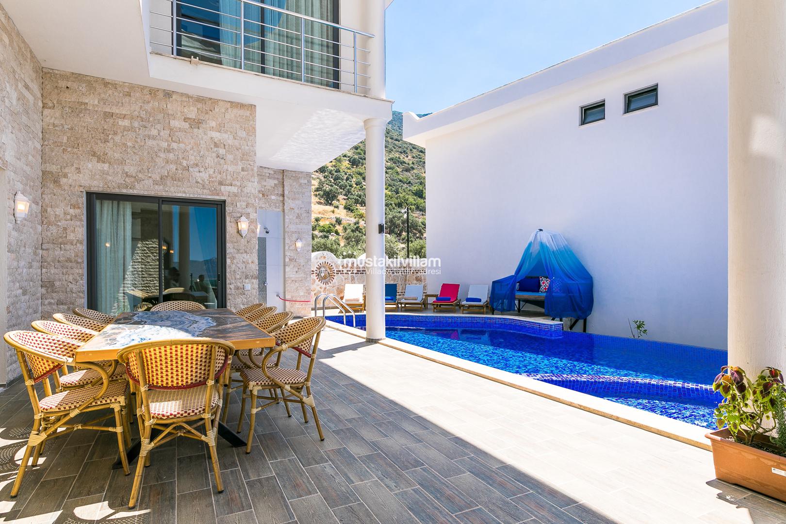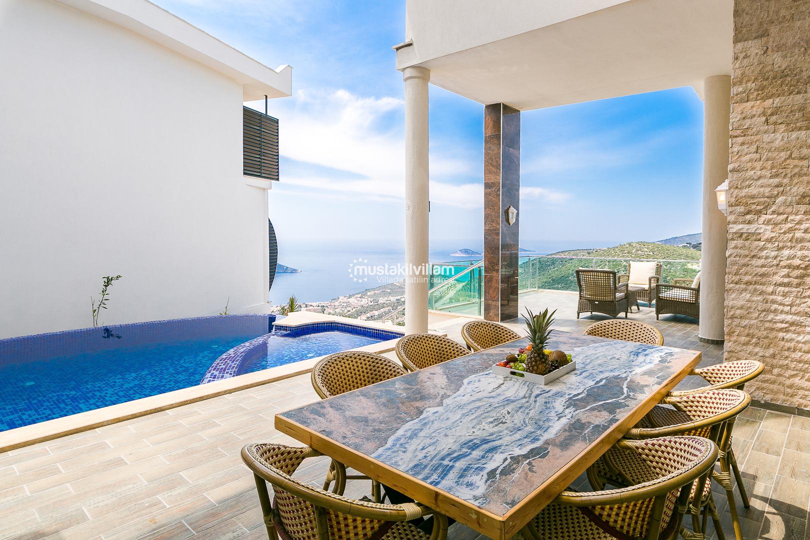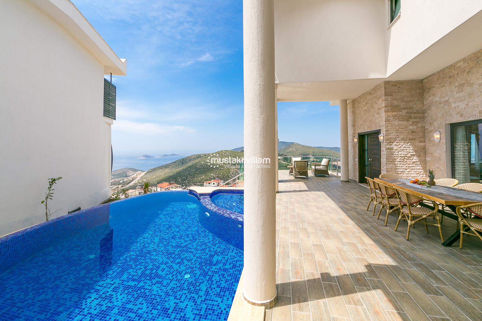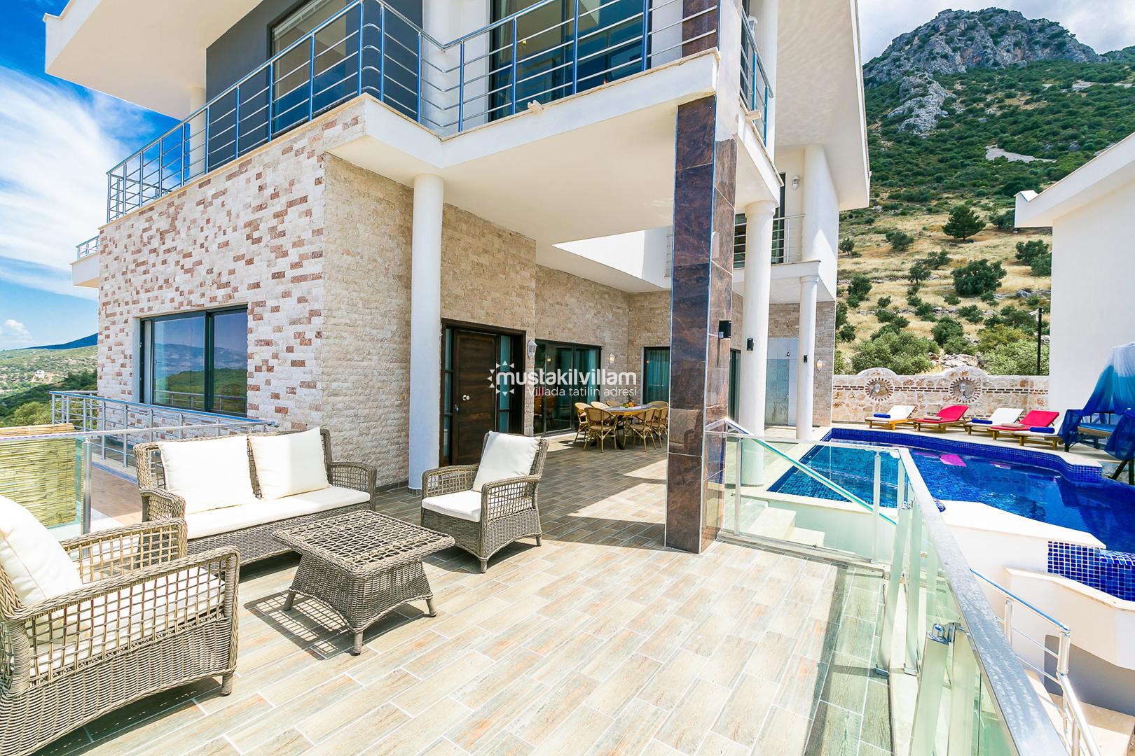 Kalkan Akbel mevkiinde konumlu Villa Excellence Hill, muhteşem deniz manzarasına hakim 5 yatak odalı 10 kişi konaklama kapasiteli tatil villasıdır. Geniş aile ve arkadaş gruplarının tercih edebileceği villamızın ferah ve donanımlı havuz terasında keyifli bir tatil geçirebilirsiniz.Ayrıca villamızda ana havuz hariç teras katında manzara eşlik eden havuzu bulunmaktadır