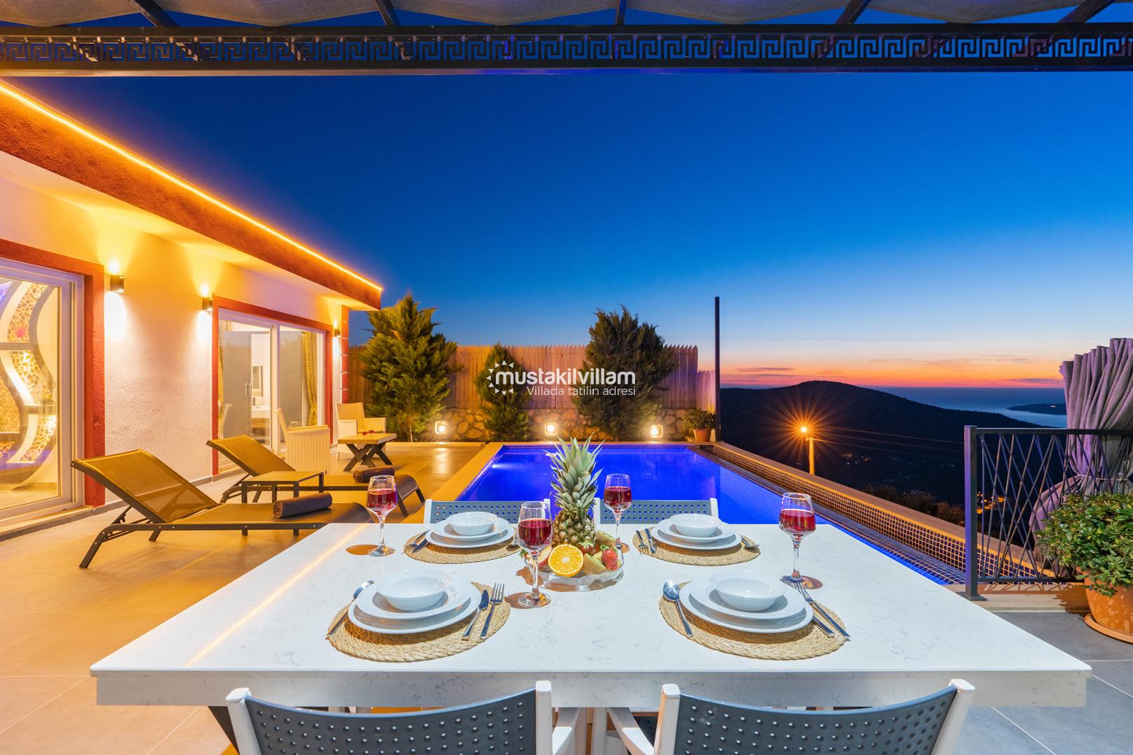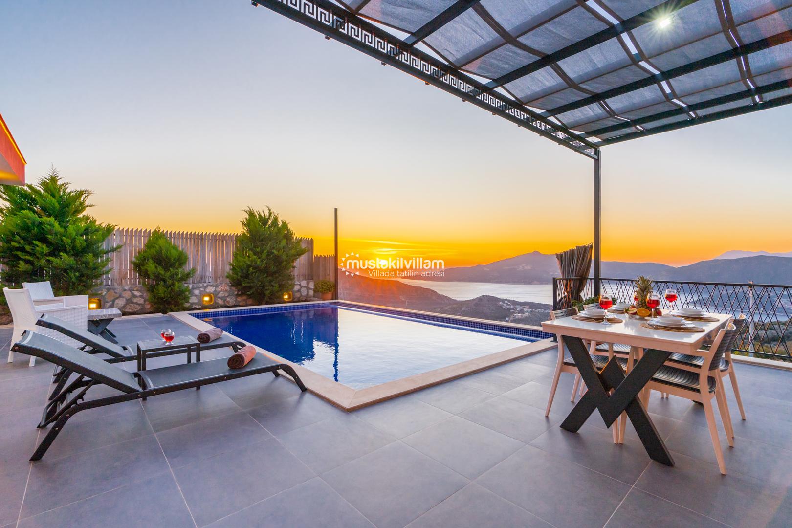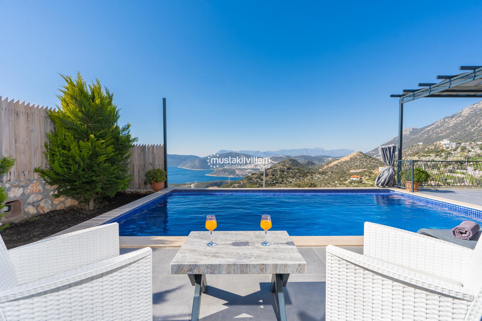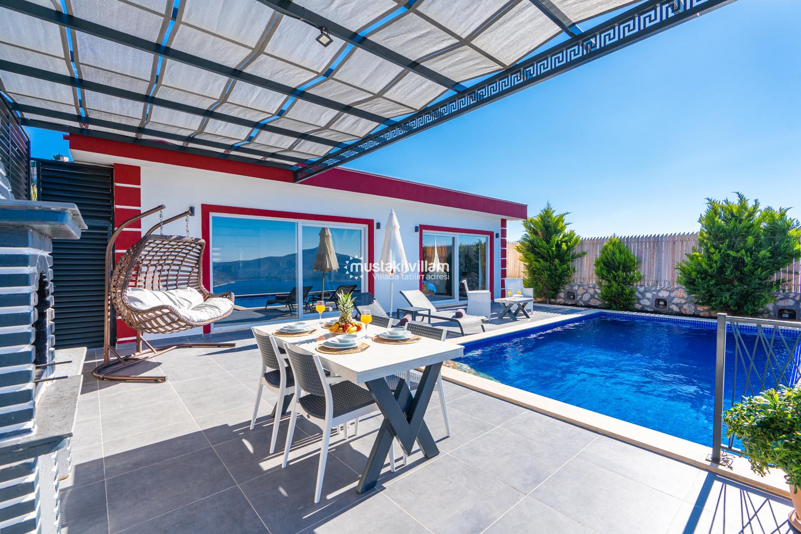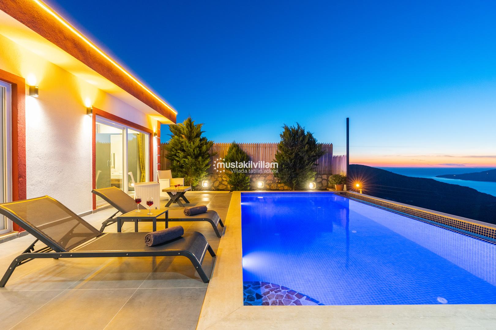 Kalkan Ordu mevkiinde yer alan Villa Ferah eşsiz deniz manzarasına sahip tek yatak odalı kiralık balayı villasıdır. İç tasarım ve dizaynıyla oldukça keyifli bir yapıya sahip bu villamızda unutulmaz bir tatil ve balayı geçirme fırsatı sizleri bekliyor. Deniz manzaralı özel havuza sahip villamız muhafazakar çiftlerimiz için oldukça idealdir. Yatak odasında jakuzi bulunmaktadır.