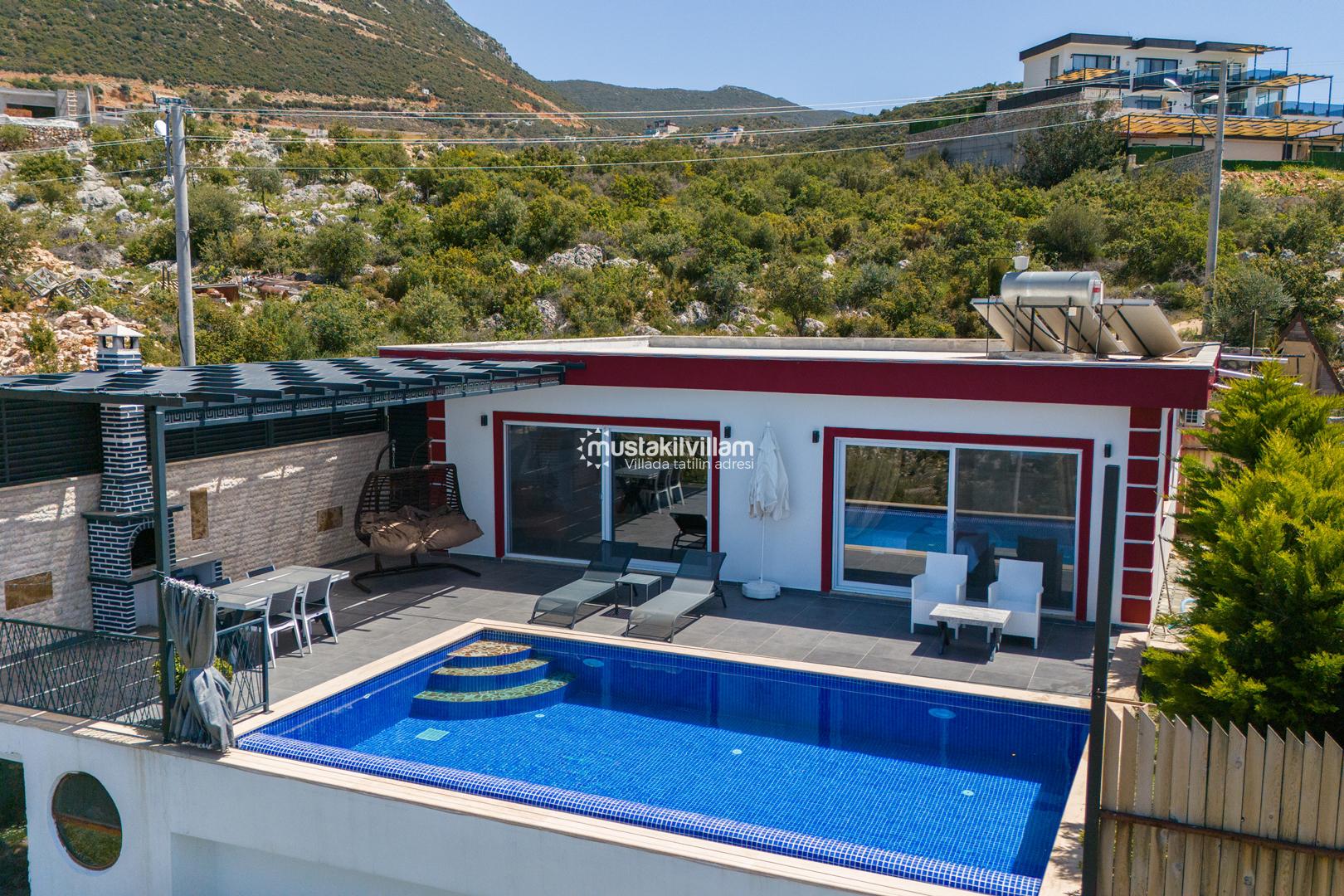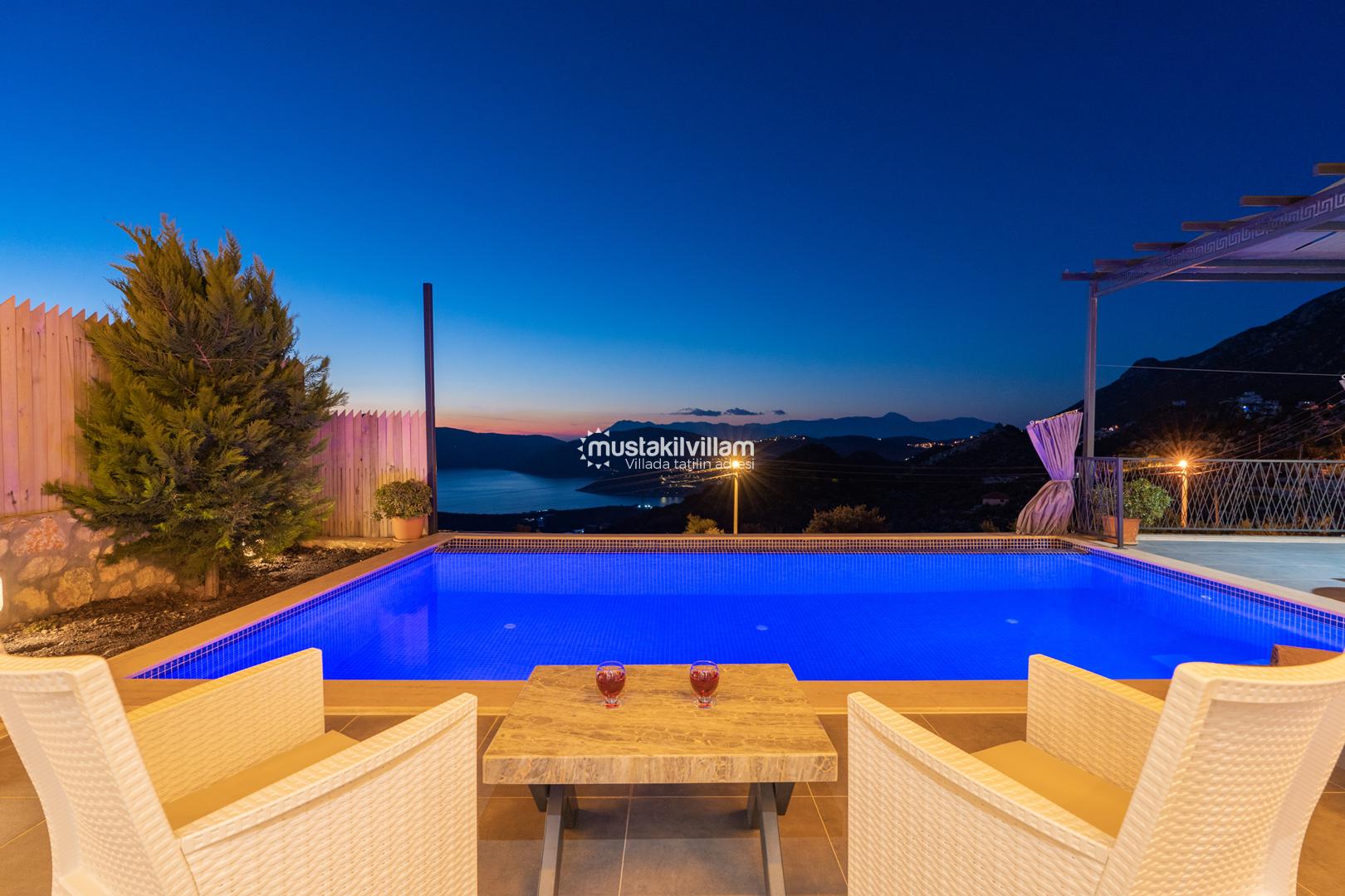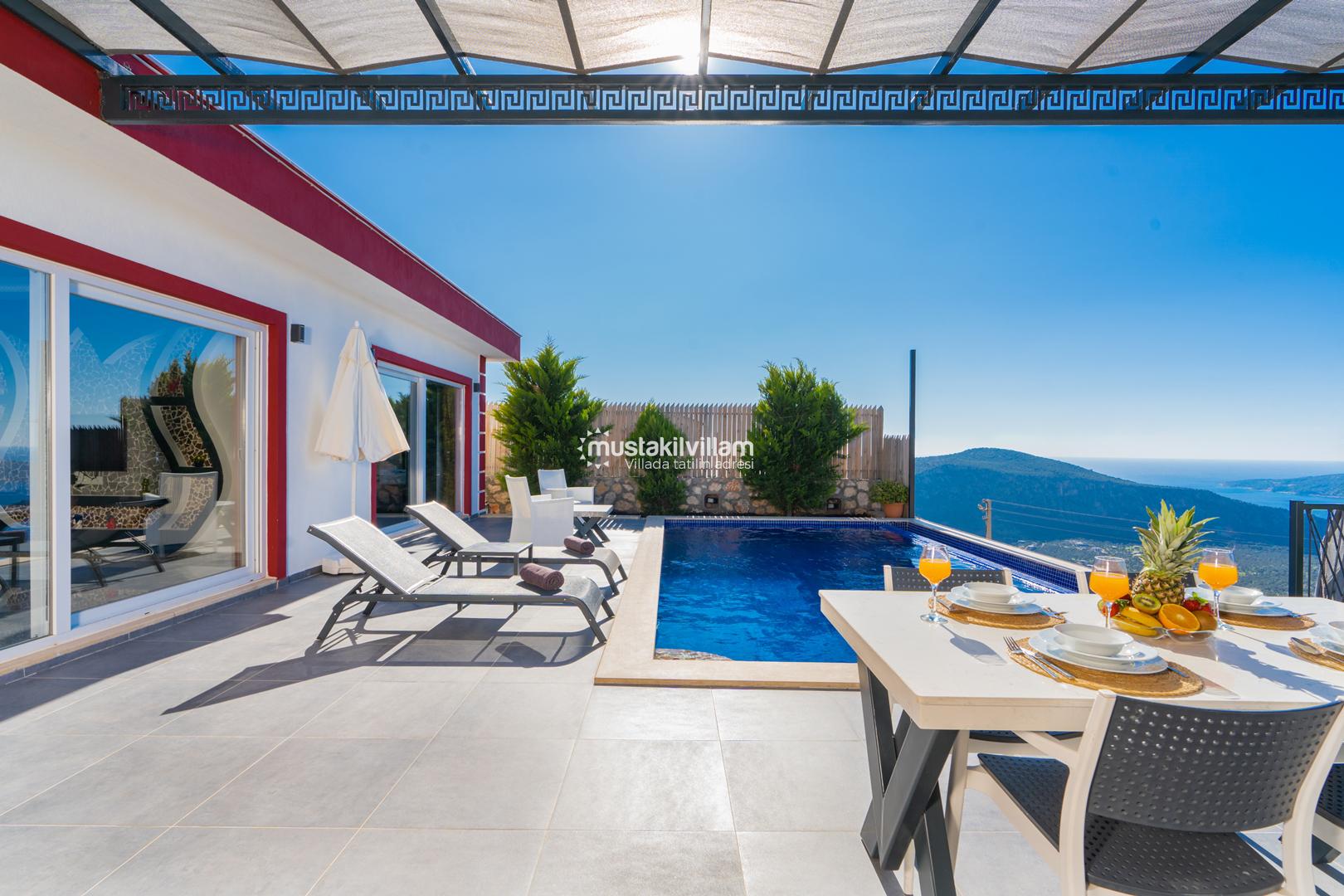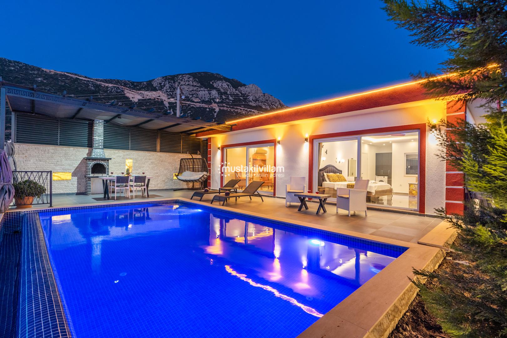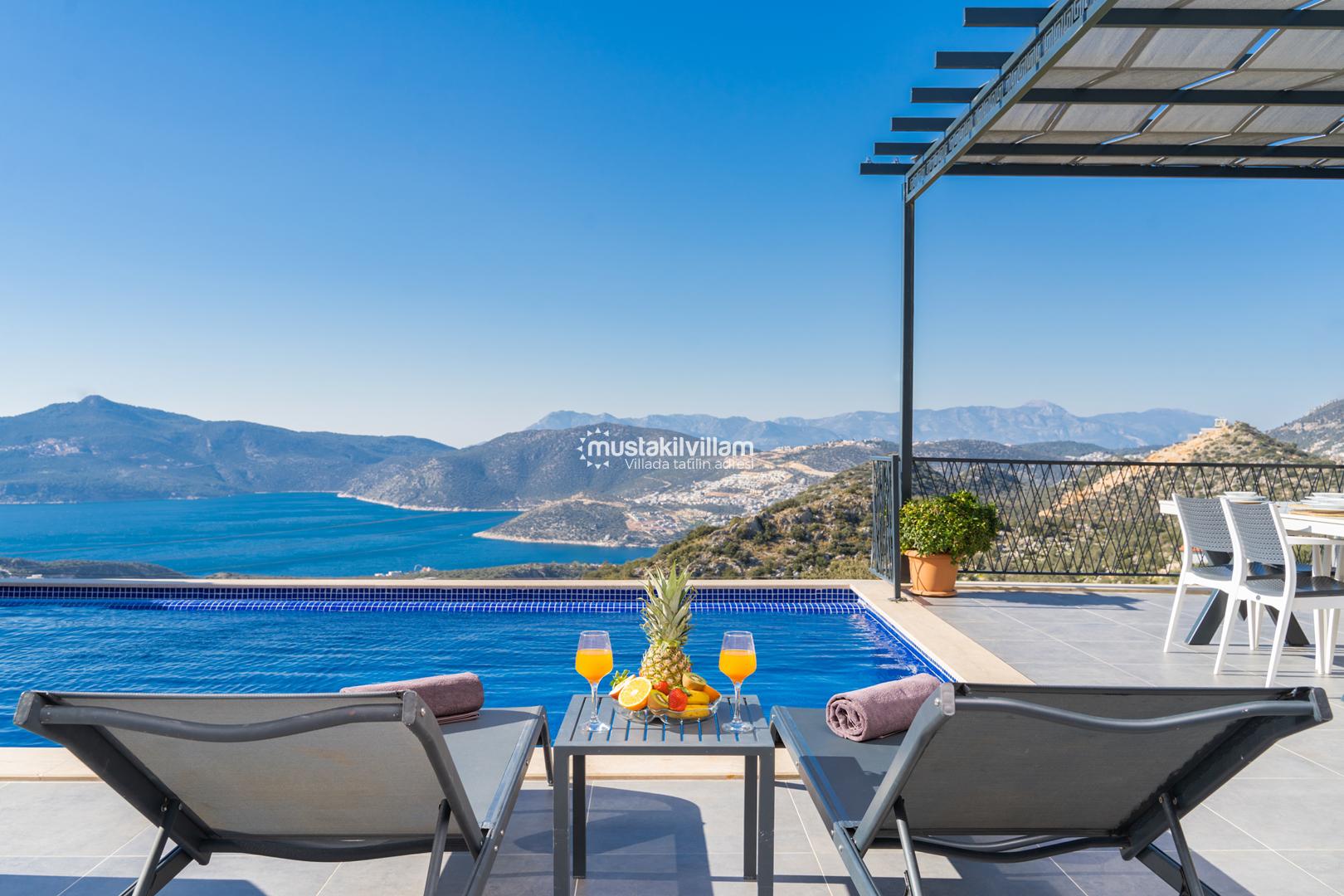 Kalkan Ordu mevkiinde yer alan Villa Ferah eşsiz deniz manzarasına sahip tek yatak odalı kiralık balayı villasıdır. İç tasarım ve dizaynıyla oldukça keyifli bir yapıya sahip bu villamızda unutulmaz bir tatil ve balayı geçirme fırsatı sizleri bekliyor. Deniz manzaralı özel havuza sahip villamız muhafazakar çiftlerimiz için oldukça idealdir. Yatak odasında jakuzi bulunmaktadır.
