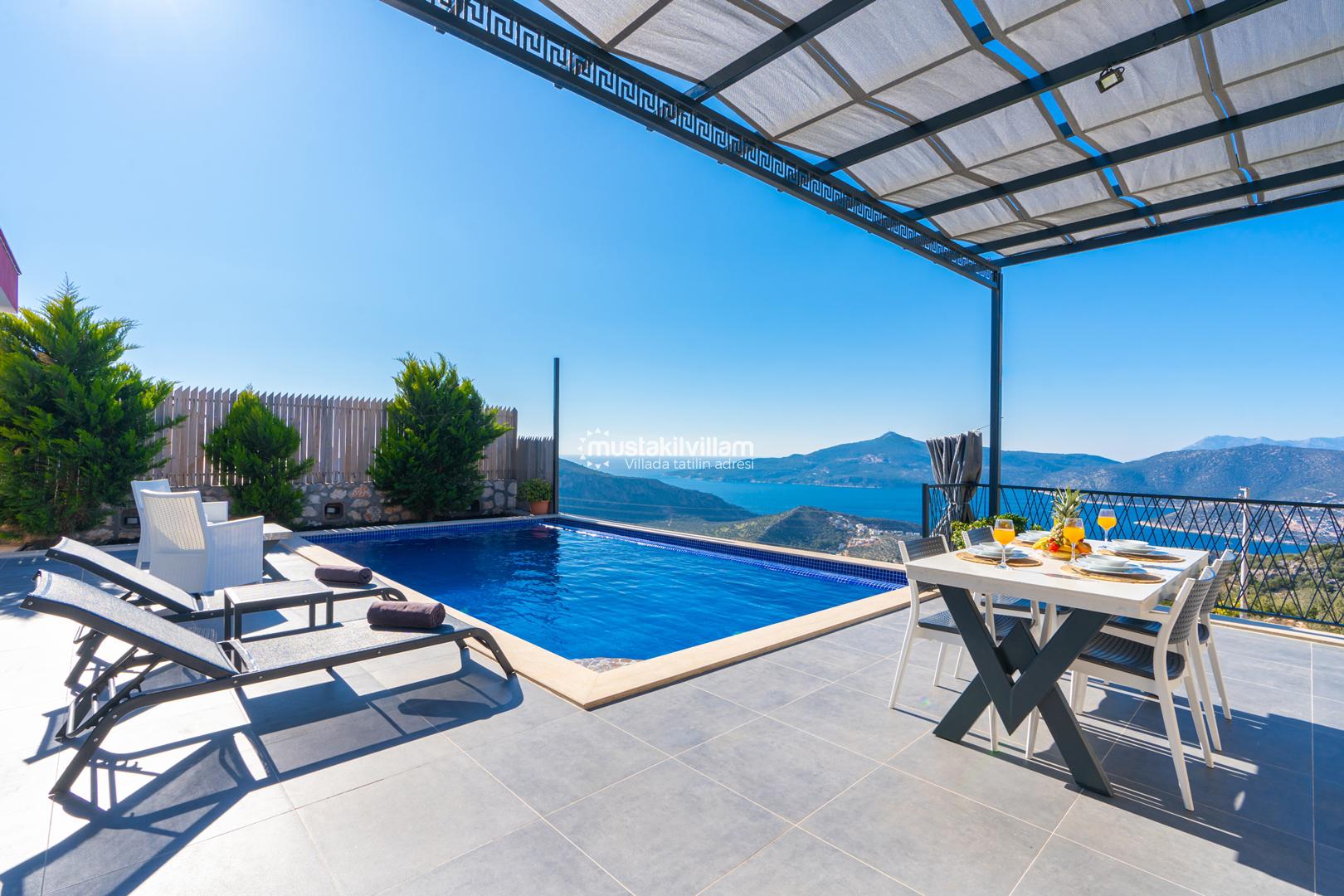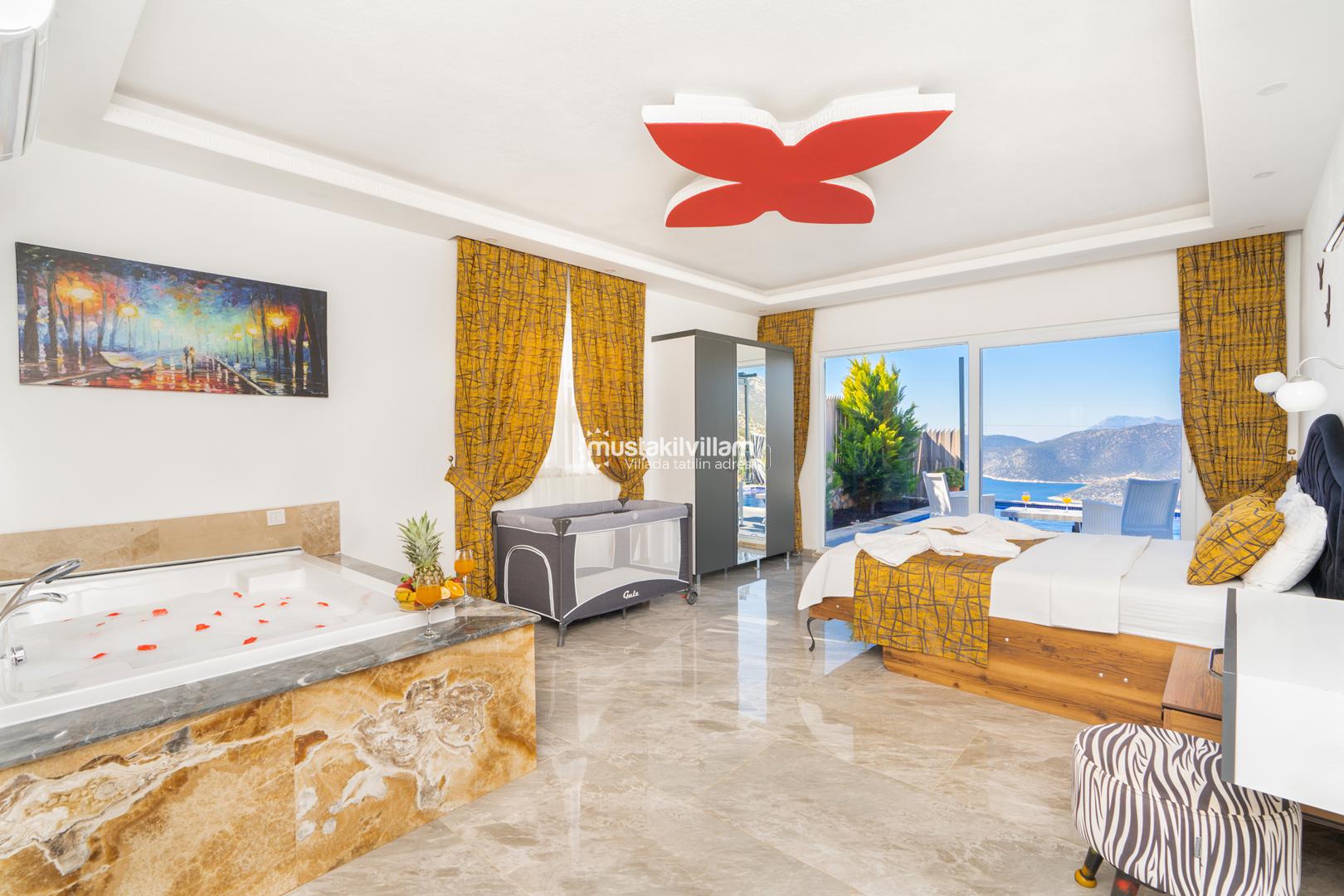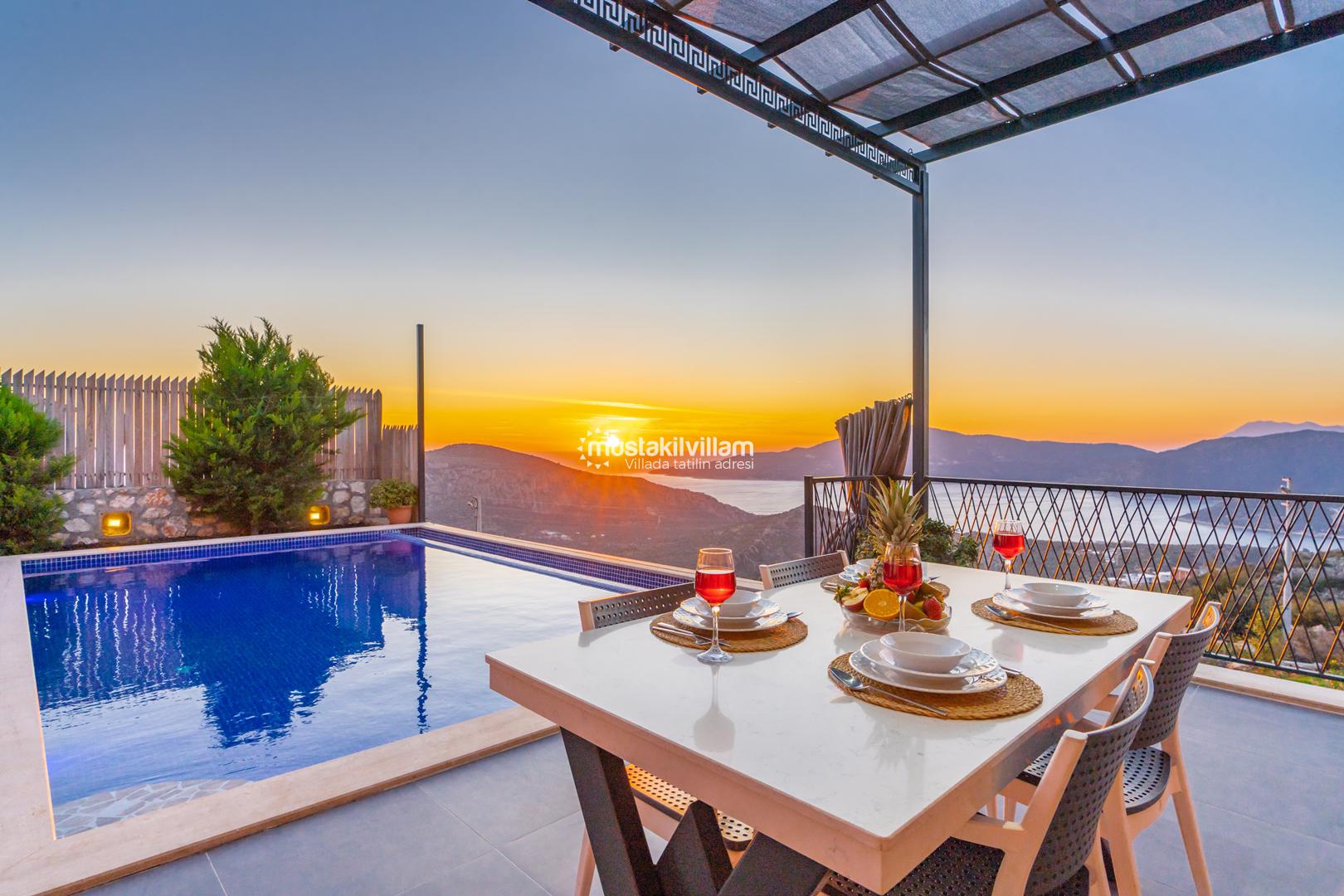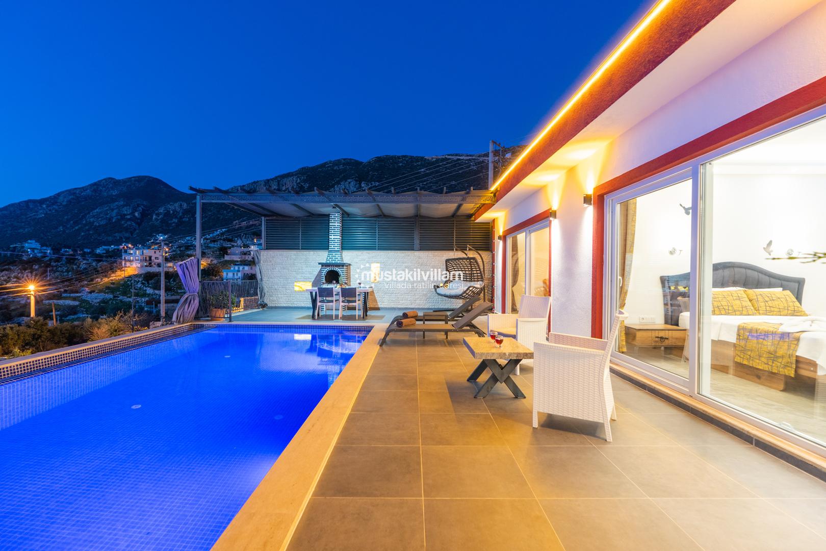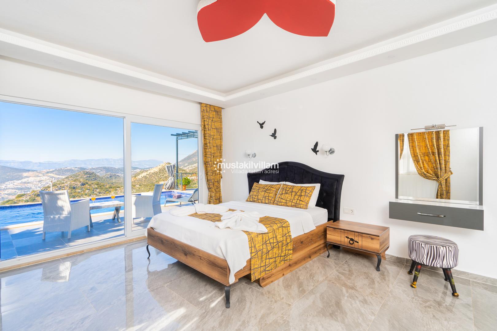 Kalkan Ordu mevkiinde yer alan Villa Ferah eşsiz deniz manzarasına sahip tek yatak odalı kiralık balayı villasıdır. İç tasarım ve dizaynıyla oldukça keyifli bir yapıya sahip bu villamızda unutulmaz bir tatil ve balayı geçirme fırsatı sizleri bekliyor. Deniz manzaralı özel havuza sahip villamız muhafazakar çiftlerimiz için oldukça idealdir. Yatak odasında jakuzi bulunmaktadır.