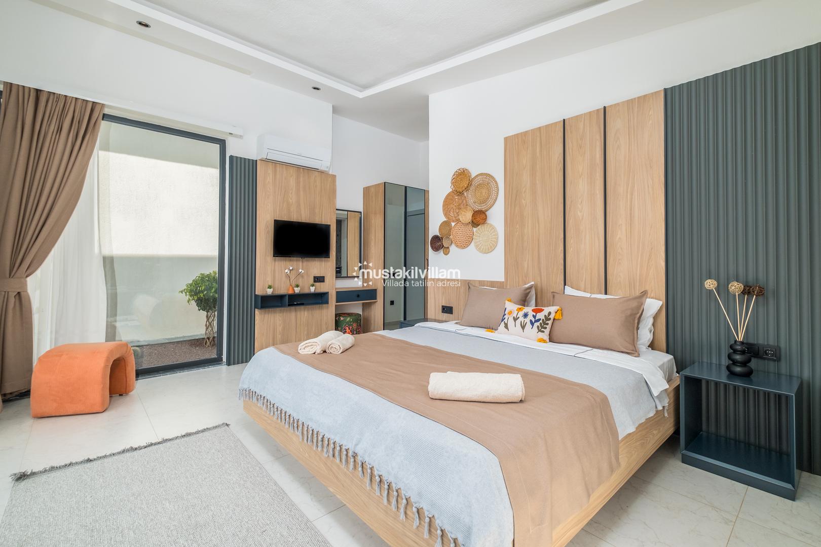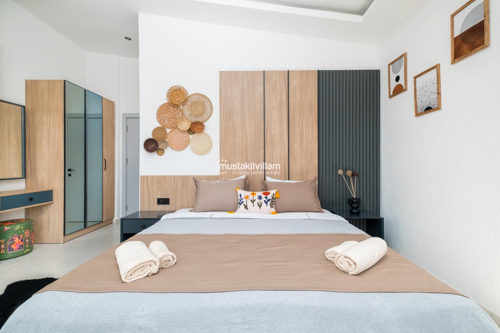 1. Yatak Odası 1 Çift Kişilik Yatak + Komodin + Elbise Dolabı + Makyaj Masası + Klima + Ebeveyn Banyo+jakuzi
