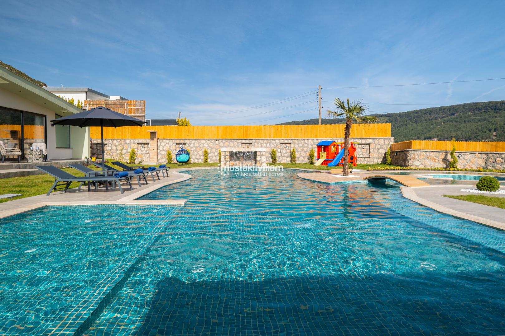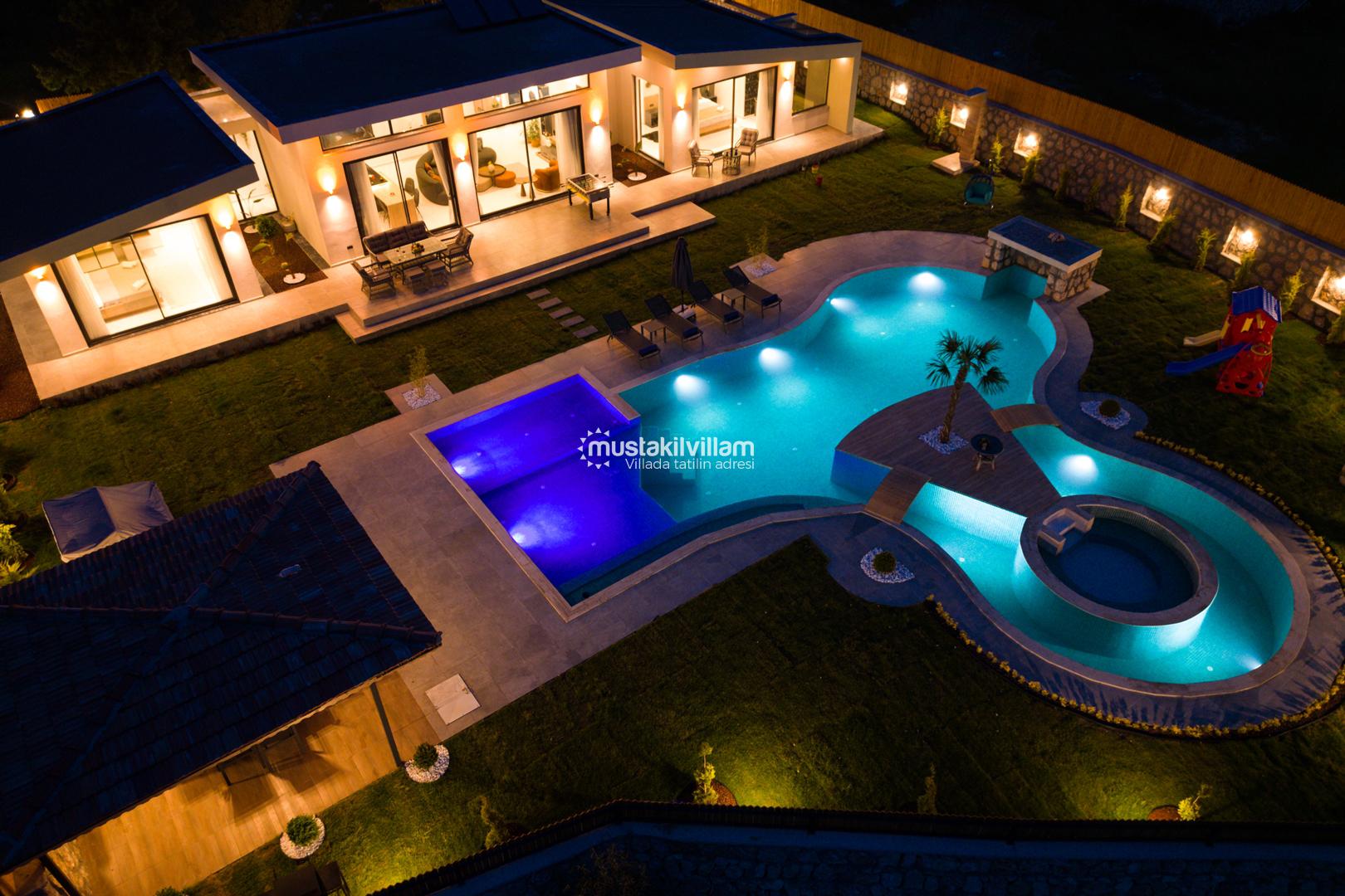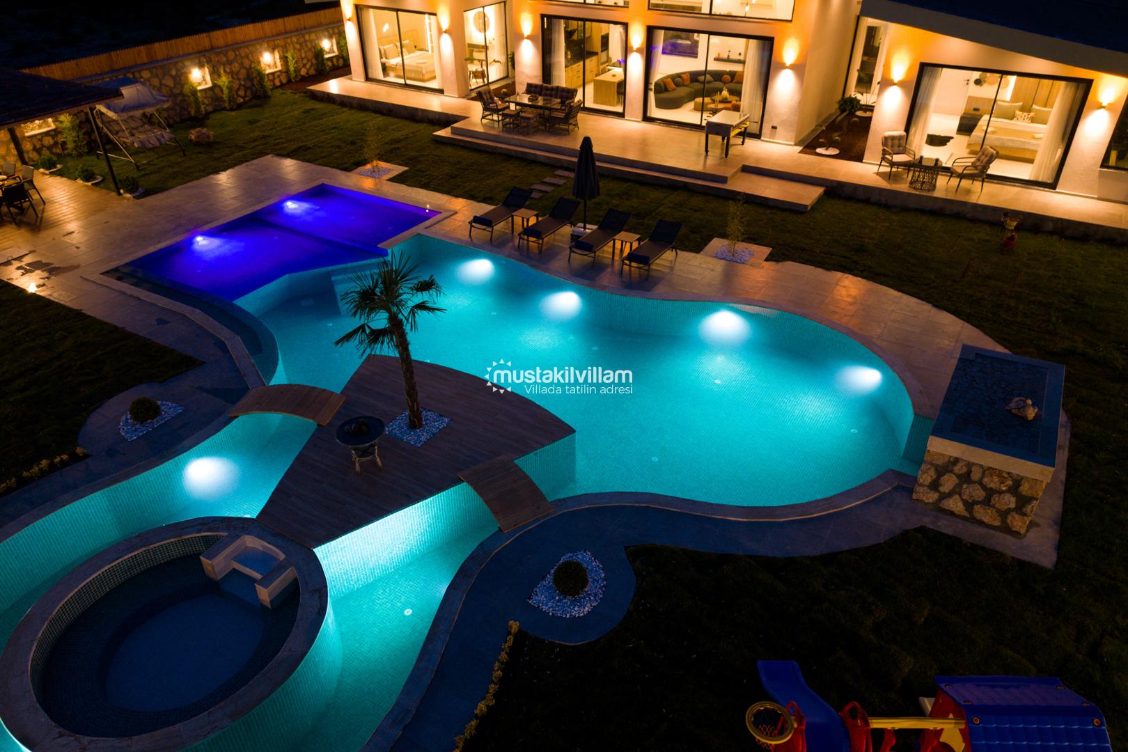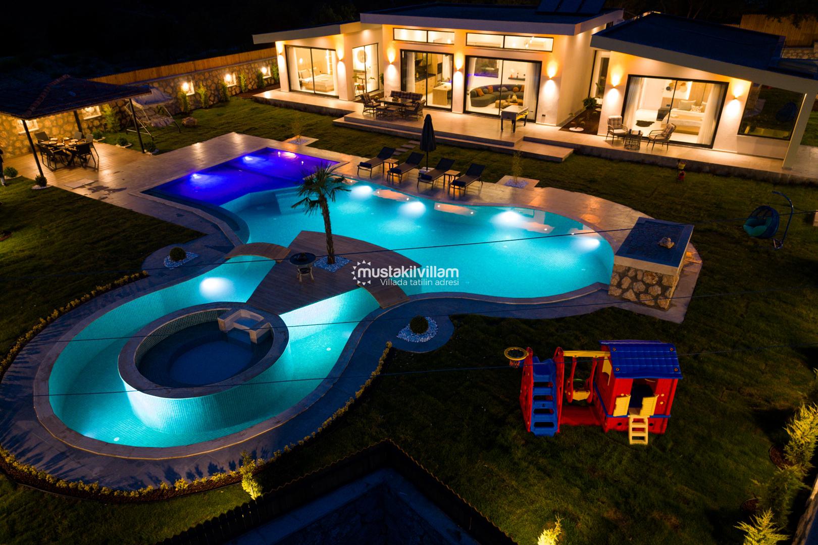 Kalkan Sarıbelen bölgesinde doğa içerisinde konumludur. 3 yatak odalı 6 kişi konaklama kapasitelidir. İç ve bahçe dizaynıyla oldukça şık ve konforlu bir tasarıma sahip villamız muhafazakar aileler için oldukça ideal bir özel havuzlu kiralık tatil villasıdır.Kalkan merkeze 15 dakikalık sürüş mesafesindedir Villamız çocuk havuzlu olup villamızda tüm detaylar düşünülmüş olup langırt,masa tenisi,cocuk oyun alanı,sauna gibi özellikleri mevcuttur