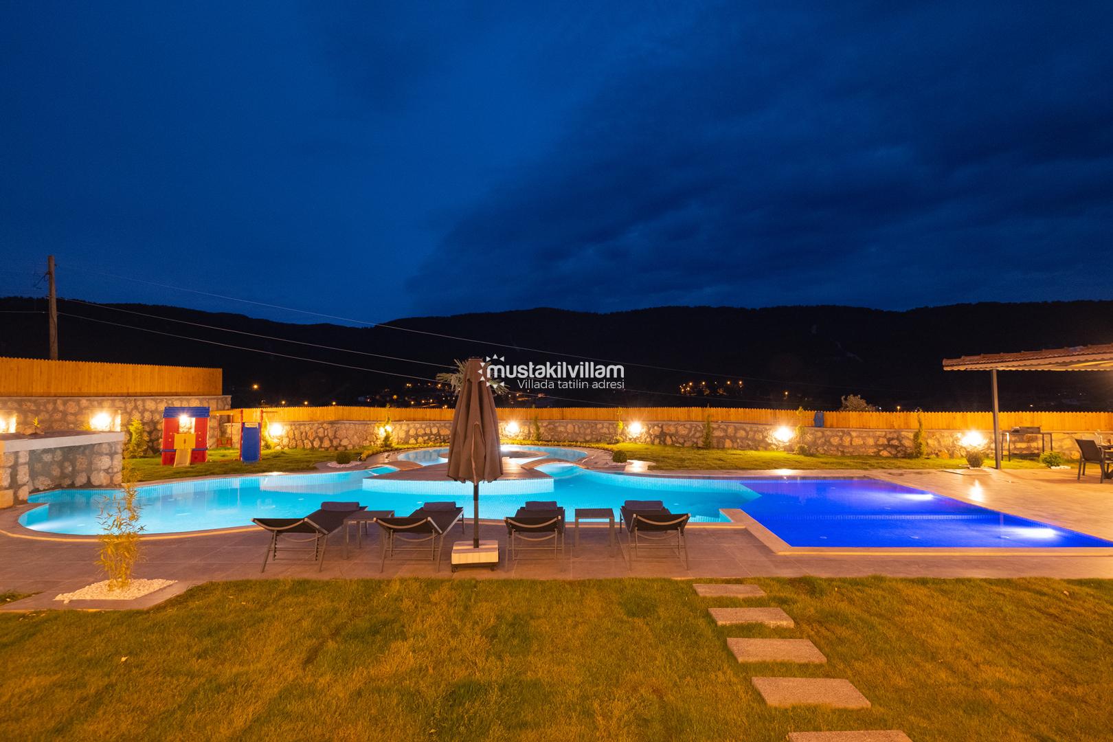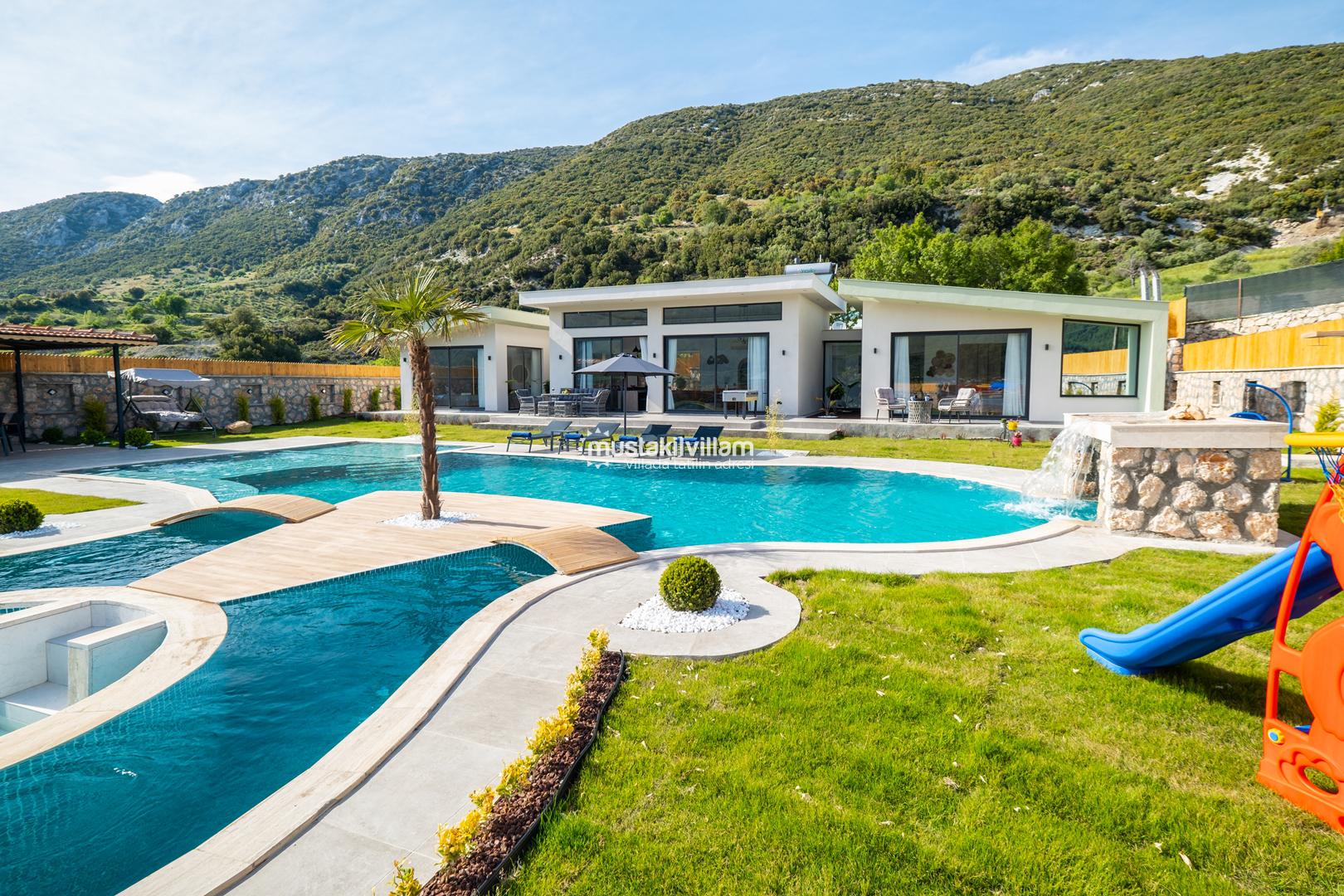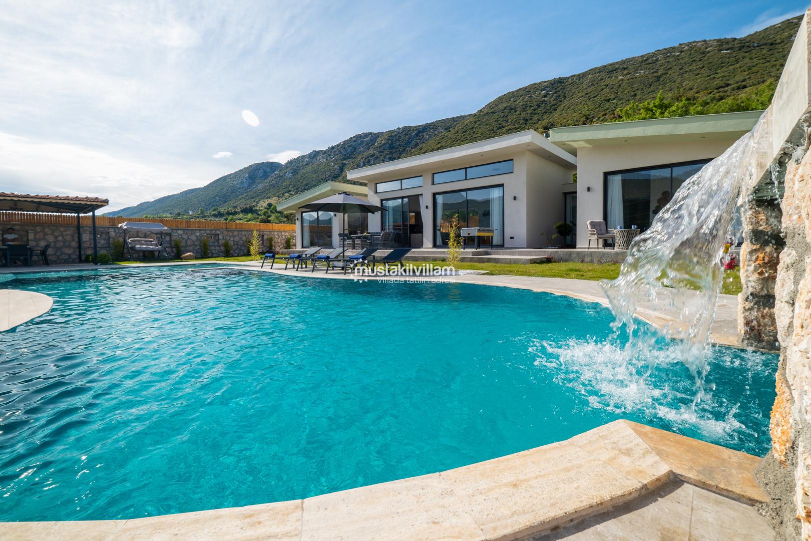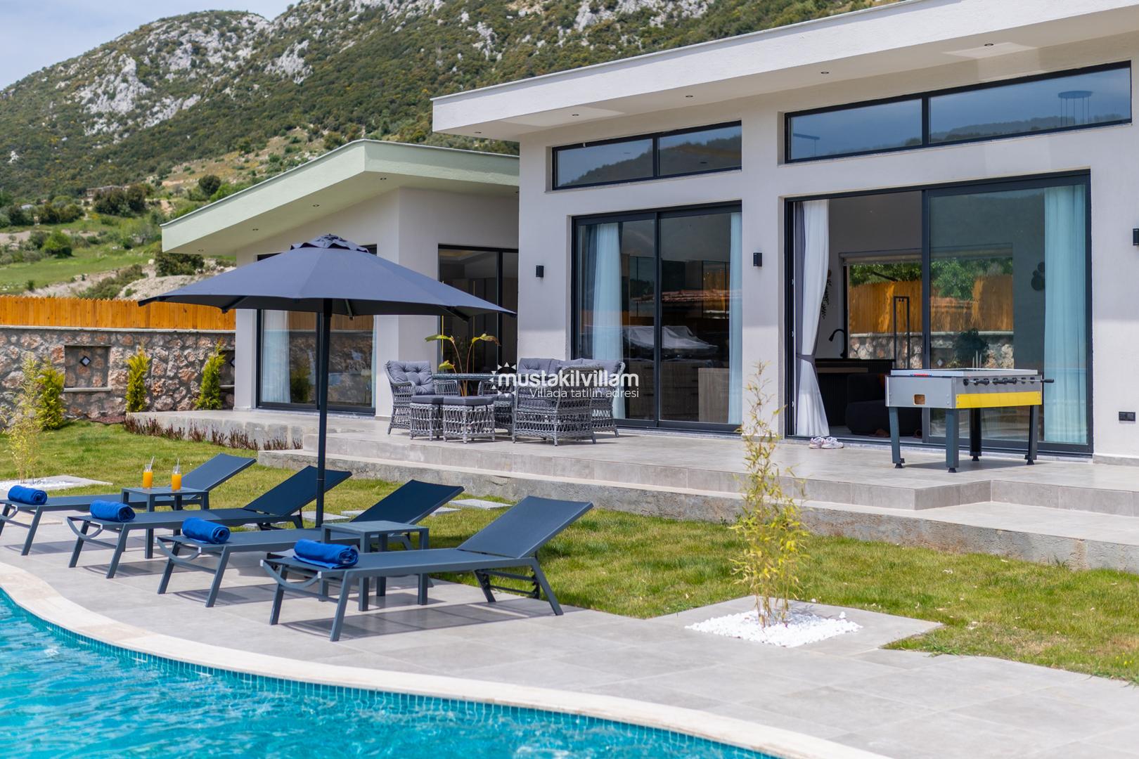 Kalkan Sarıbelen bölgesinde doğa içerisinde konumludur. 3 yatak odalı 6 kişi konaklama kapasitelidir. İç ve bahçe dizaynıyla oldukça şık ve konforlu bir tasarıma sahip villamız muhafazakar aileler için oldukça ideal bir özel havuzlu kiralık tatil villasıdır.Kalkan merkeze 15 dakikalık sürüş mesafesindedir Villamız çocuk havuzlu olup villamızda tüm detaylar düşünülmüş olup langırt,masa tenisi,cocuk oyun alanı,sauna gibi özellikleri mevcuttur