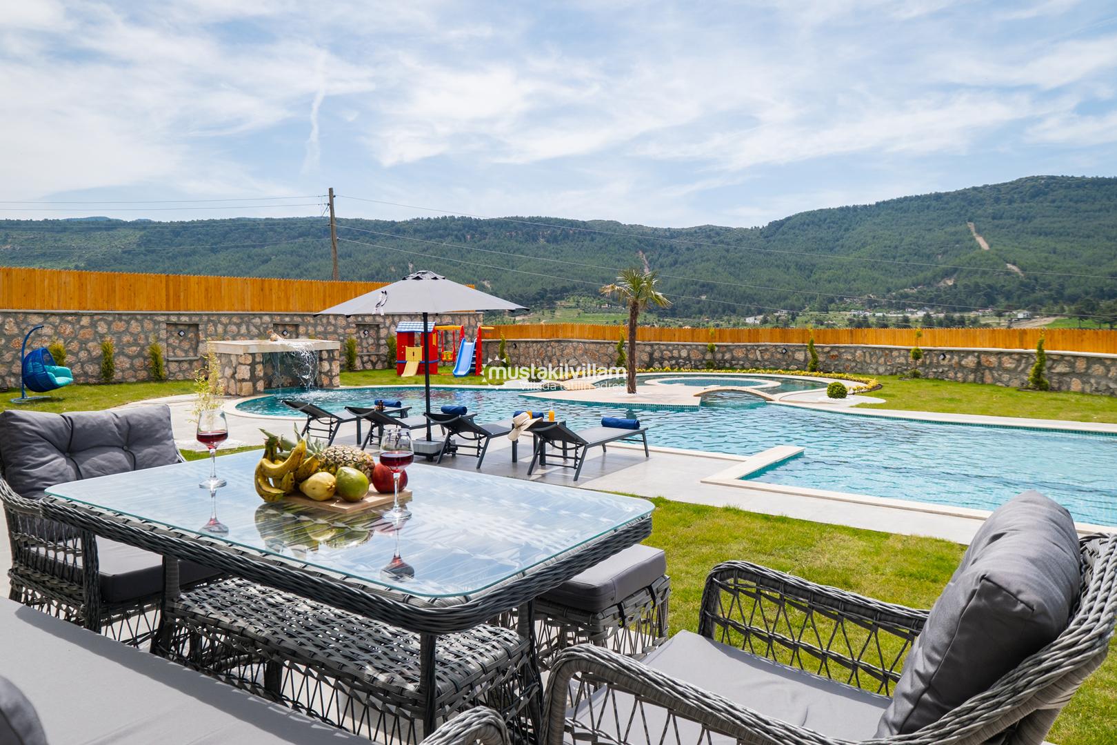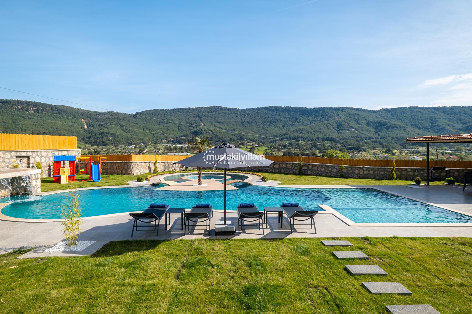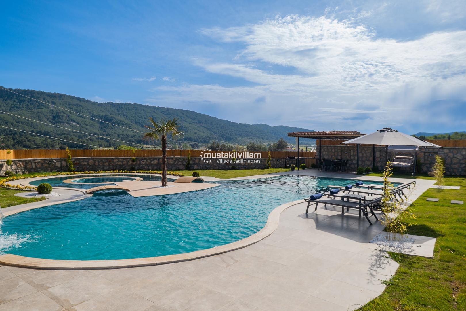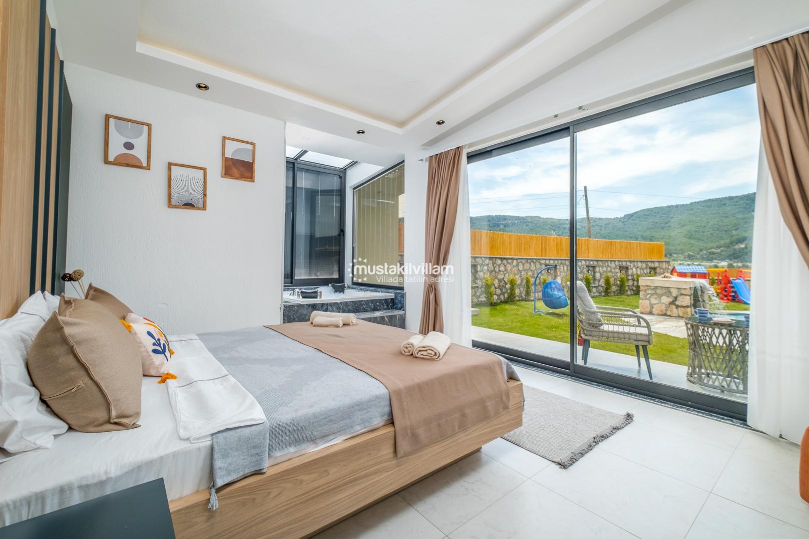 Kalkan Sarıbelen bölgesinde doğa içerisinde konumludur. 3 yatak odalı 6 kişi konaklama kapasitelidir. İç ve bahçe dizaynıyla oldukça şık ve konforlu bir tasarıma sahip villamız muhafazakar aileler için oldukça ideal bir özel havuzlu kiralık tatil villasıdır.Kalkan merkeze 15 dakikalık sürüş mesafesindedir Villamız çocuk havuzlu olup villamızda tüm detaylar düşünülmüş olup langırt,masa tenisi,cocuk oyun alanı,sauna gibi özellikleri mevcuttur