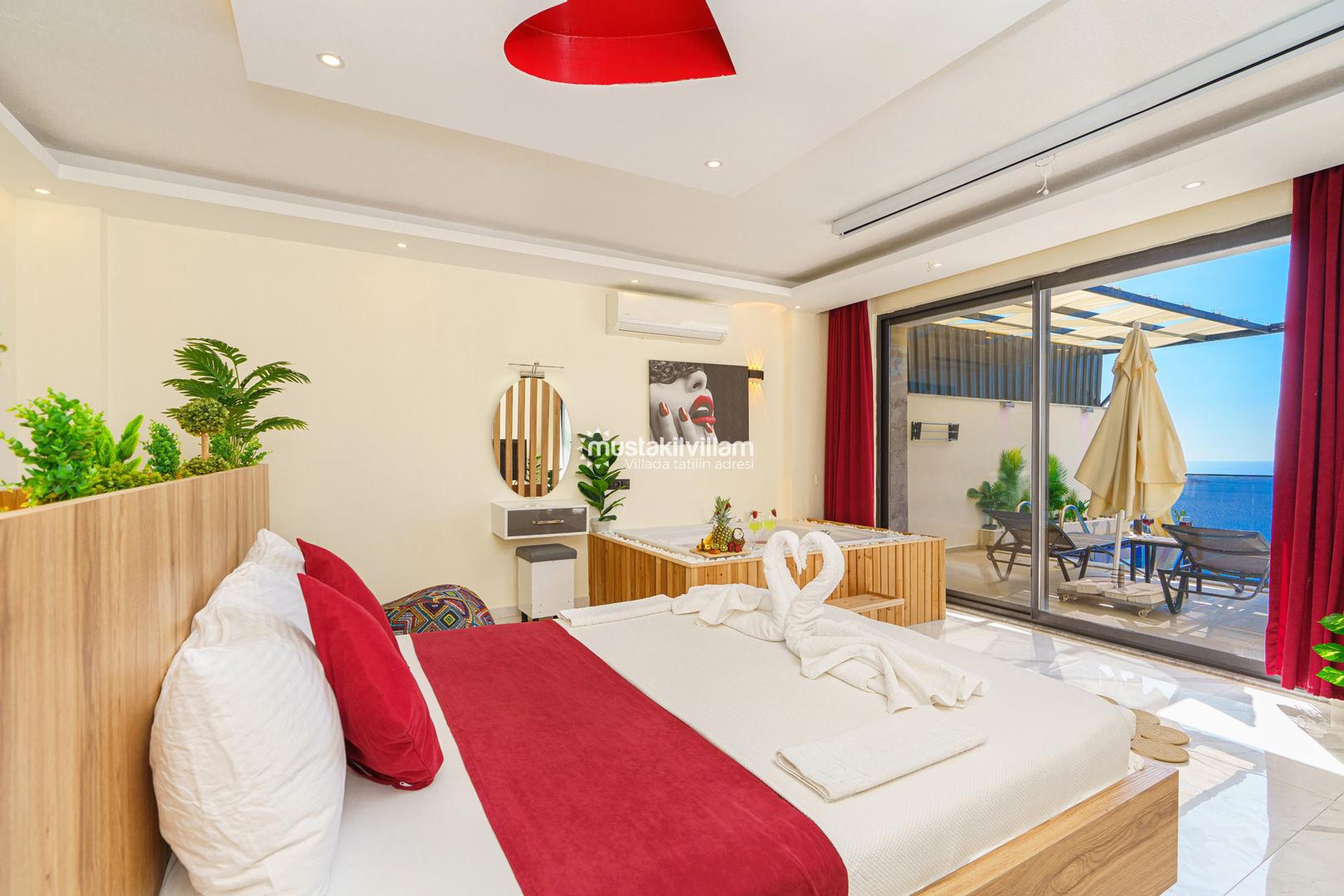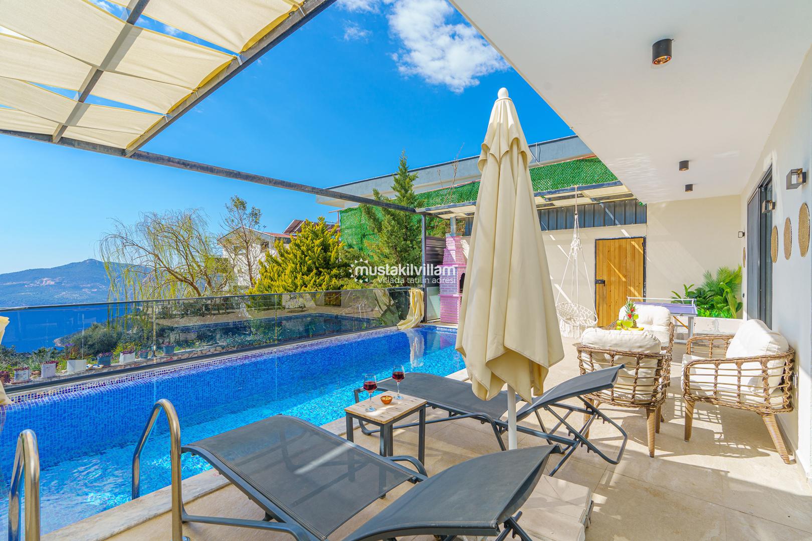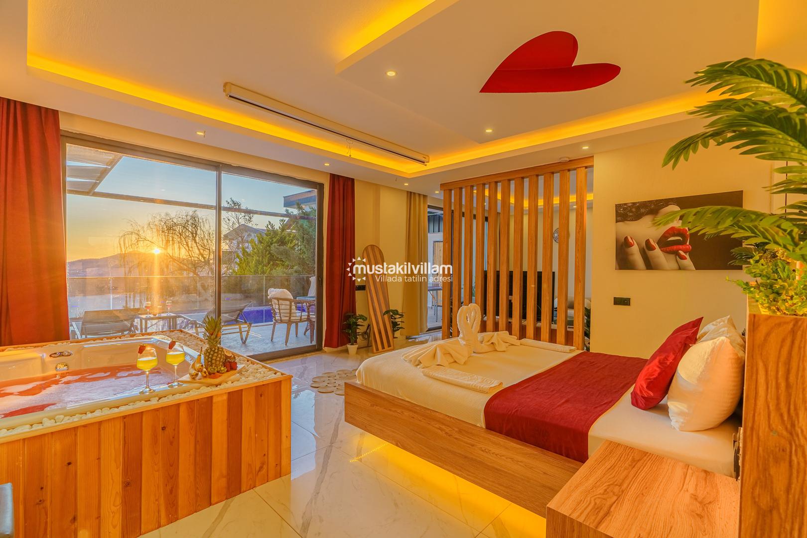 Kördere Kalkan da eşsiz doğa ve nefes kesen bir deniz manzarası sahiptir. Tek yatak odalı 2 kişi konaklama kapasitelidir. İç tasarımıyla oldukça konforlu ve şık bir tasarıma sahiptir. Deniz manzarası eşliğinde özel havuzu bulunan korunaklı havuz terasına sahip muhafazakar jakuzili kiralık balayı tatil villasıdır.