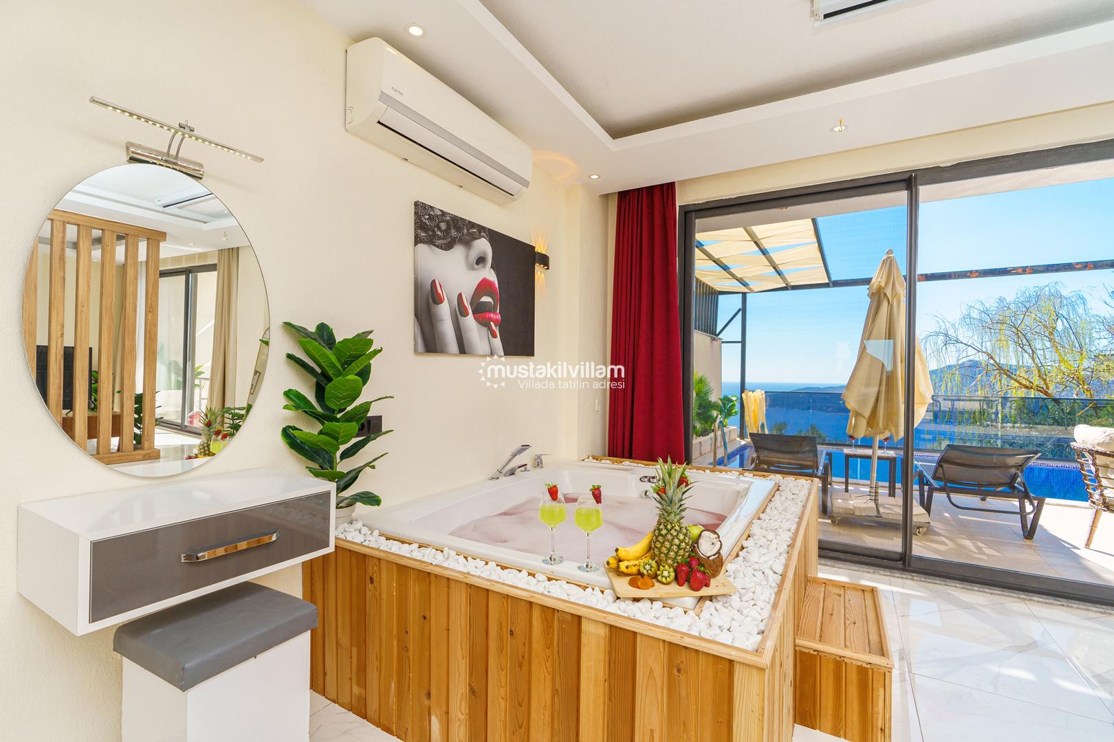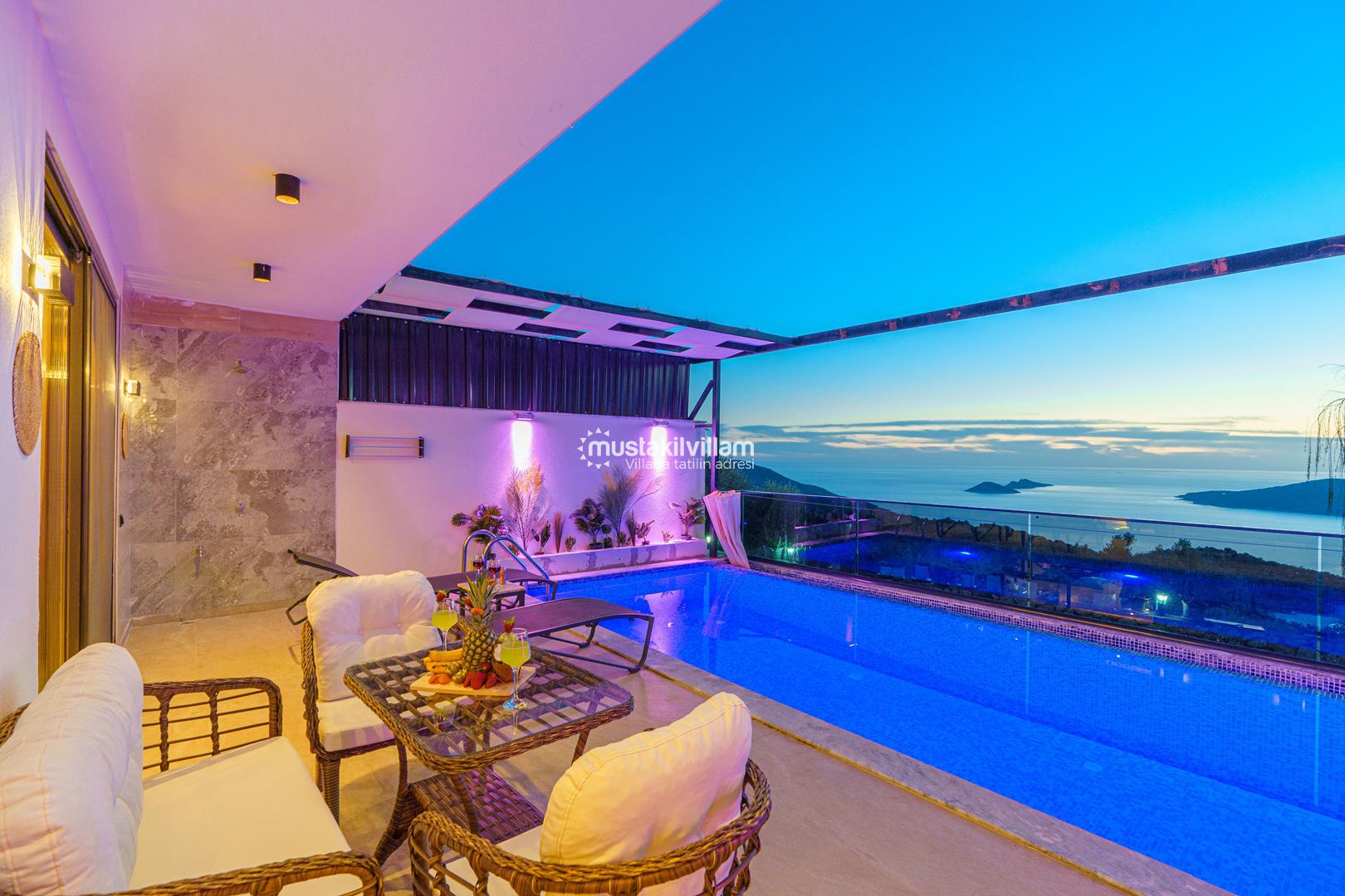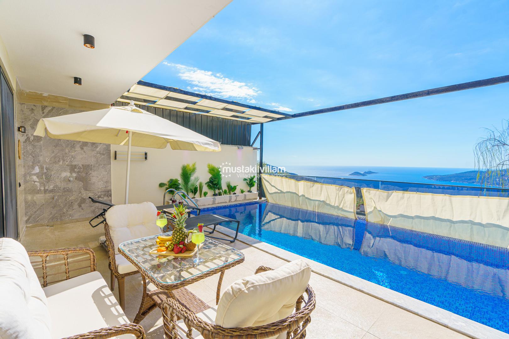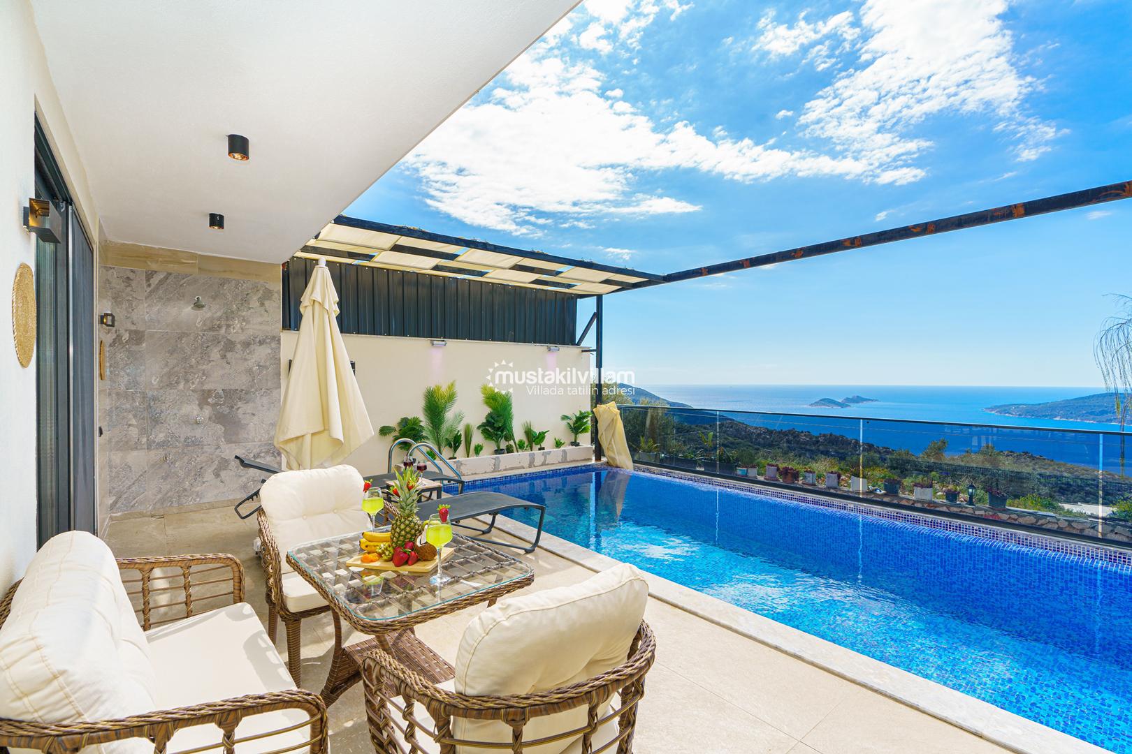 Kördere Kalkan da eşsiz doğa ve nefes kesen bir deniz manzarası sahiptir. Tek yatak odalı 2 kişi konaklama kapasitelidir. İç tasarımıyla oldukça konforlu ve şık bir tasarıma sahiptir. Deniz manzarası eşliğinde özel havuzu bulunan korunaklı havuz terasına sahip muhafazakar jakuzili kiralık balayı tatil villasıdır.