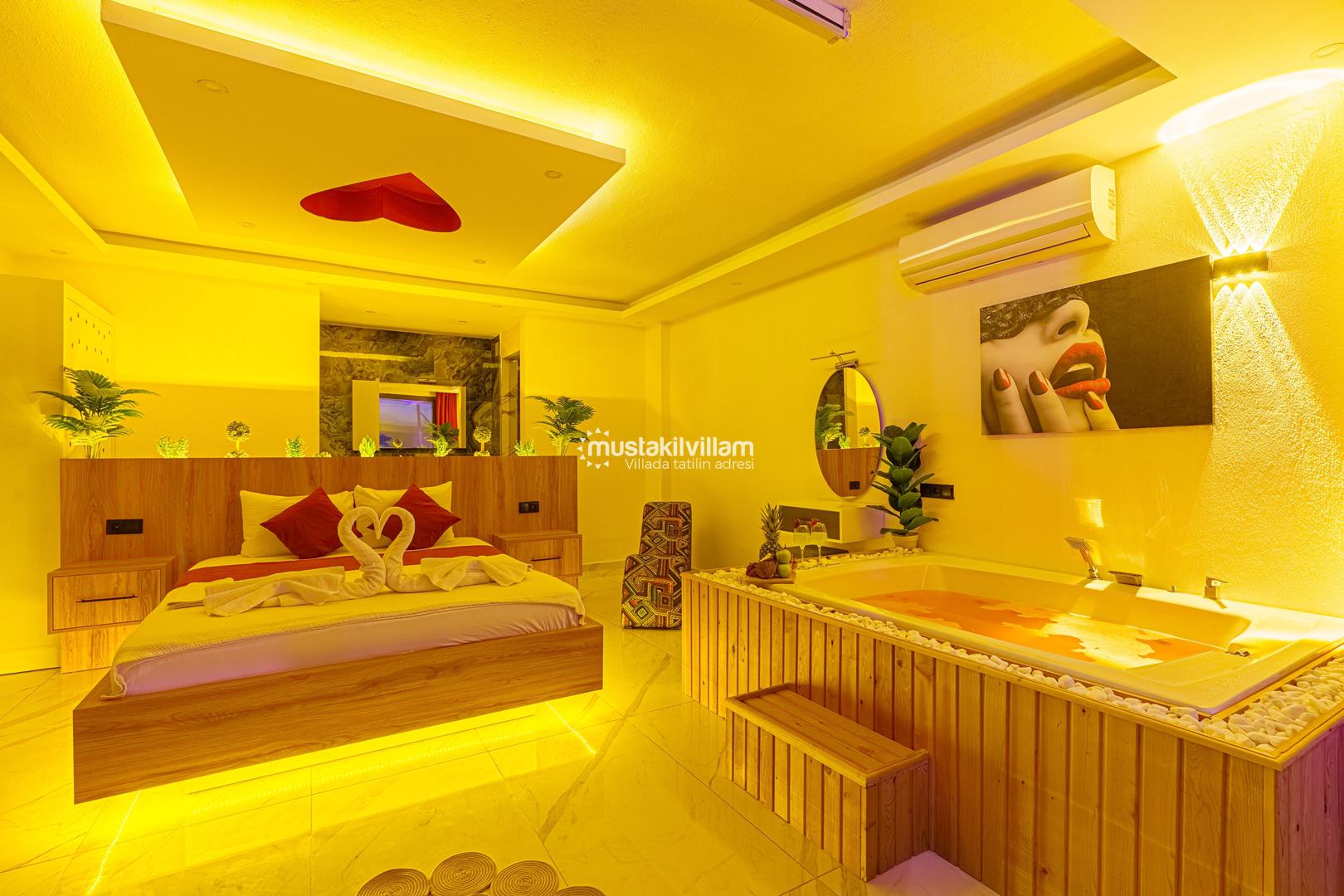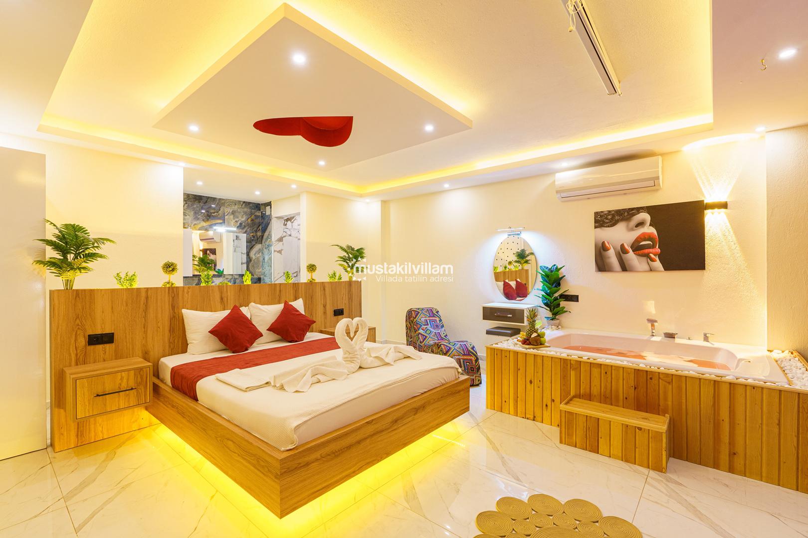 1. Yatak Odası 1 Çift Kişilik Yatak + Komidin + Elbise Dolabı + Makyaj Masası + Ebeveyn Banyo + Jakuzi