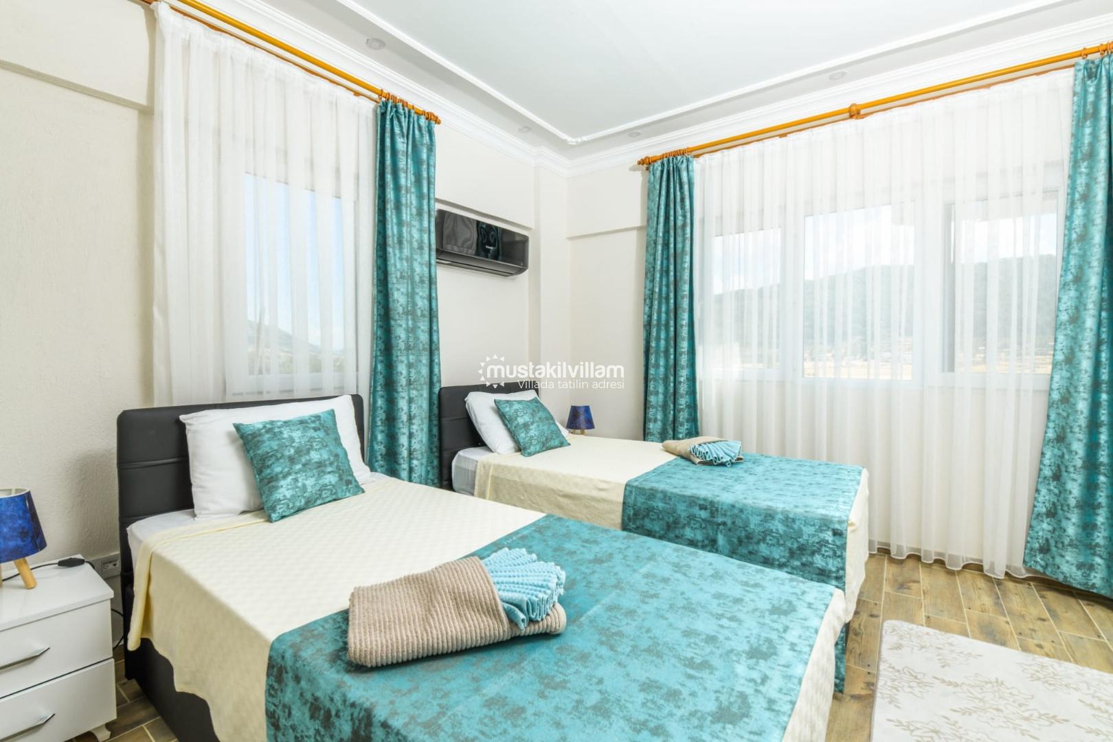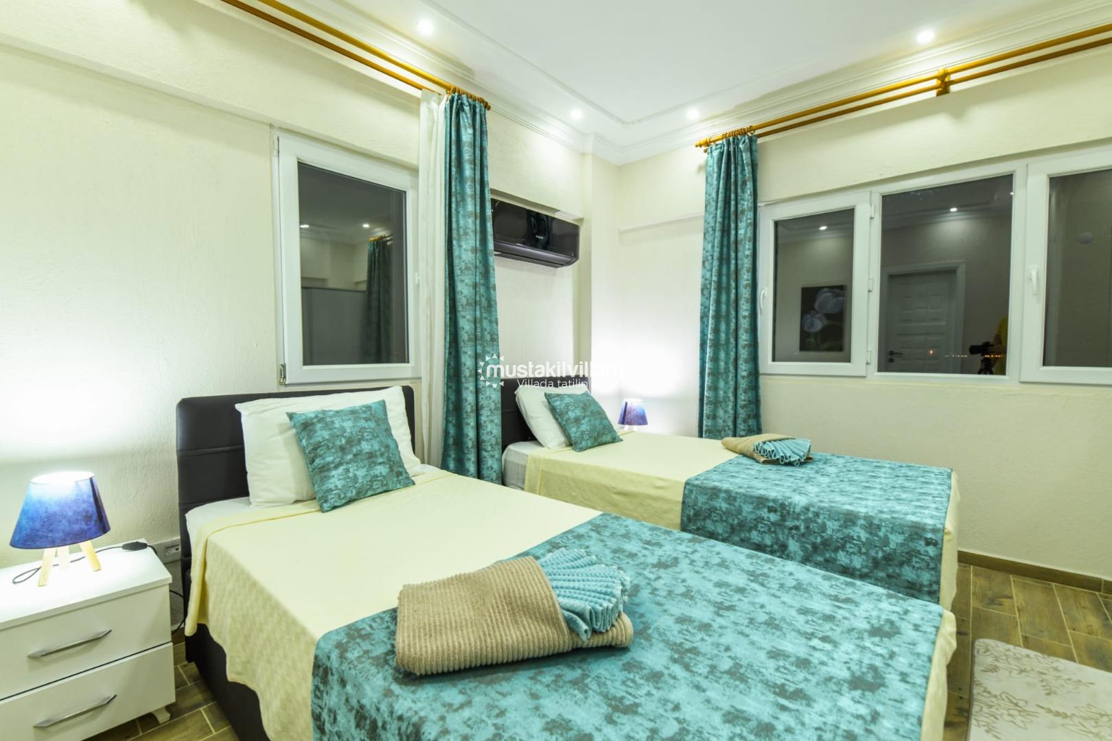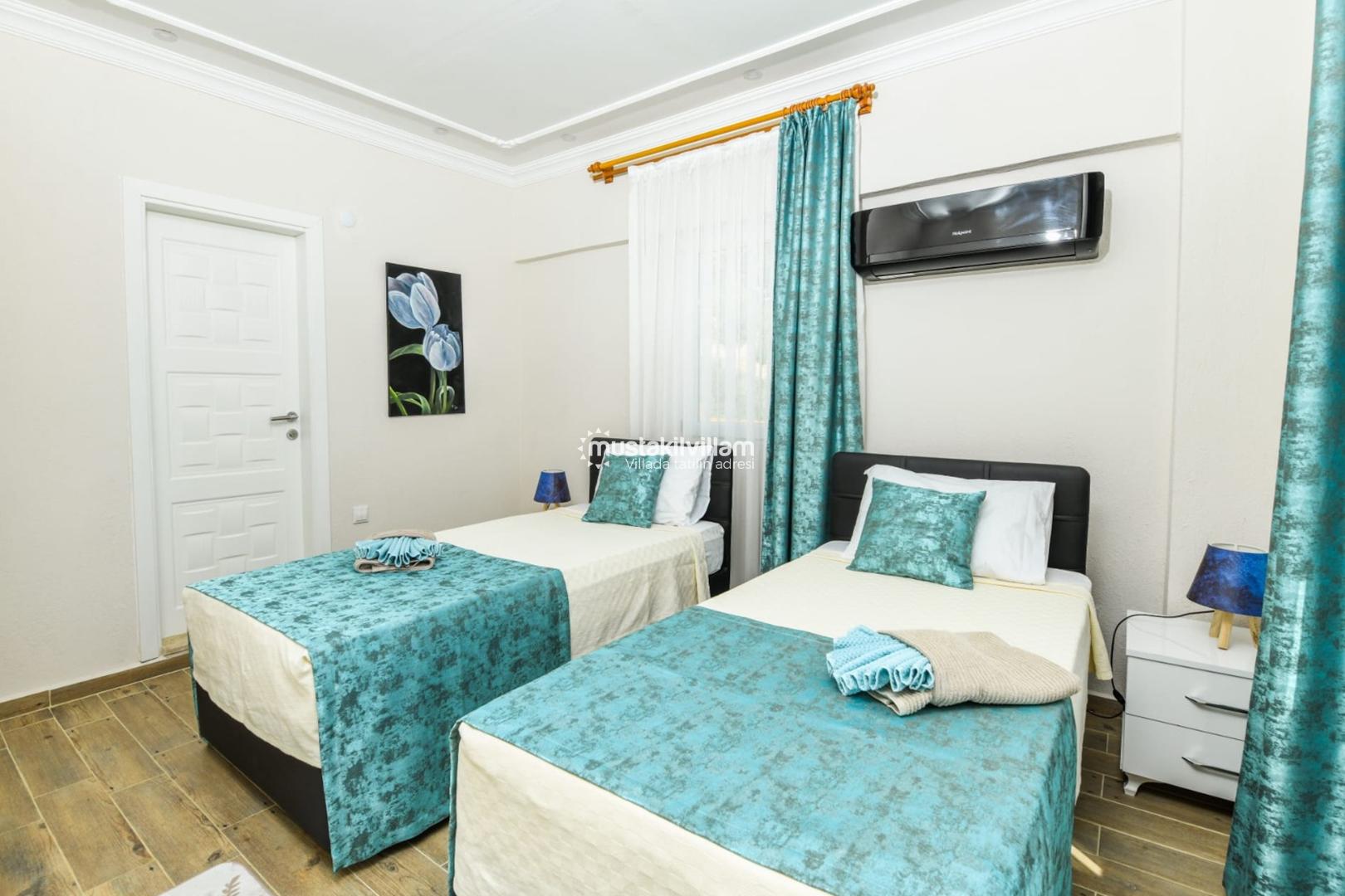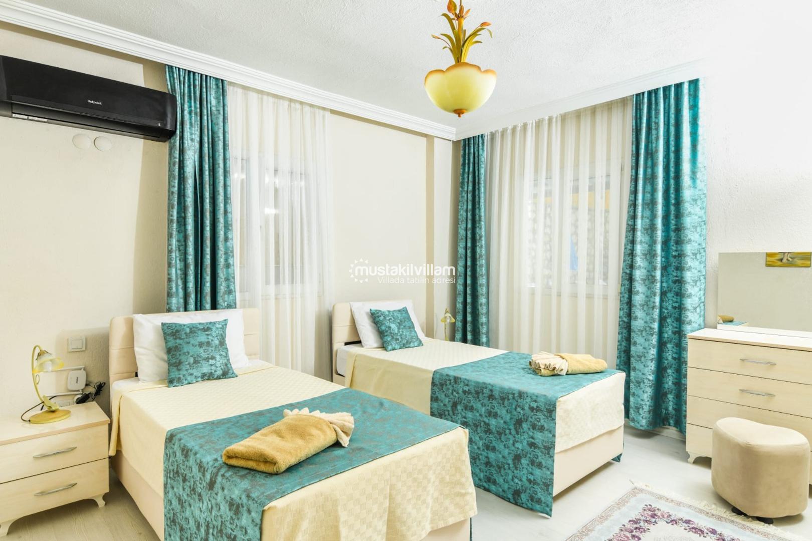 ✔ 2. Yatak Odası: 2 adet tek kişilik yatak, özel banyo/WC, klima, elbise dolabı