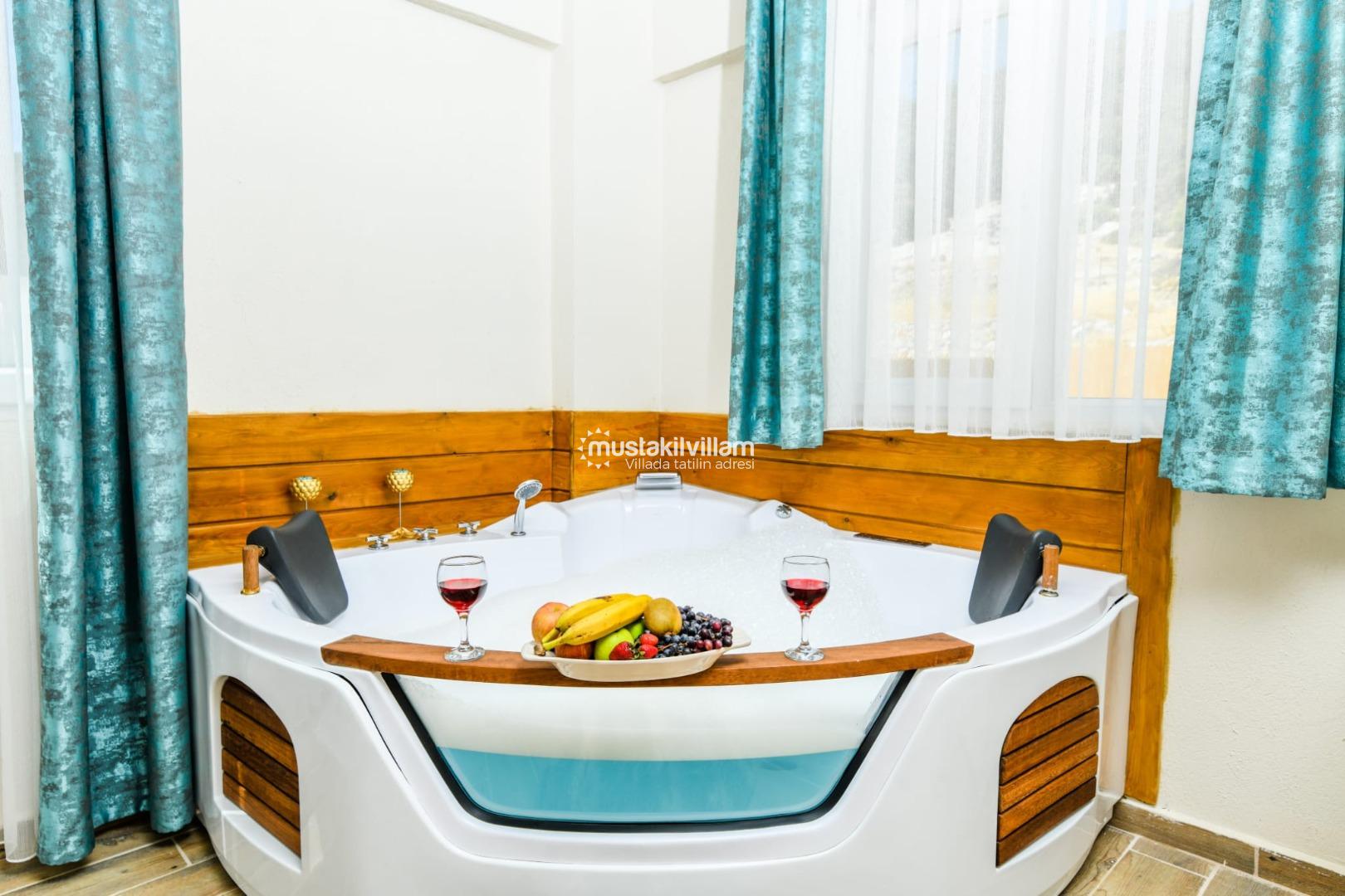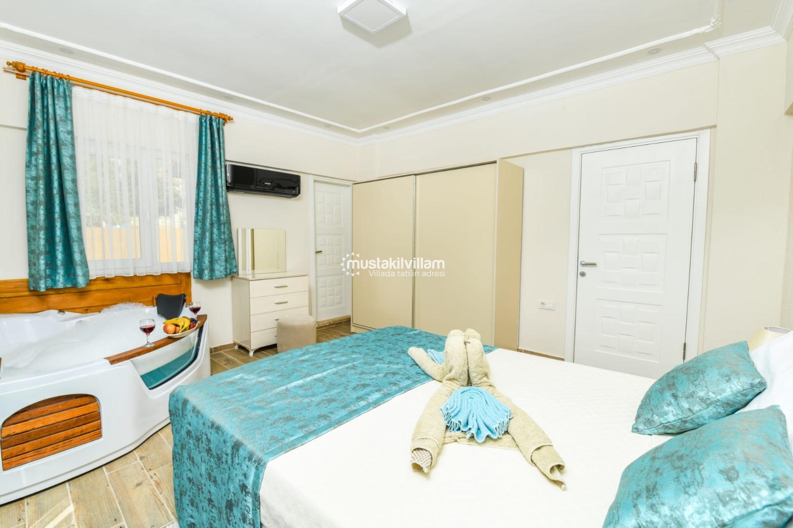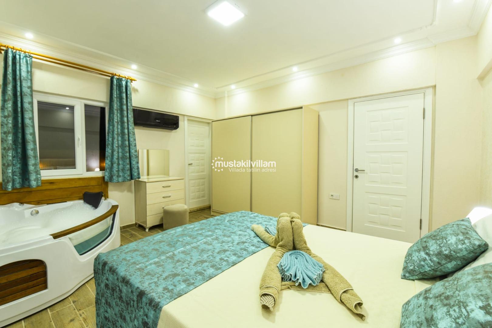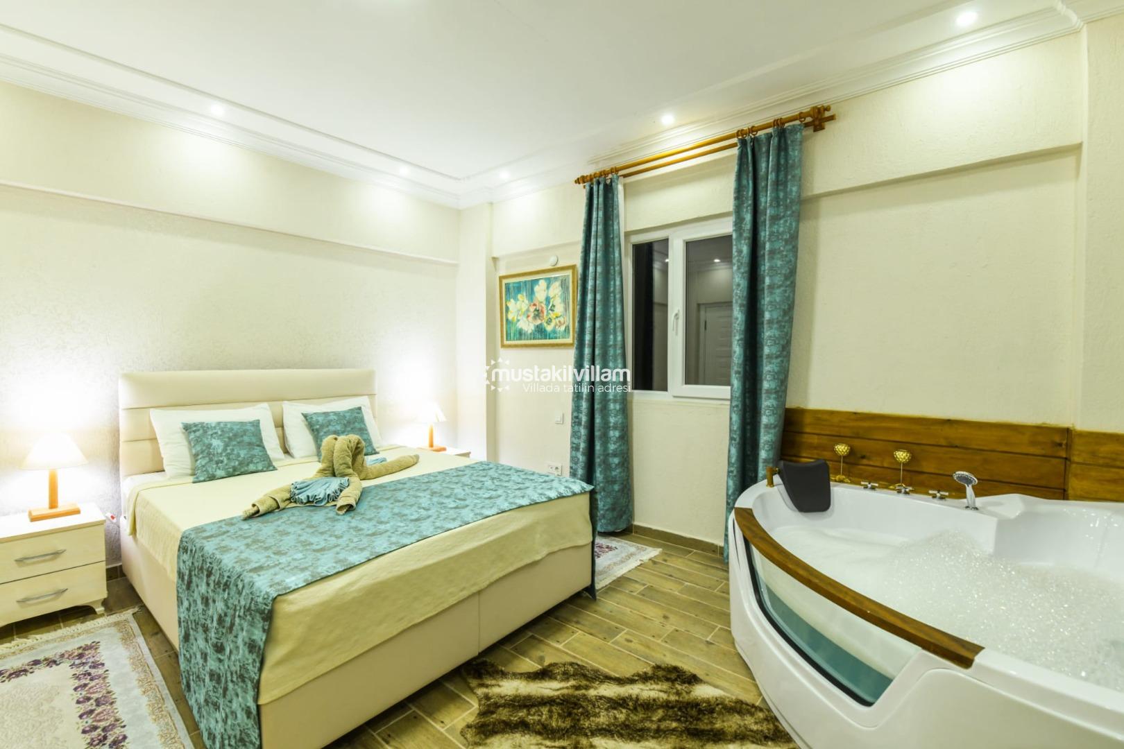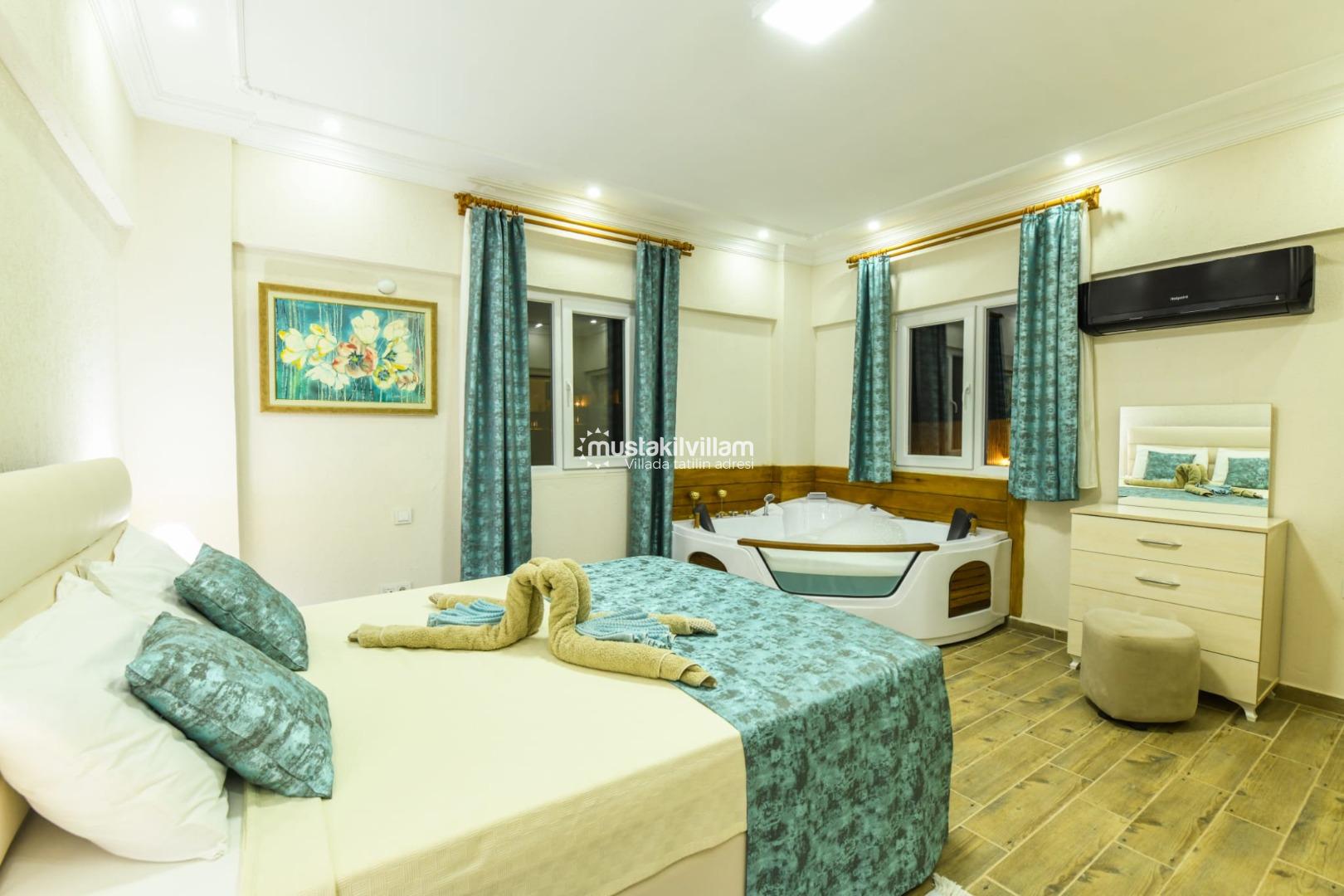 ✔ 1. Yatak Odası: Çift kişilik yatak, jakuzi, özel banyo/WC, klima, elbise dolabı