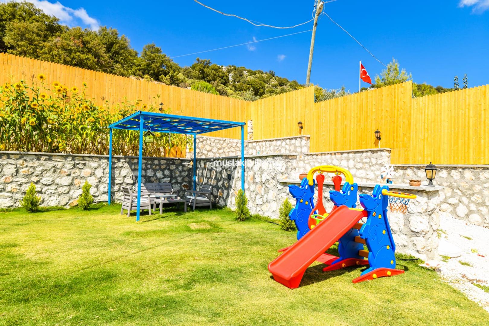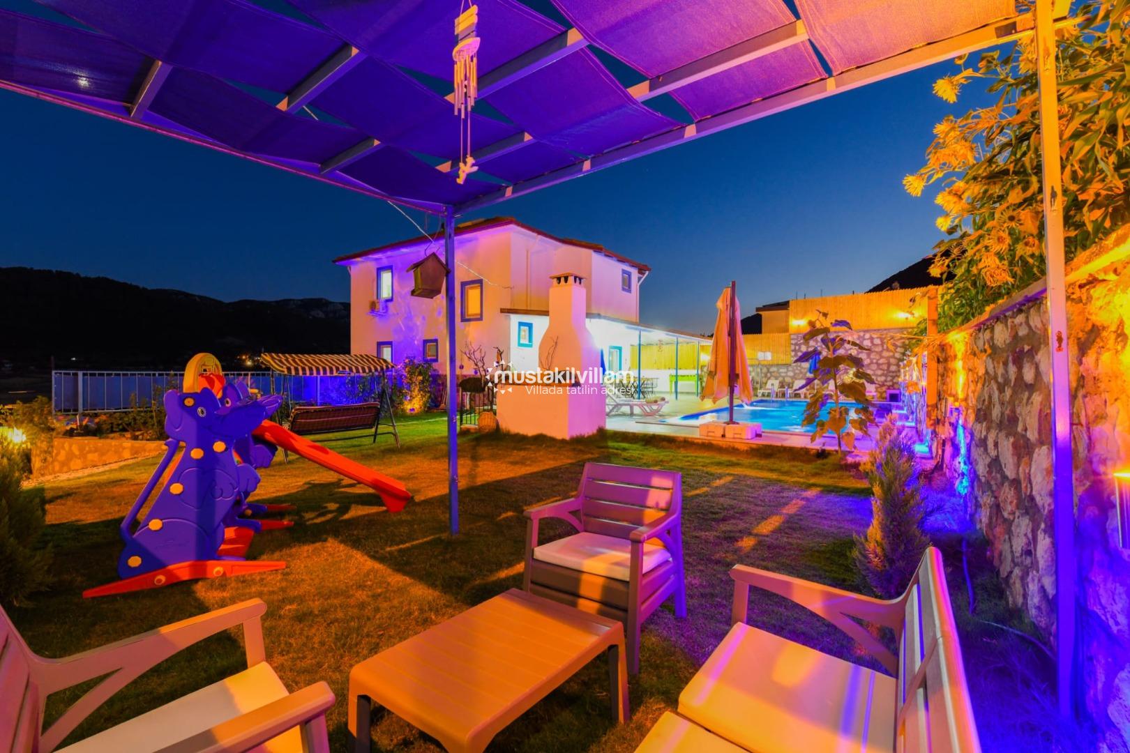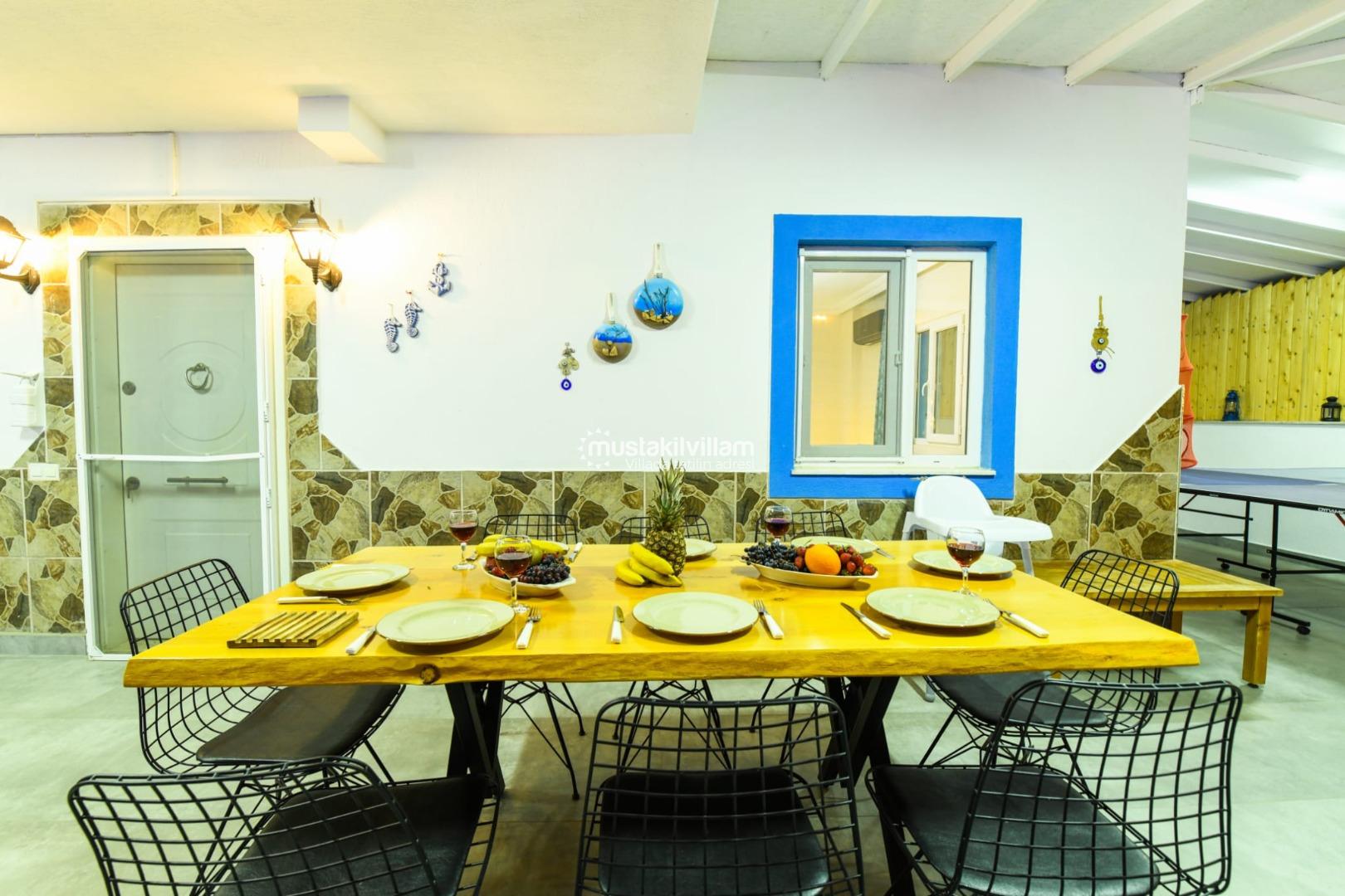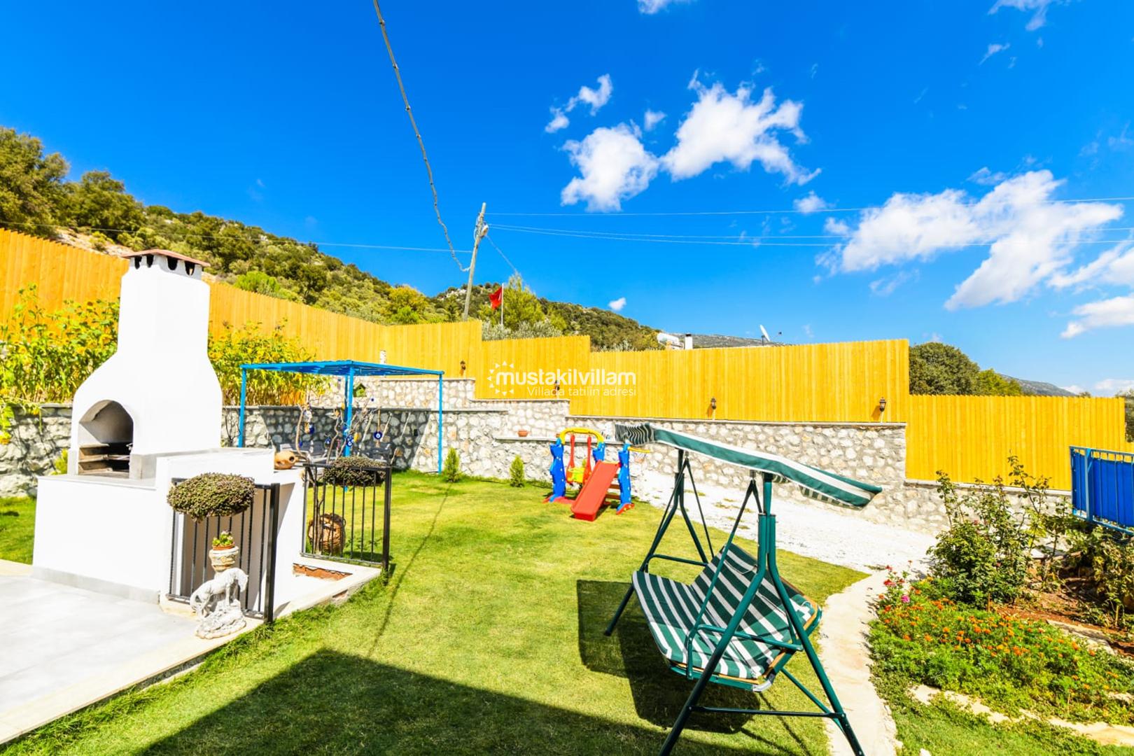 Bahçe alanında ayrıca barbekü/mangal alanı, yemek masası ve bahçe mobilyaları gibi donatılar da bulunur. Bu özellikler, tatil boyunca hem eğlence hem de açık hava aktiviteleri için ideal ortam sağlar.