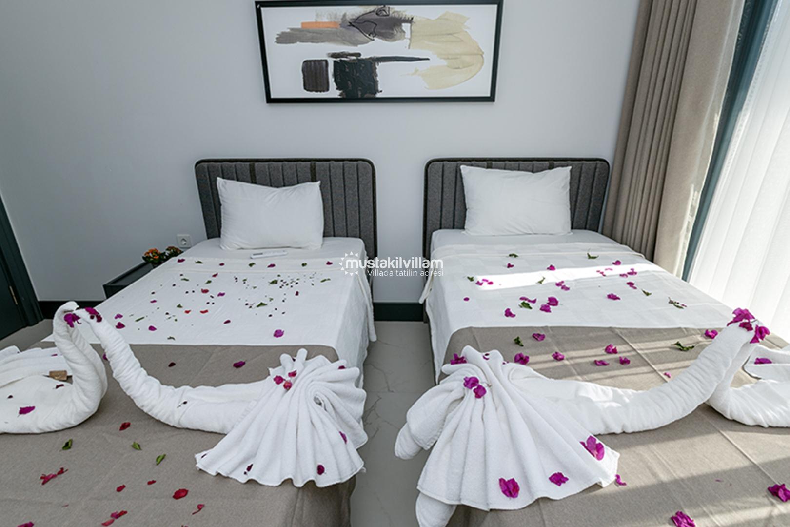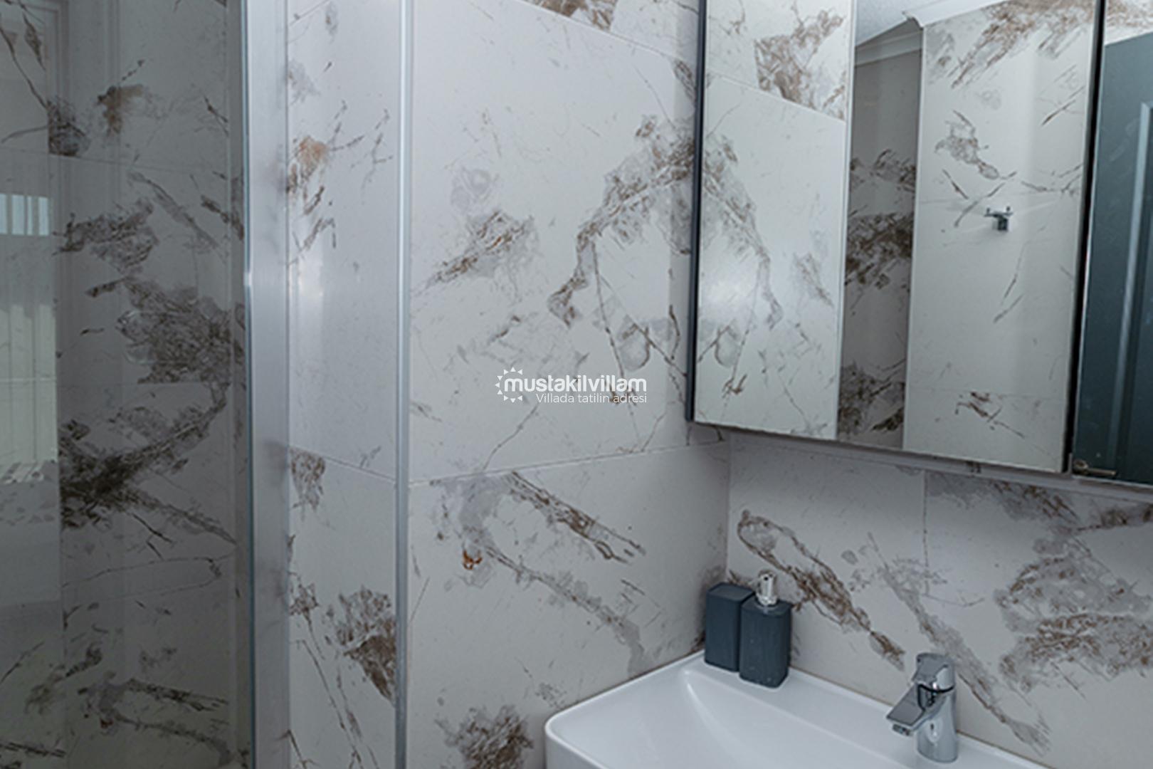 Villa Kuvars’ta toplam 4 yatak odası mevcuttur ve bunların her biri kendine ait özel banyoya sahiptir. Bu, her misafir grubu için ekstra konfor ve mahremiyet sağlar.