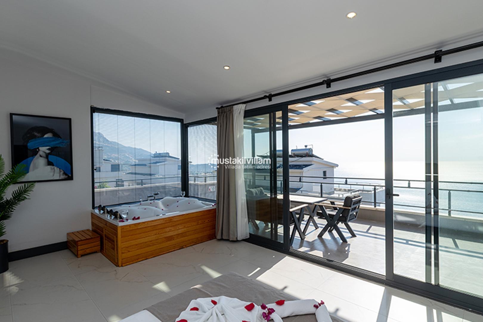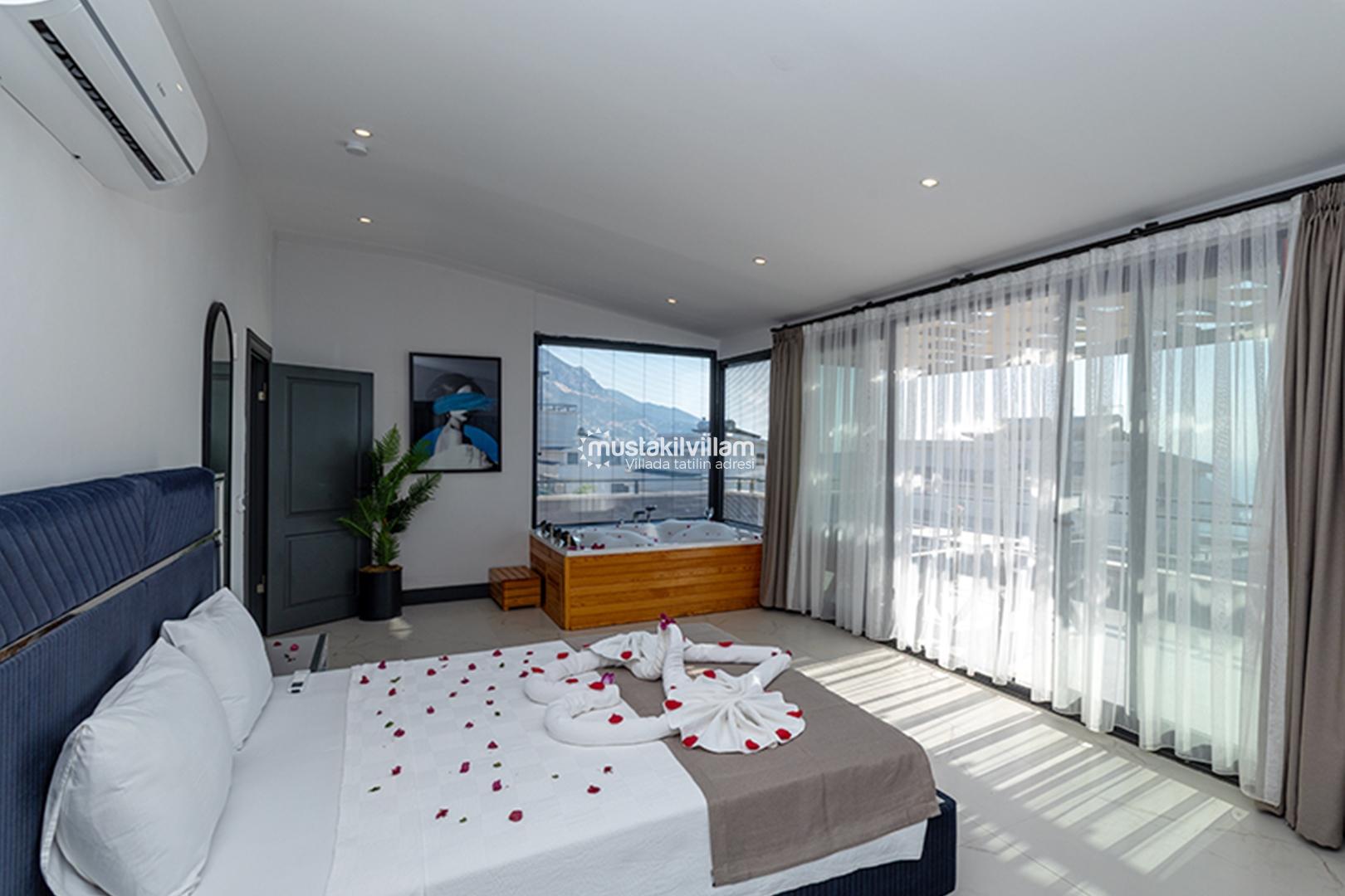 yatak odasında ayrıca jakuzi ve oturma alanı gibi ekstra konfor unsurları bulunur. Bu detay, özellikle romantik çiftler veya tatilde daha fazla rahatlık arayanlar için büyük bir artı sağlar.