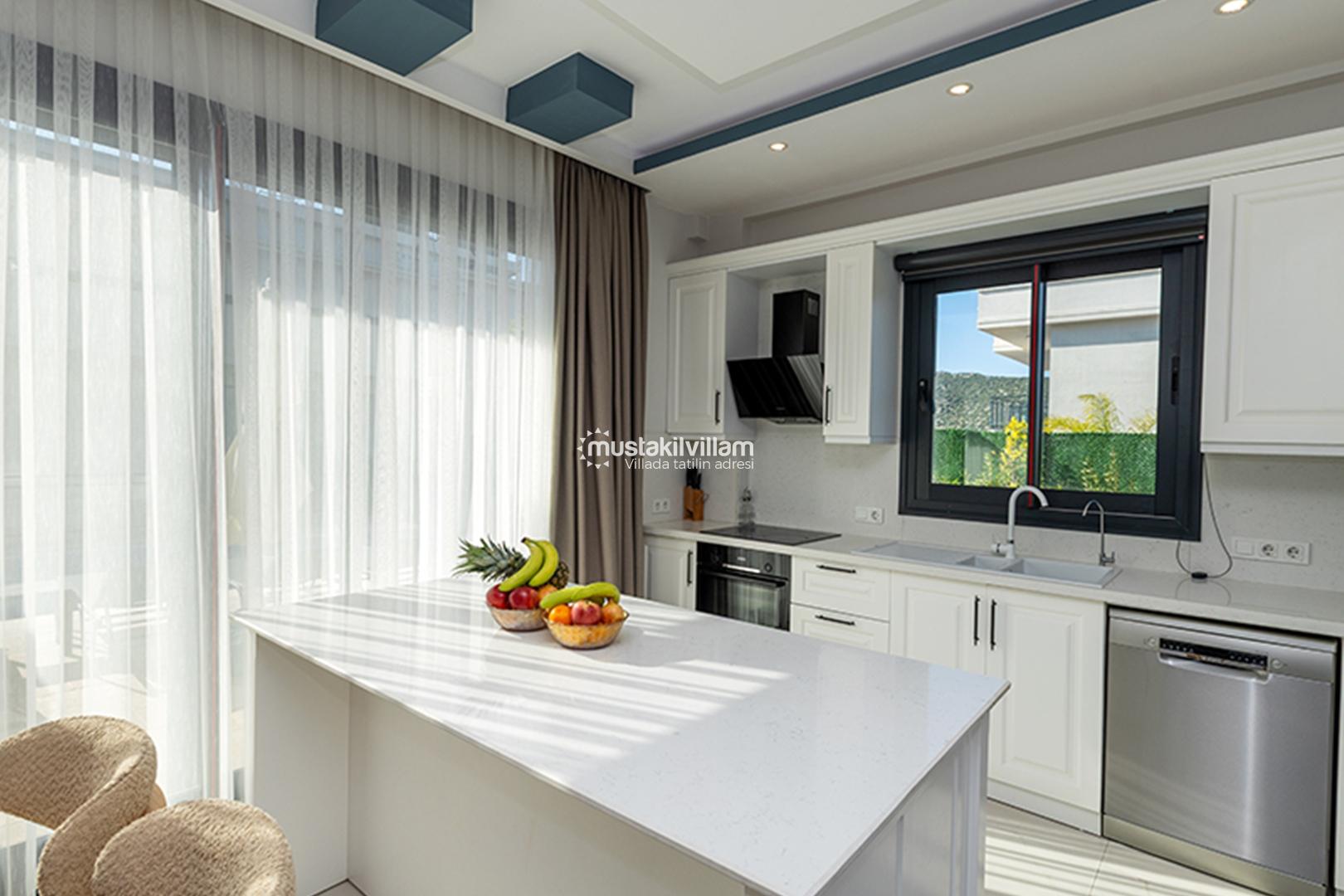 Bu tam donanımlı mutfak sayesinde misafirler, kahvaltıdan akşam yemeğine kadar tüm öğünleri villa içerisinde özgürce hazırlayabilirler. Ayrıca açık havuz kenarında barbekü yapma imkânı da tatilinizi daha keyifli hâle getirir.