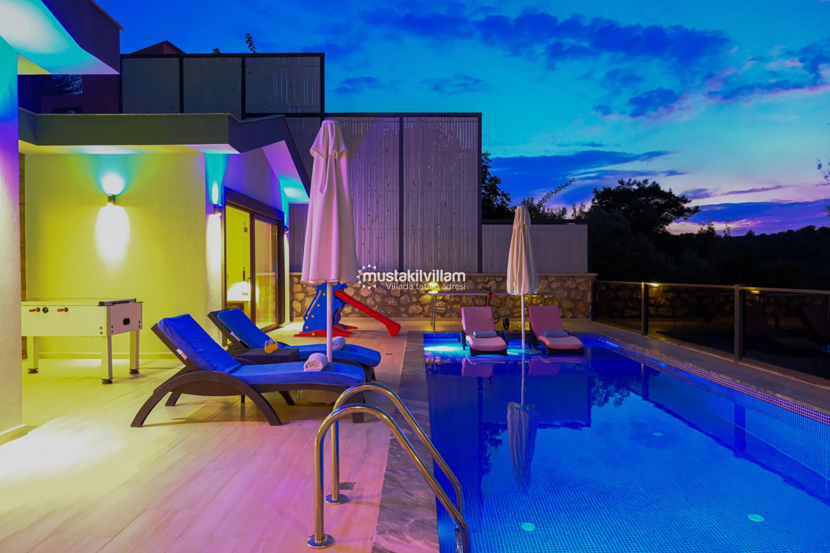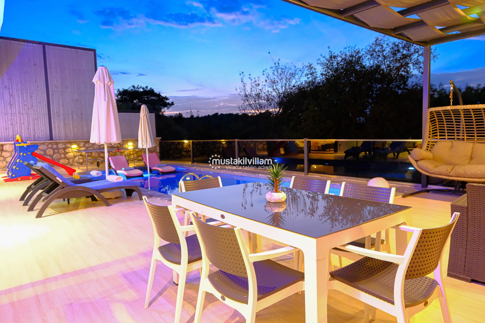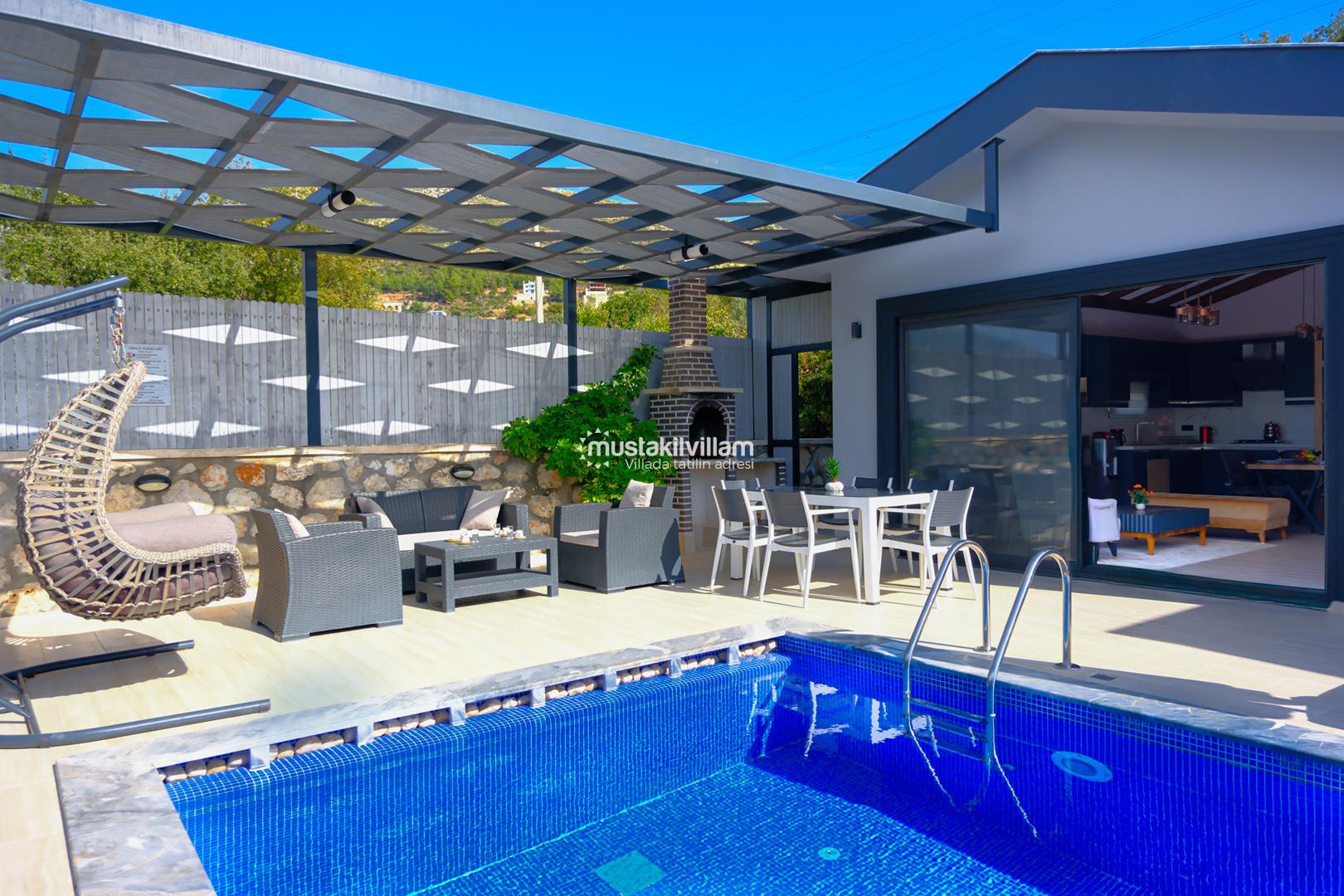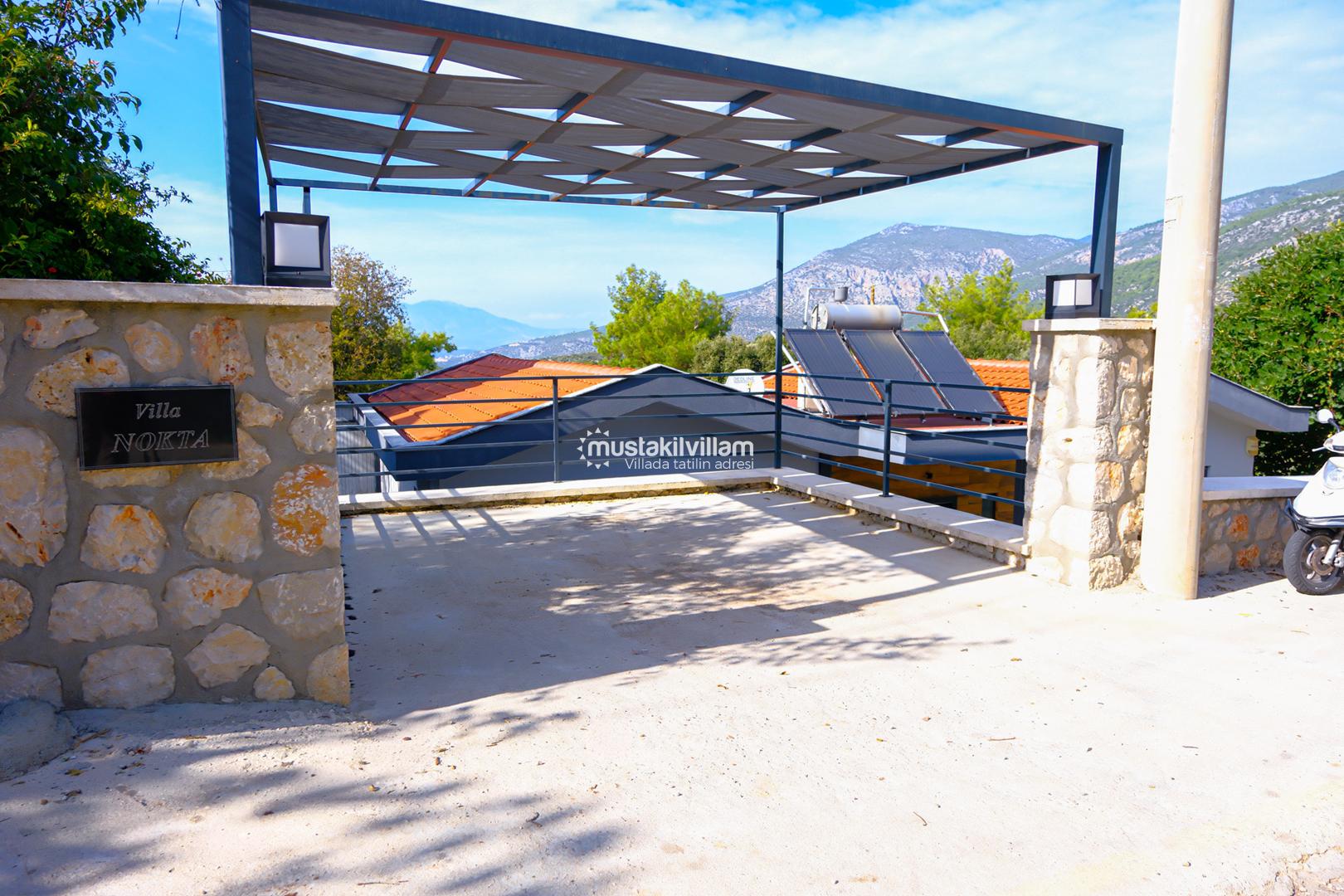 Villa Nokta, Kalkan Üzümlü mevkiinde konumlu modern ve şık tasarımıyla dizayn edilmiş kiralık villa seçeneğidir. Özel yüzme havuzlu bu güzel villamız havuzu ve havuz terası dışarıdan gözükmez. Gözlerden uzak tatini geçirmek isteyen balayı çiftleri ve muhafazakar aileler rahatlıkla tercih edebilir. Amerikan mutfak salon, salondan havuz terasına erişim ve yatak odasında jakuzi yer almaktadır. Havuzun güneşin tadını doyasıya çıkarabilir jakuzide salıncakta yılın tüm yorgunluğunuzu atabilirsiniz. Kiralık Villa Nokta, suit 2 yatak odalı 4 kişi konaklama kapasitelidir. Kalkan şehir merkezine 8 km mesade dir.