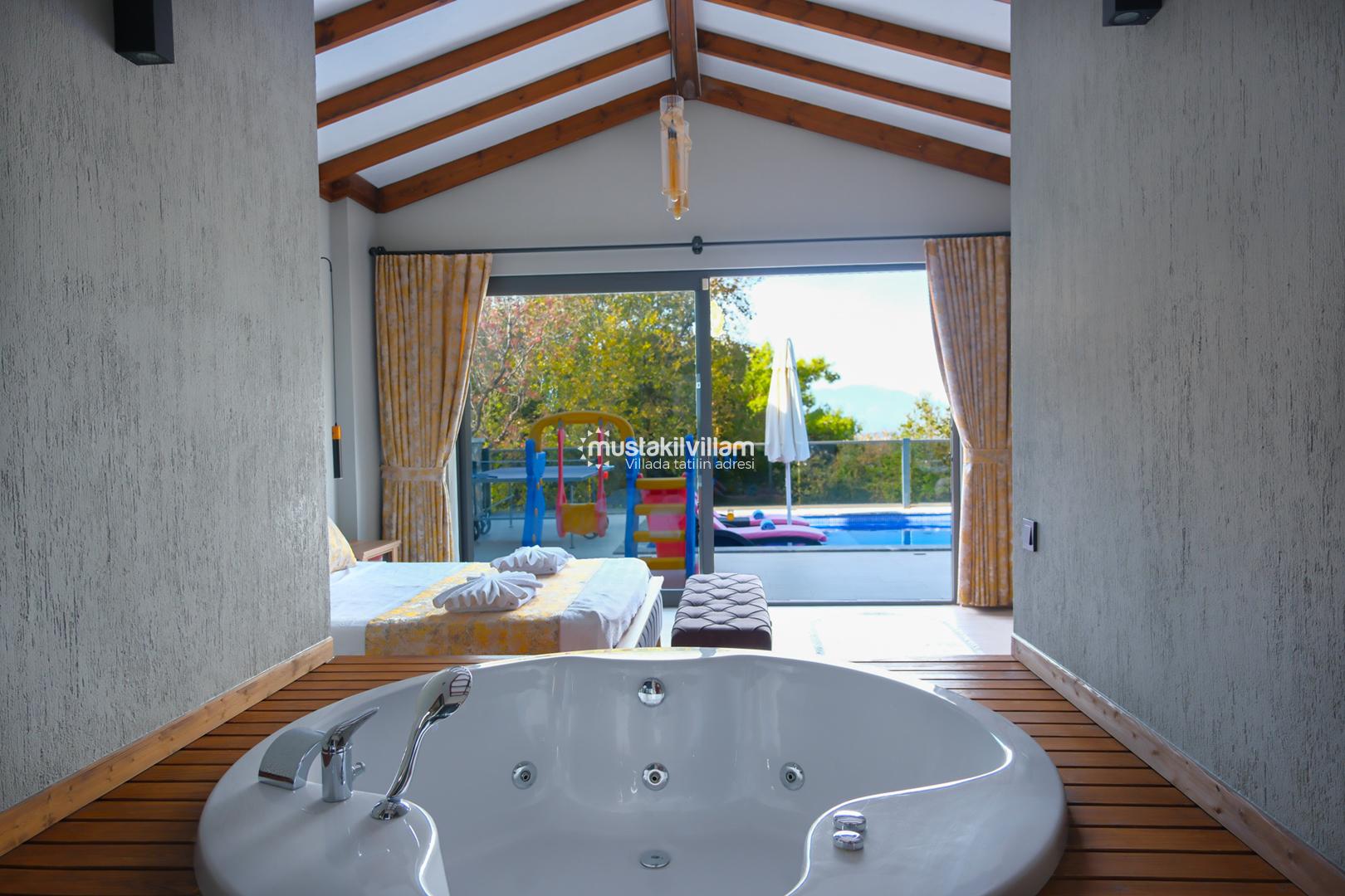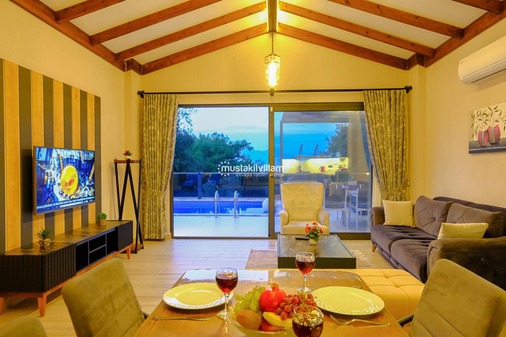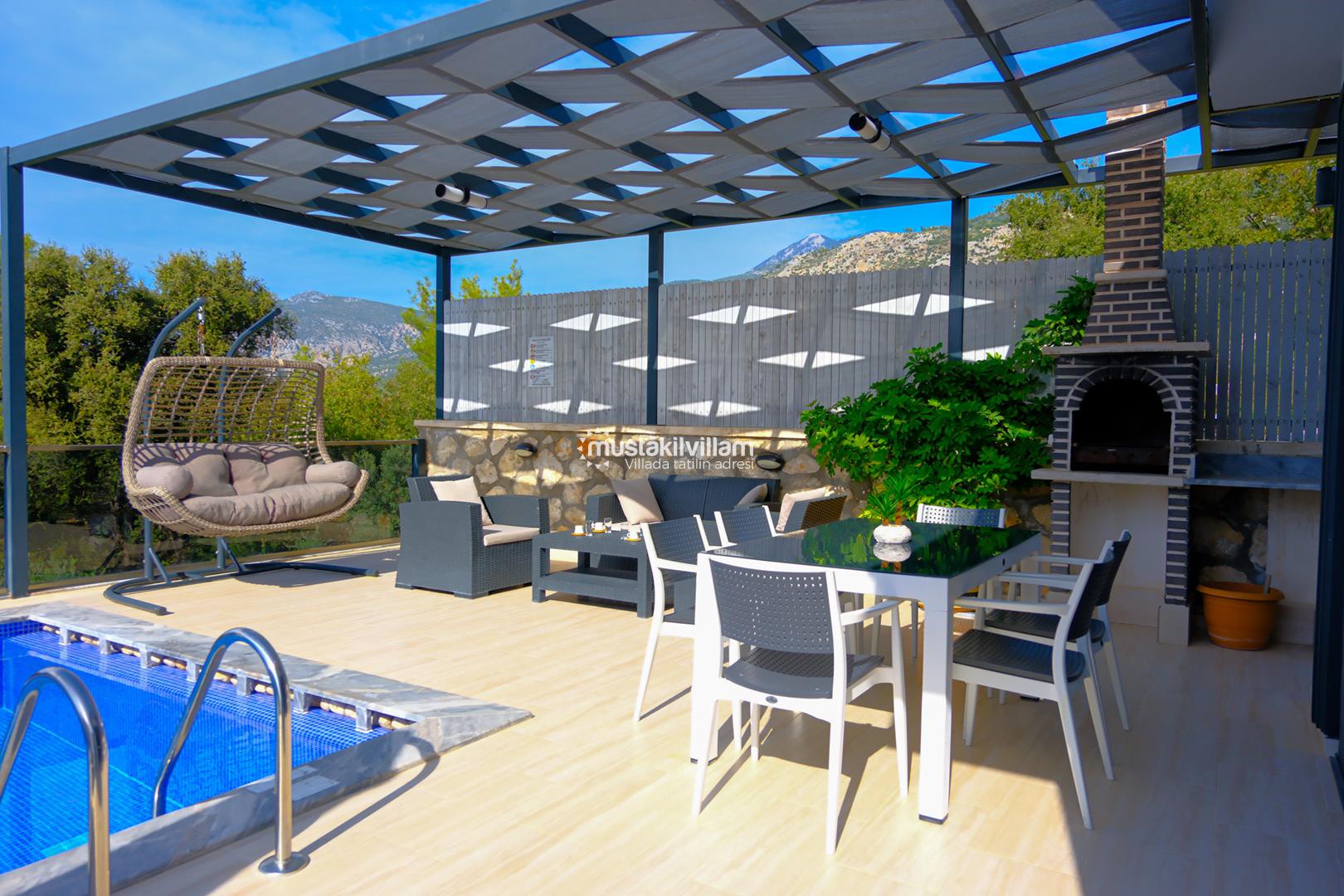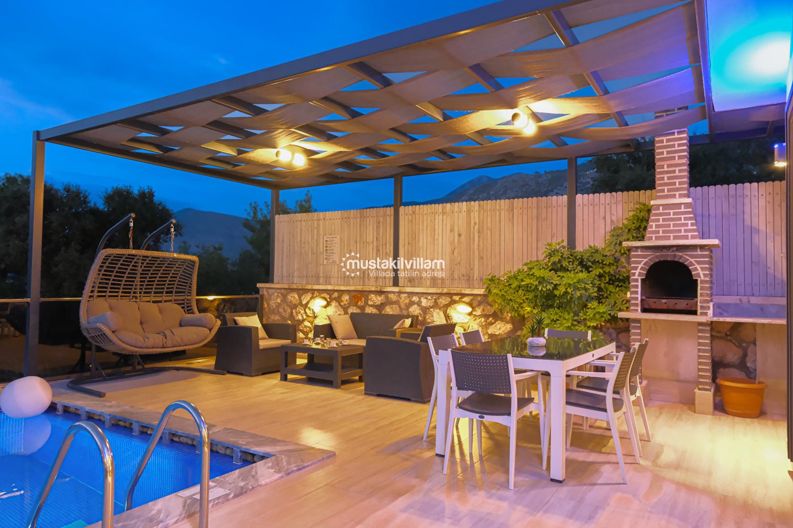Villa Nokta, Kalkan Üzümlü mevkiinde konumlu modern ve şık tasarımıyla dizayn edilmiş kiralık villa seçeneğidir. Özel yüzme havuzlu bu güzel villamız havuzu ve havuz terası dışarıdan gözükmez. Gözlerden uzak tatini geçirmek isteyen balayı çiftleri ve muhafazakar aileler rahatlıkla tercih edebilir. Amerikan mutfak salon, salondan havuz terasına erişim ve yatak odasında jakuzi yer almaktadır. Havuzun güneşin tadını doyasıya çıkarabilir jakuzide salıncakta yılın tüm yorgunluğunuzu atabilirsiniz. Kiralık Villa Nokta, suit 2 yatak odalı 4 kişi konaklama kapasitelidir. Kalkan şehir merkezine 8 km mesade dir.