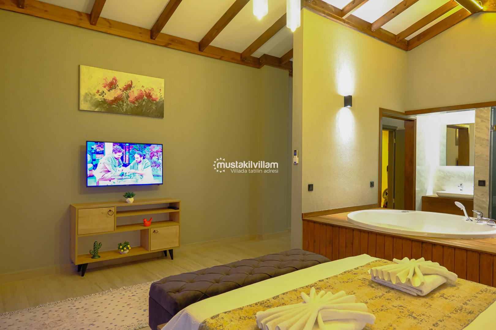 1.Yatak odası 1 çift kişilik yatak + elbise dolabı + komidin + ebeveyn banyo + Jakuzi