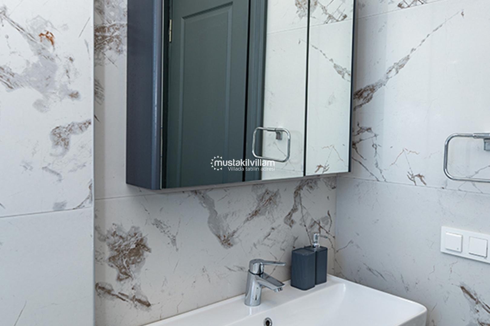 Villa Topaz’daki 4 yatak odası, her biri kendine ait banyosu ile tasarlanmıştır. Bu sayede hem aile konaklaması hem de arkadaş grupları için maksimum mahremiyet ve konfor sağlanır.