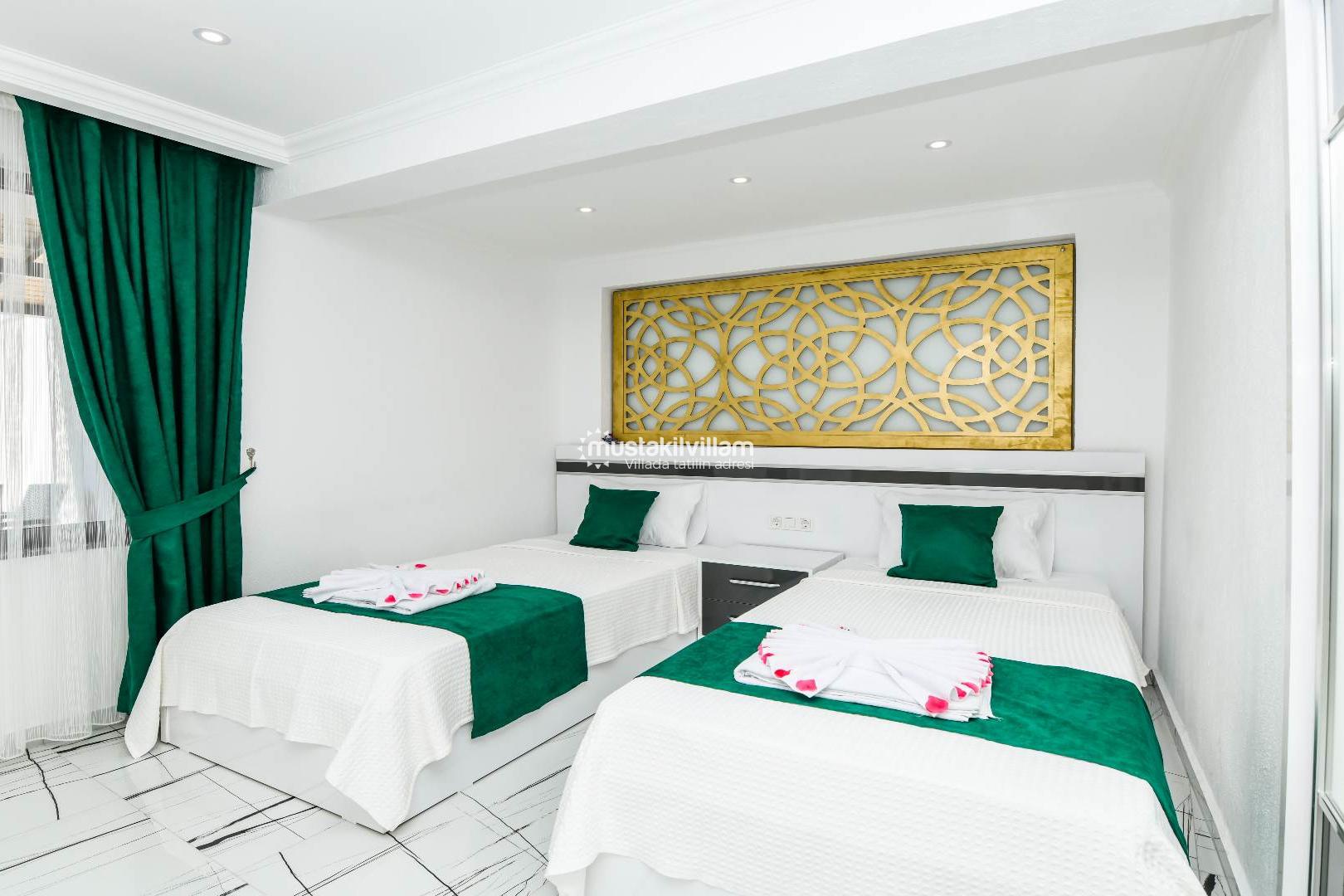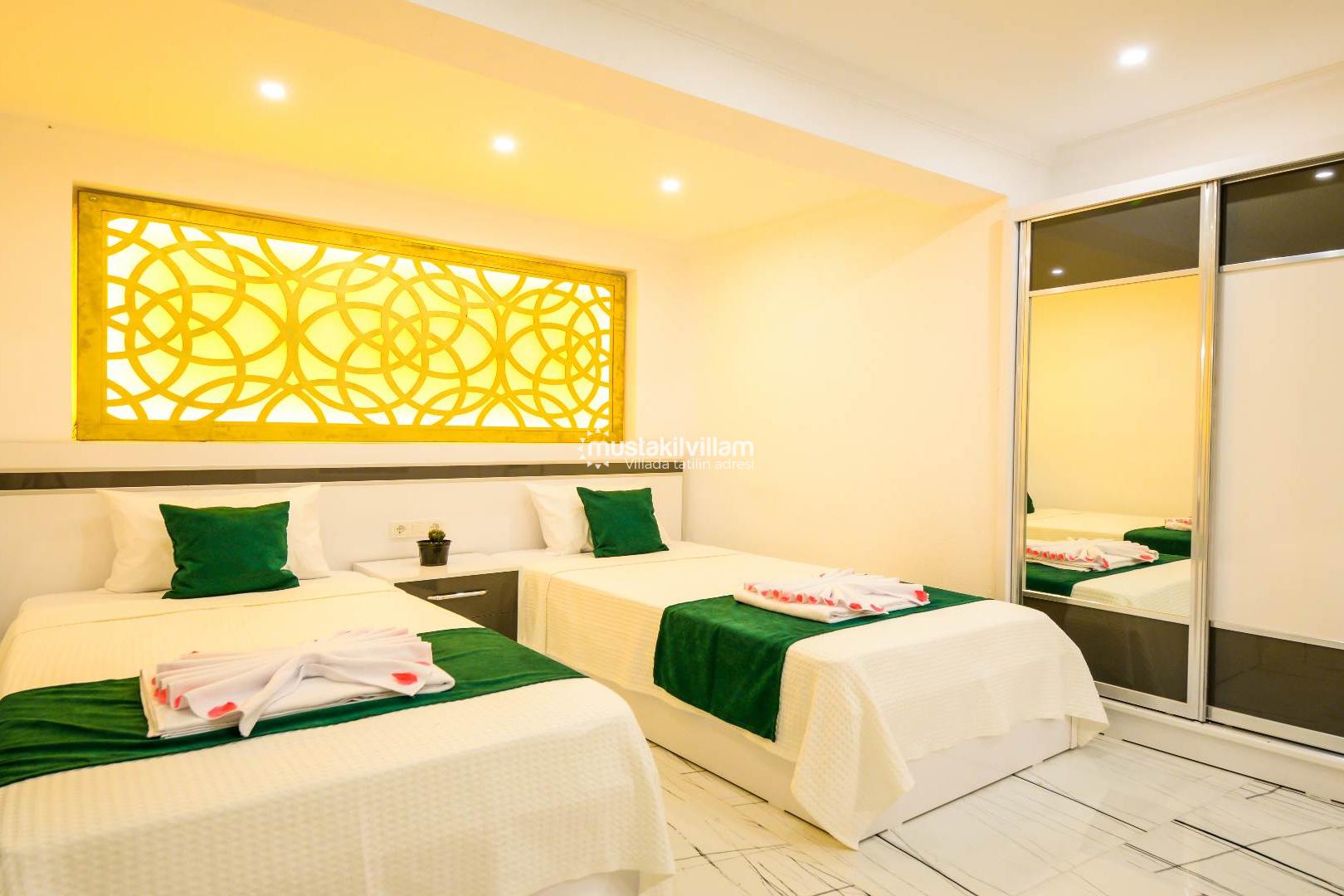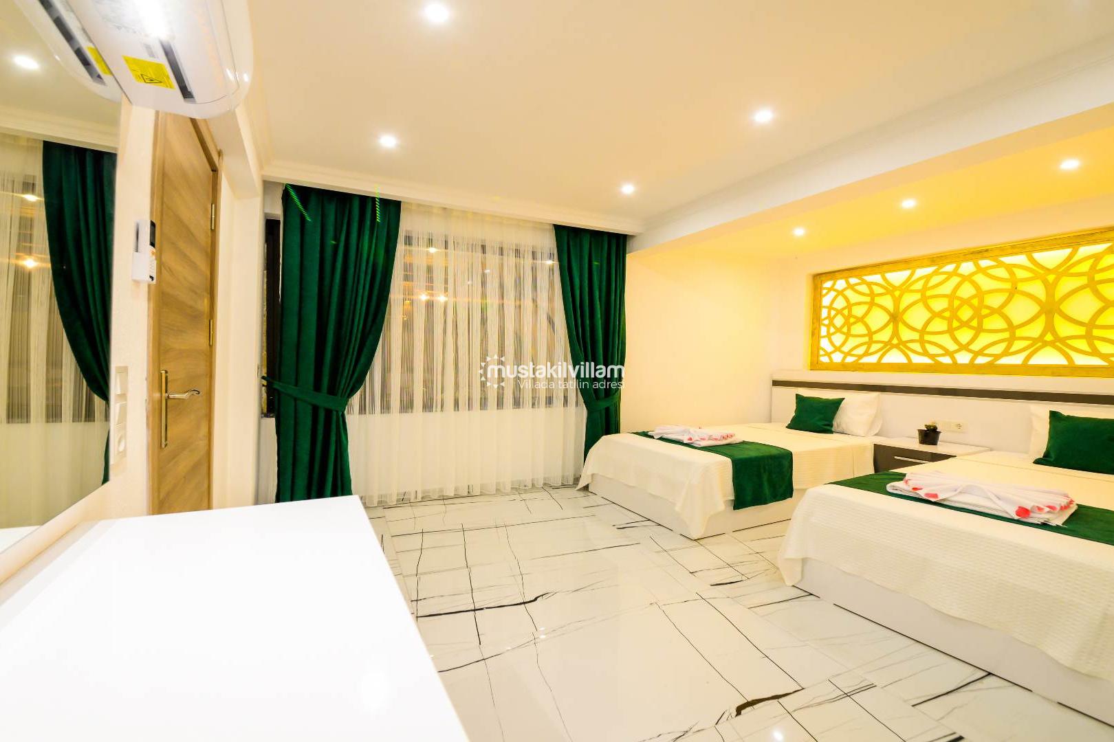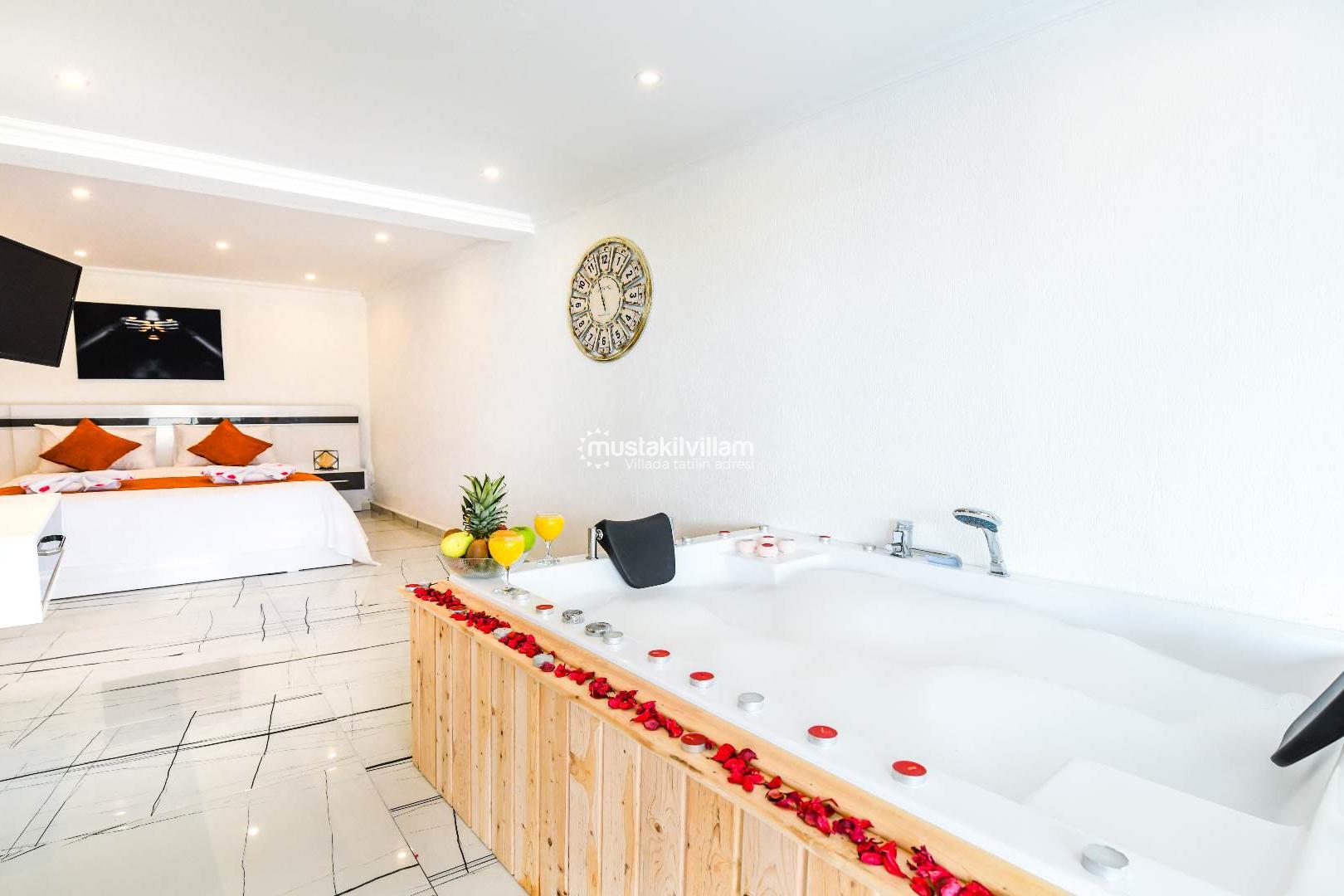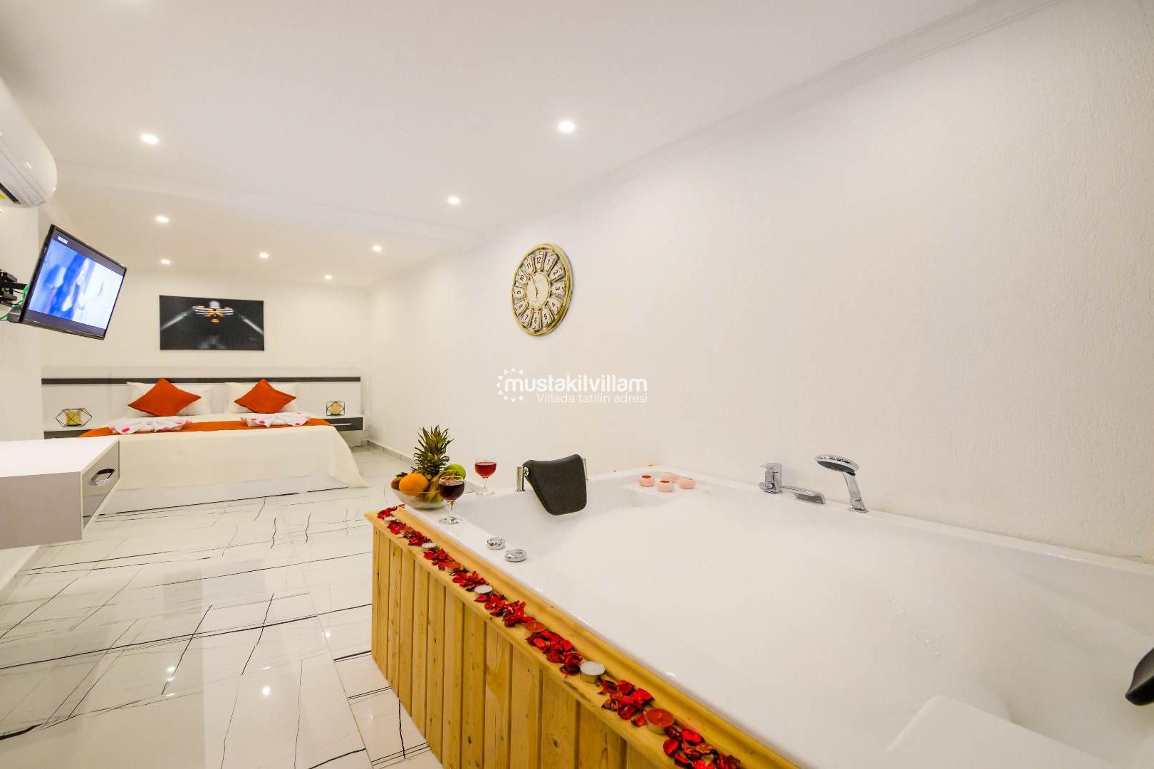 Bu oda özellikle balayı çiftleri için tasarlanmış romantik bir ambiyansa sahiptir. Jakuzili yapısı sayesinde tatilinizi daha keyifli ve dinlendirici hale getirir.