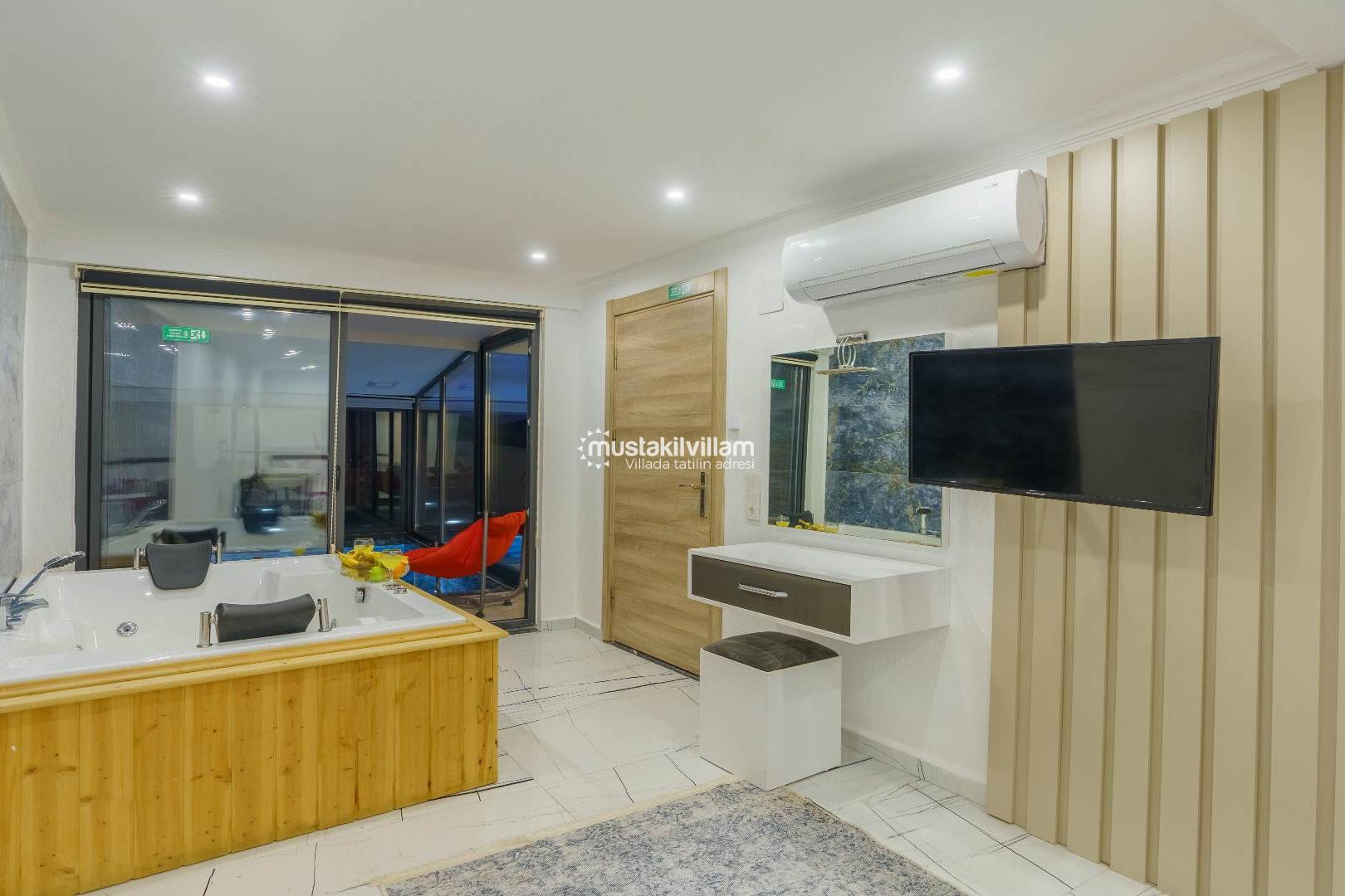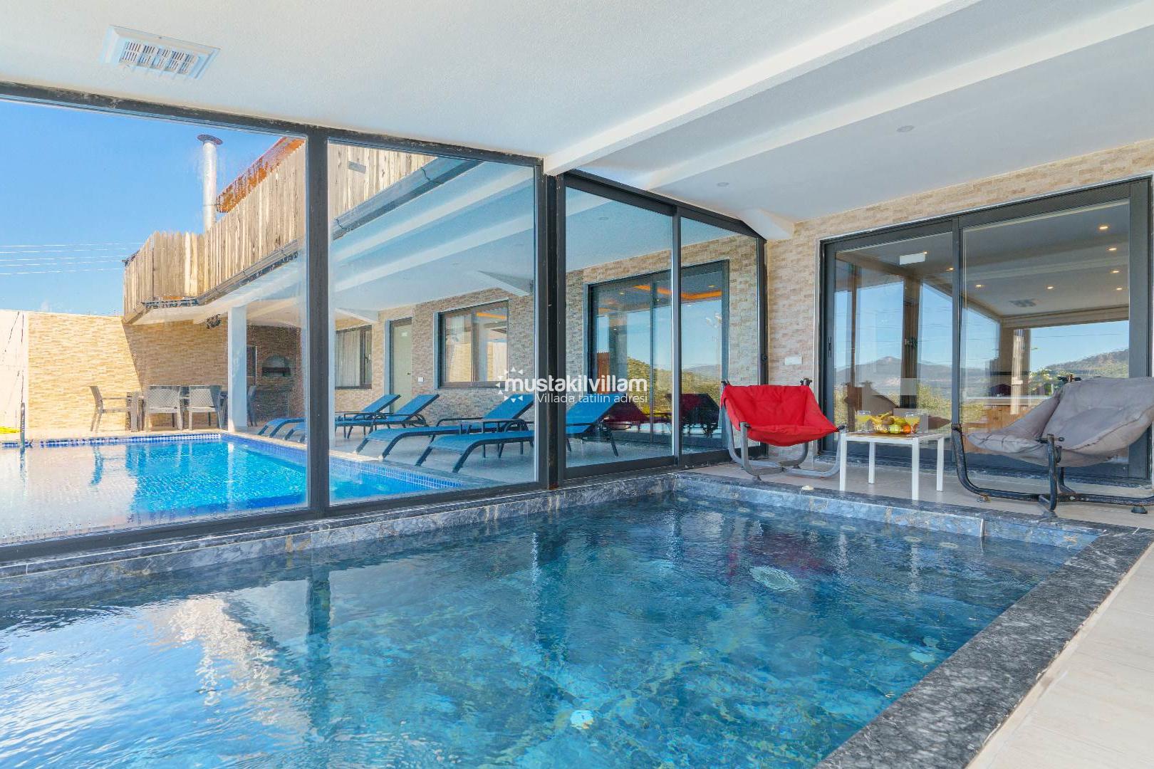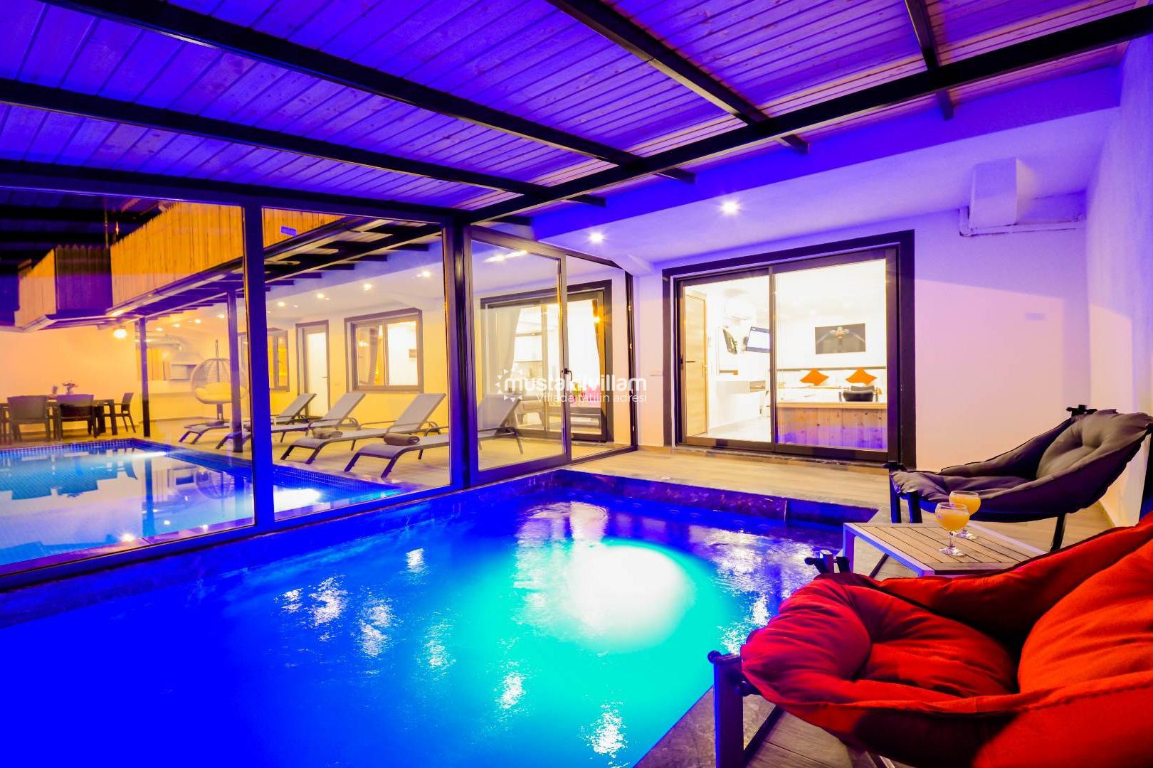Villa Yaz 3’ün en önemli ayrıcalıklarından biri kapalı ısıtmalı havuzudur. Özellikle bahar ve sonbahar aylarında tatil planlayan misafirler için büyük konfor sağlar.