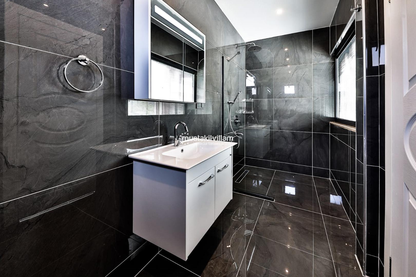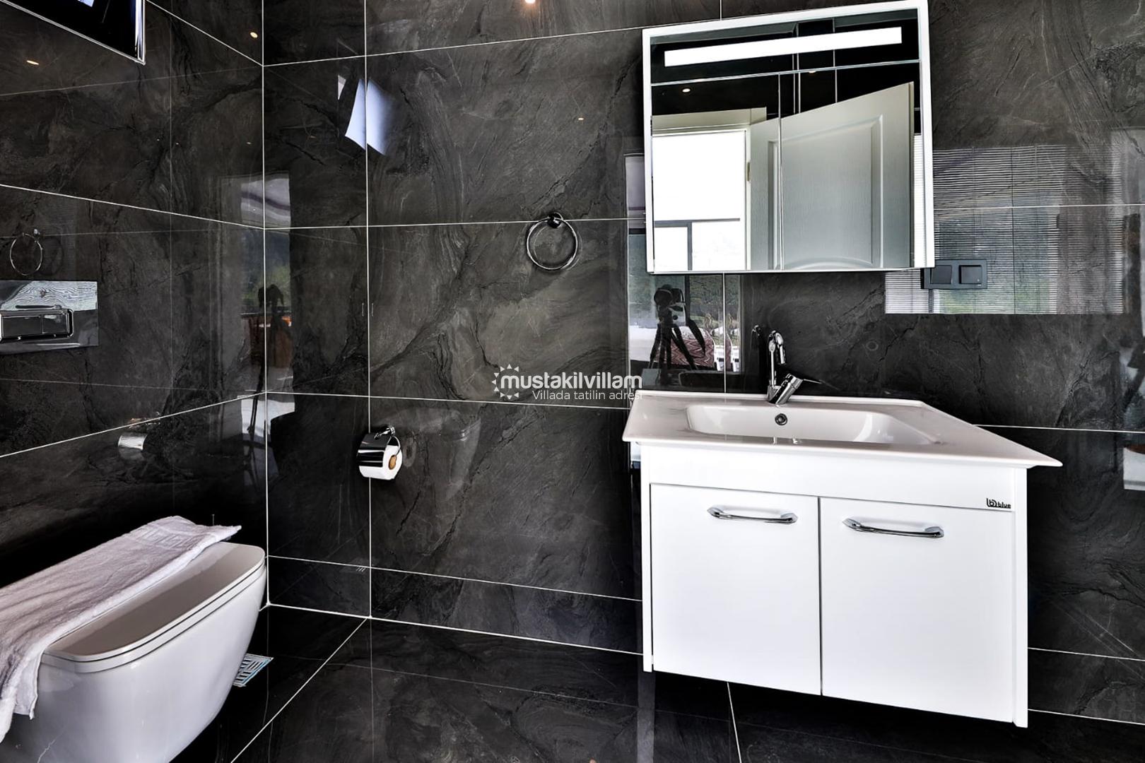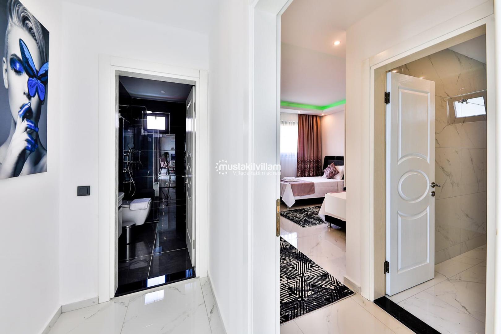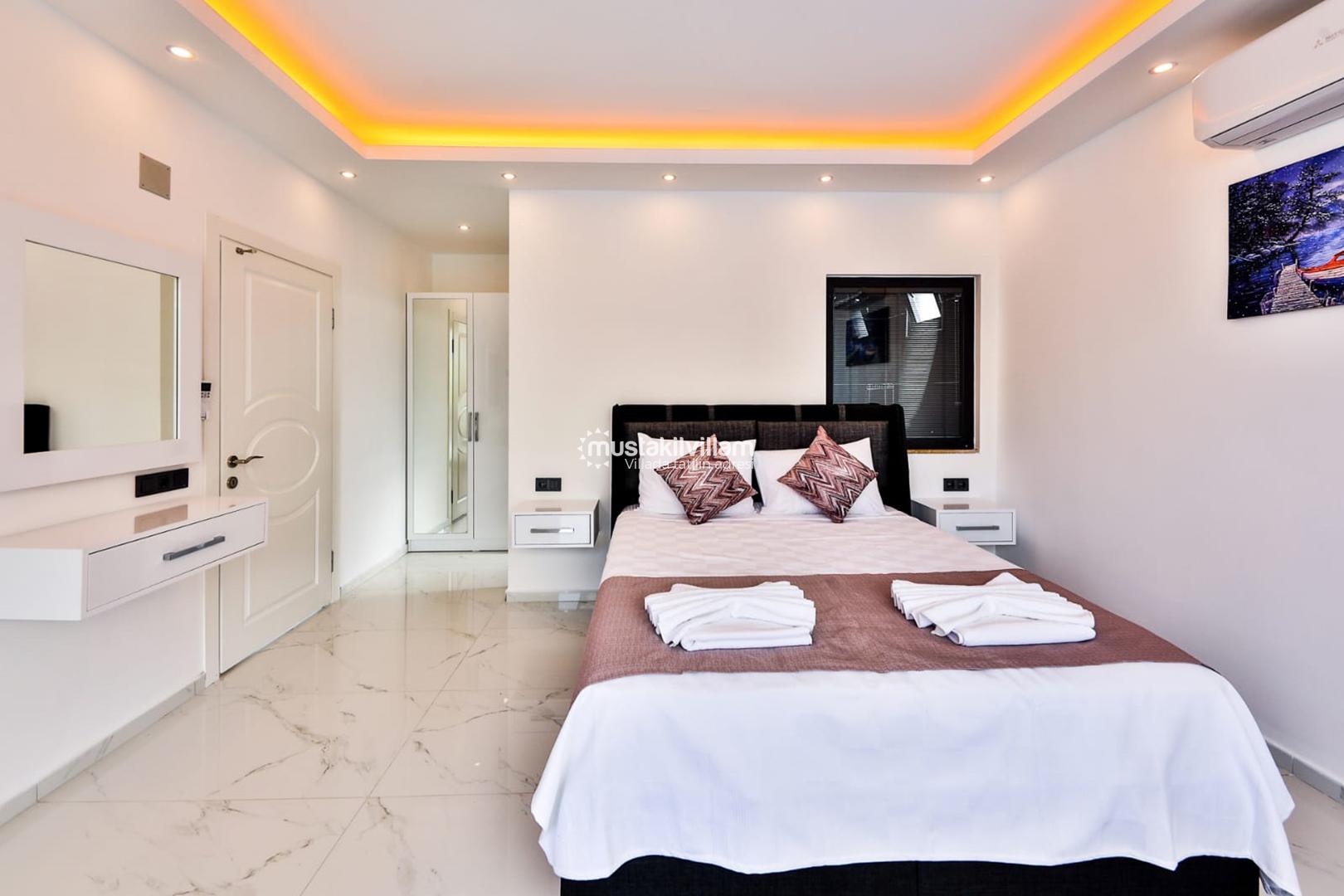 Villanın üç yatak odası, her biri konfor ve estetik gözetilerek özenle tasarlanmıştır. Birinci oda olan suit oda; çift kişilik yatak, klima, özel banyo ve jakuziyle donatılmış olup misafirlere beş yıldızlı otel konforunu aratmayan bir deneyim sunmaktadır. İkinci yatak odası çift kişilik yatak ve özel banyoya, üçüncü yatak odası ise iki ayrı tek kişilik yatak ve banyoya sahiptir. Tüm odalarda klima bulunması, sıcak Akdeniz yazlarında bile dinlendirici ve serin bir uyku ortamı sağlamaktadır. Her detayın düşünüldüğü bu yaşam alanları, misafirlerin tatilden en yüksek verimi almasını hedeflemektedir.