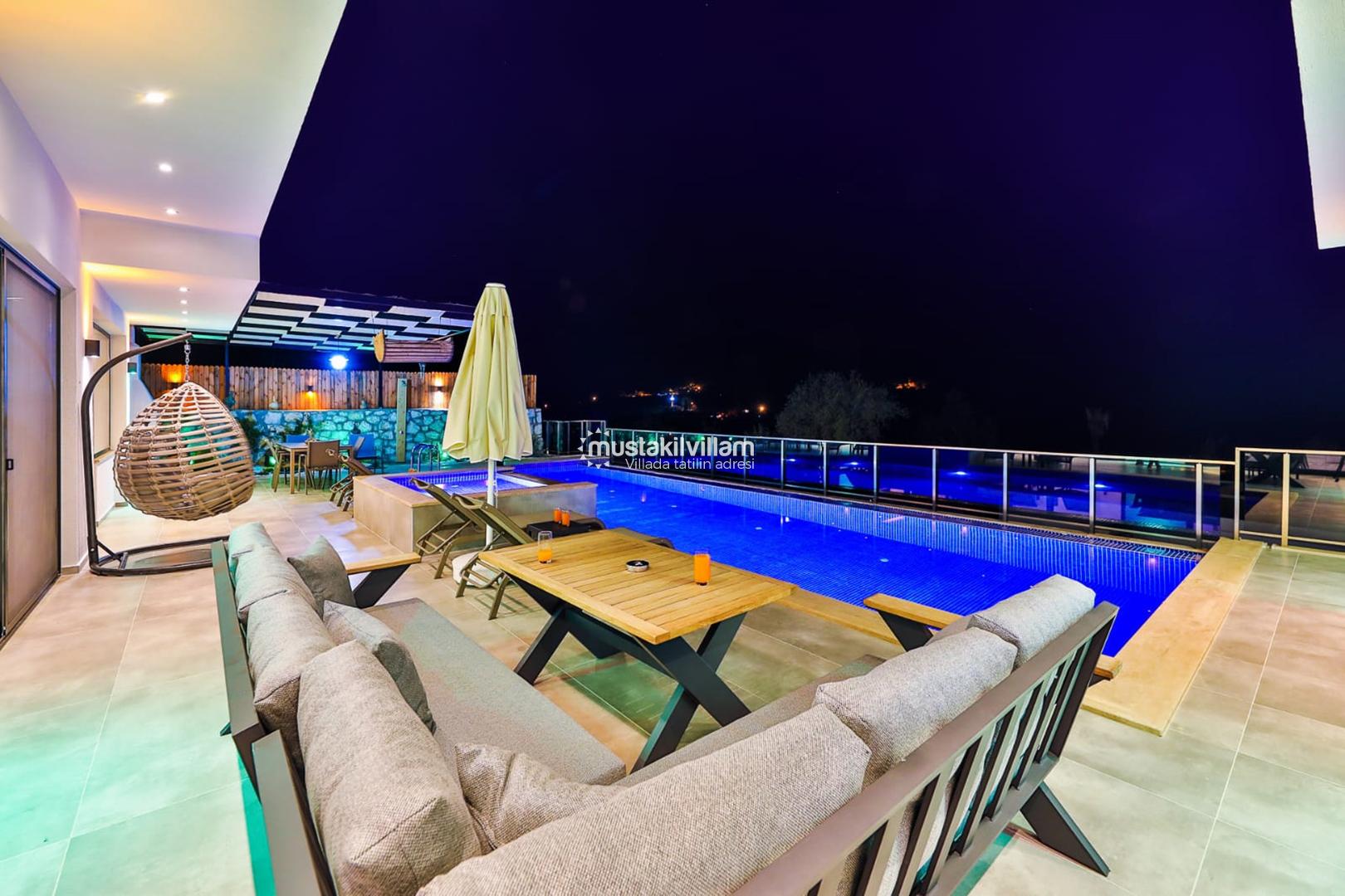 Villanın tartışmasız en çarpıcı özelliği, tamamen dışarıdan görünmeyen, gizlilik içinde tasarlanmış özel korunaklı havuzu ve geniş havuz terasıdır. 4 metre eninde, 12 metre boyunda ve 1,50 metre derinliğindeki bu havuz; büyükler için ferahlatıcı, çocuklar için ise güvenli bir yüzme alanı sunmaktadır. Korunaklı yapısı sayesinde villa, özellikle muhafazakâr aileler ile mahremiyet önceliği olan balayı çiftleri arasında Kalkan'ın en çok tercih edilen villaları arasına girmiştir. Güneşli bir öğleden sonrayı havuz kenarında, dış dünyadan tamamen soyutlanmış biçimde geçirmek isteyenler için bu villa adeta bir cennet köşesidir.