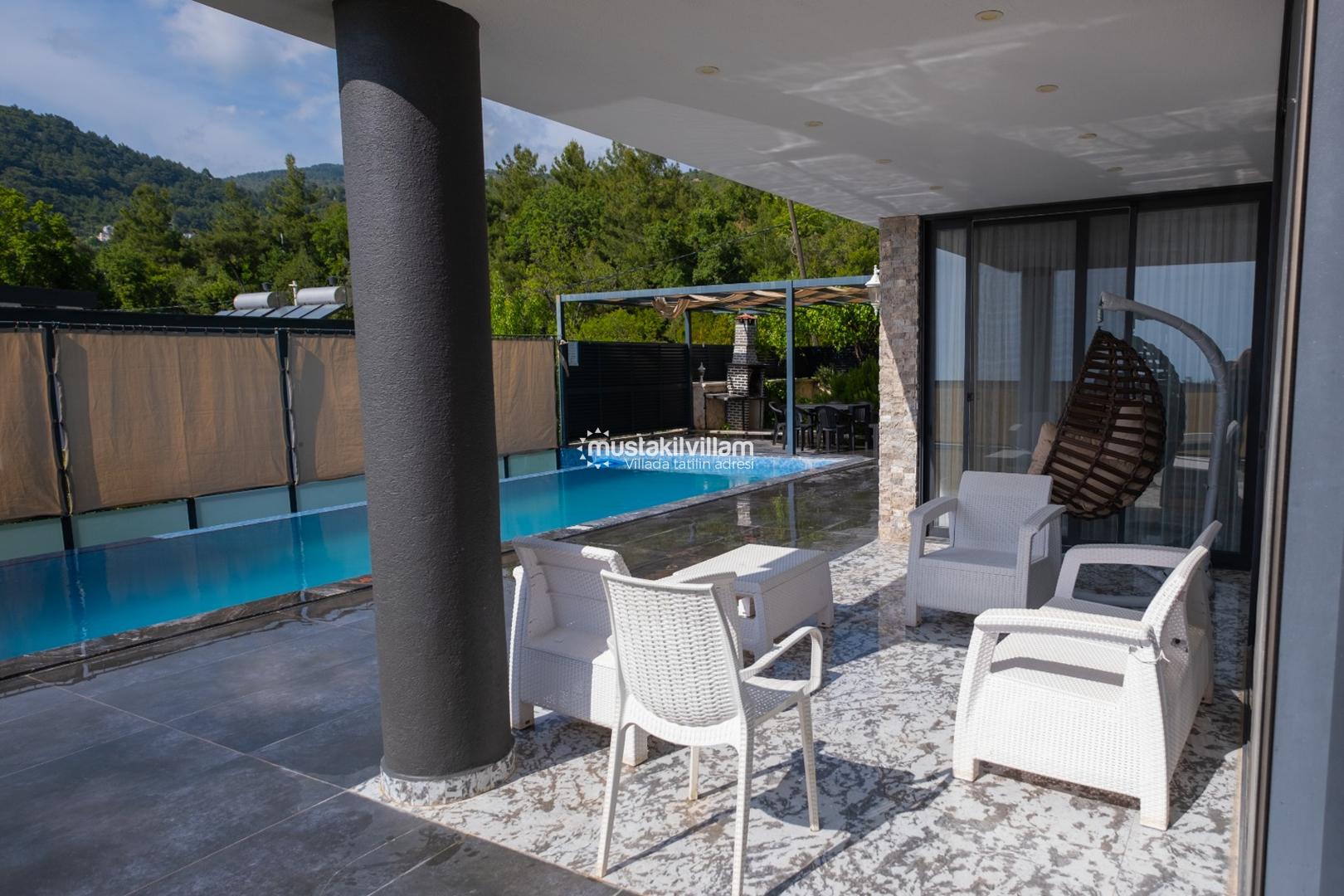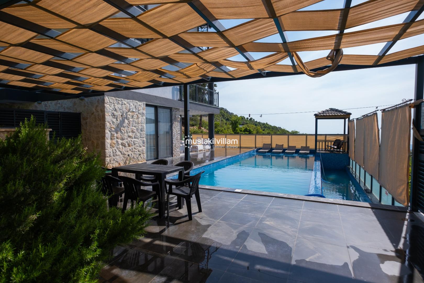 Villamızda tatil yaparken, doğa ve deniz manzarasını izlerken aynı zamanda modern yaşamın tüm olanaklarından faydalanabilirsiniz. Özel havuz, ısıtmalı havuz ve çocuk havuzu gibi ayrıcalıklar, misafirlere unutulmaz bir tatil deneyimi sağlıyor.