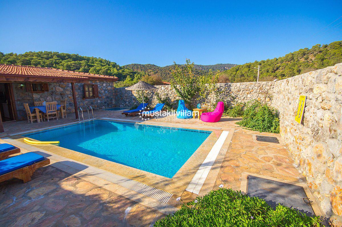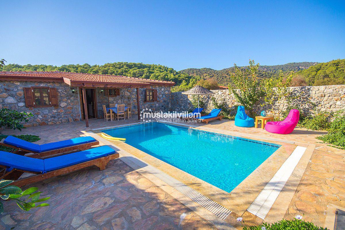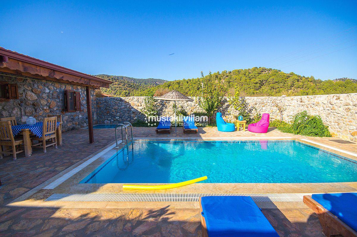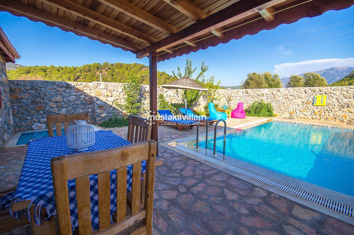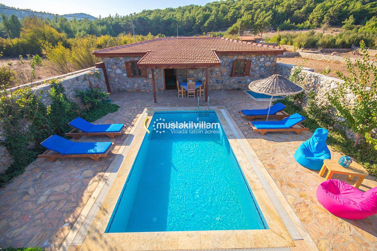Tarihi Fethiye Kayaköy'de bulunan villa Arya taş mimari ahşap dizaynlı özel havuzlu korunaklı bir tatil villasıdır. Yeşillikler içinde doğal yapısı bozulmamış huzurlu bir tatil ortamı sağlamaktadır. Özel bahçe içinde bulunan korunaklı yetişkin havuzu ve çocuk havuzu seçeneği ile çekirdek aile , balayı çiftleri ve muhafazakar tatilciler için muhteşem bir tatil villasıdır. Villamızın etrafı yüksek taş duvar ile çevrili olup havuzu dışarıdan kesinlikle gözükmemektedir. Villamız tek kat açık plan mutfak 2 yatak odası ile 4 kişi kapasitelidir. Bahçe içinde BBQ mangal keyifi ile hoş vakit geçirebileceğiniz muhteşem bir tatil villasıdır.