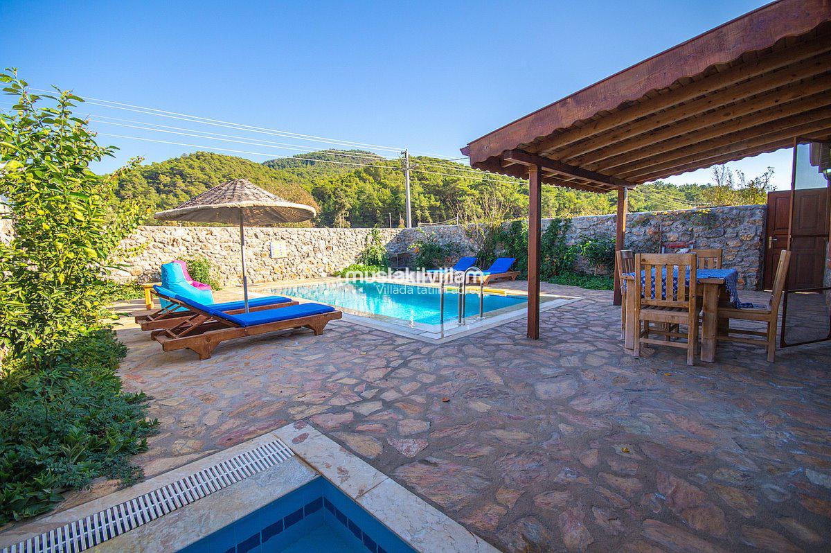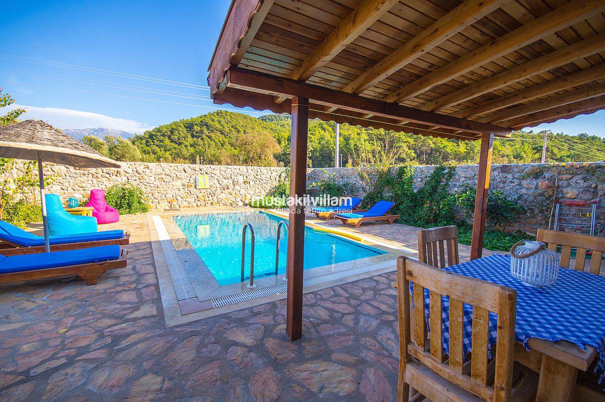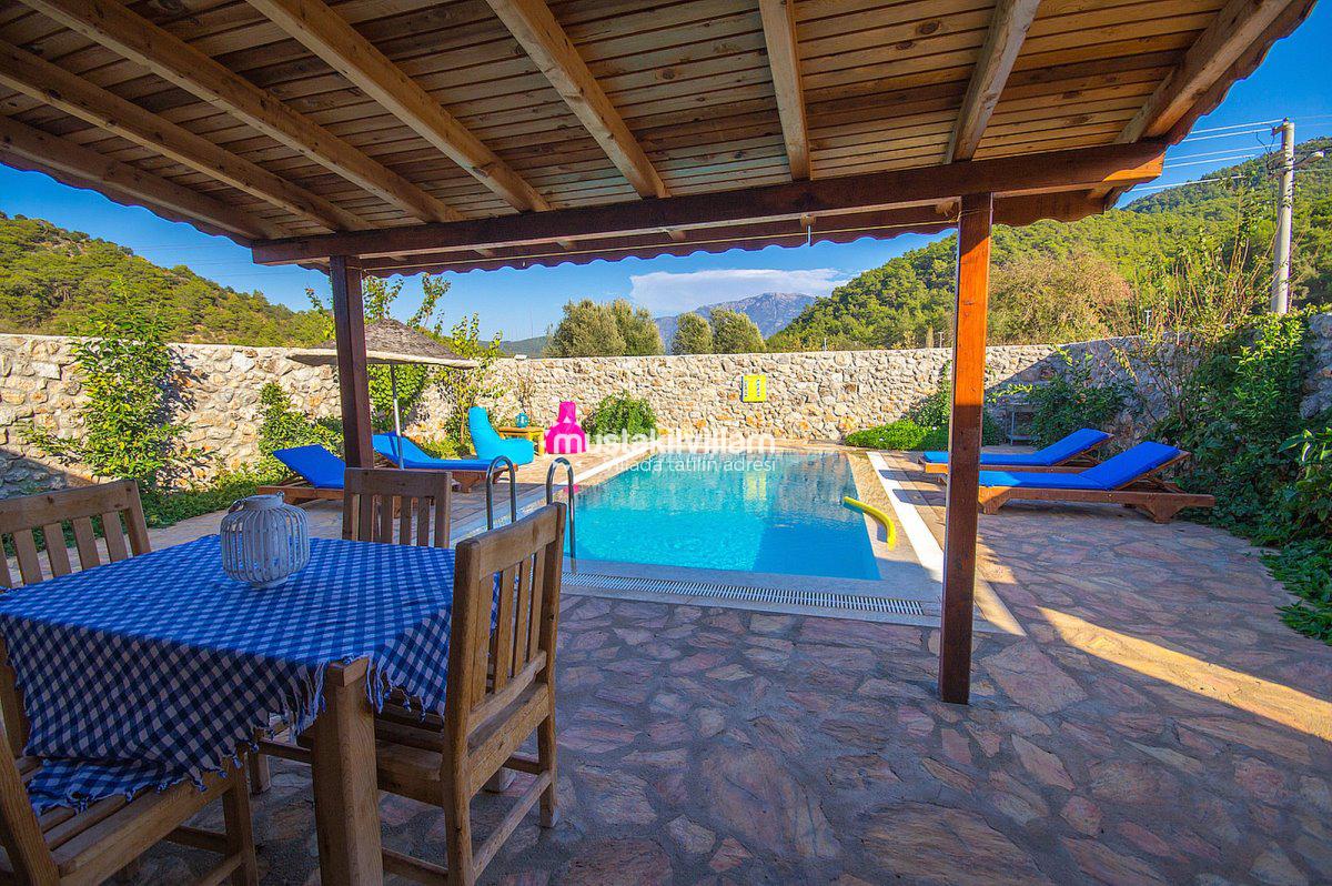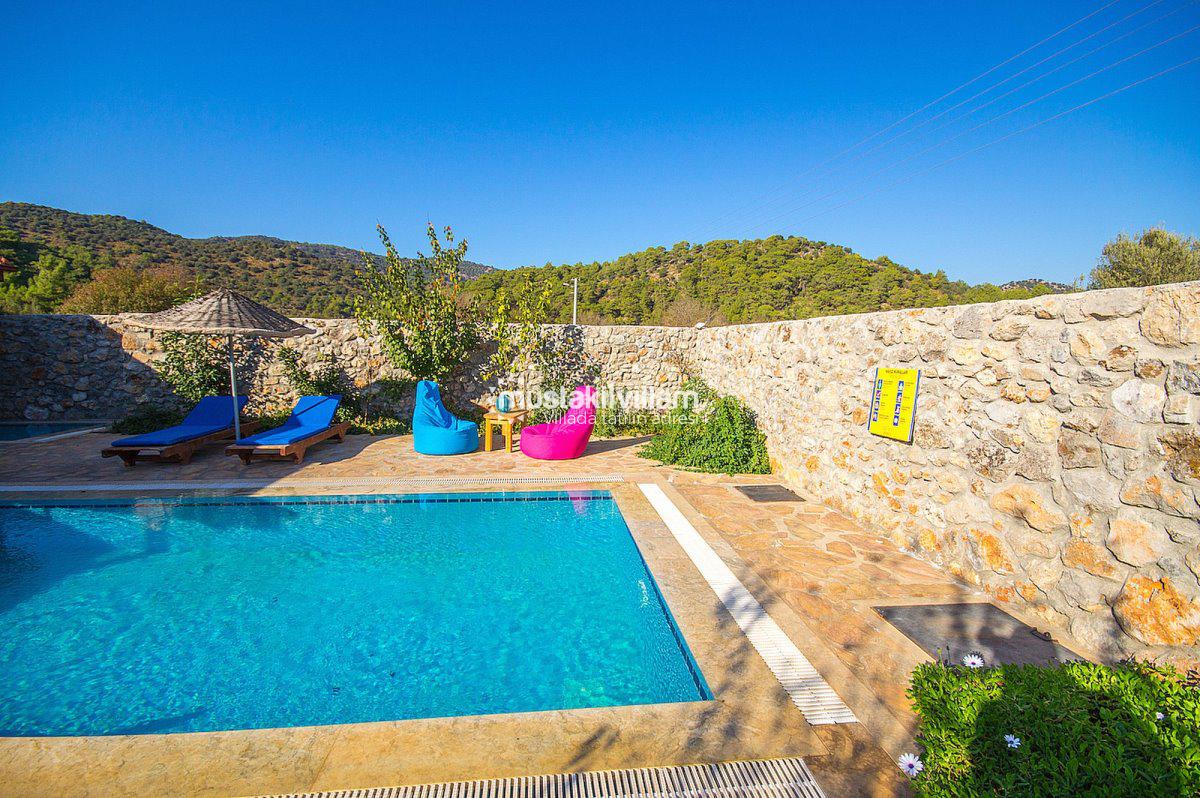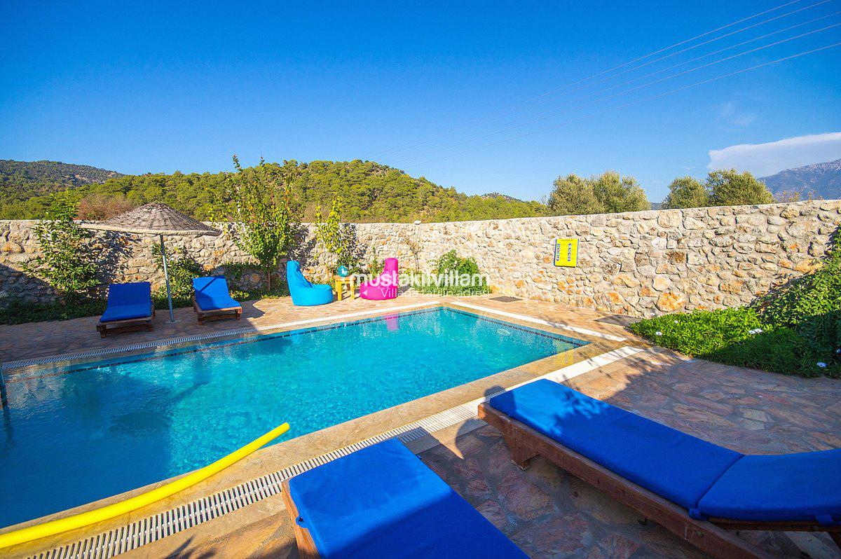Tarihi Fethiye Kayaköy'de bulunan villa Arya taş mimari ahşap dizaynlı özel havuzlu korunaklı bir tatil villasıdır. Yeşillikler içinde doğal yapısı bozulmamış huzurlu bir tatil ortamı sağlamaktadır. Özel bahçe içinde bulunan korunaklı yetişkin havuzu ve çocuk havuzu seçeneği ile çekirdek aile , balayı çiftleri ve muhafazakar tatilciler için muhteşem bir tatil villasıdır. Villamızın etrafı yüksek taş duvar ile çevrili olup havuzu dışarıdan kesinlikle gözükmemektedir. Villamız tek kat açık plan mutfak 2 yatak odası ile 4 kişi kapasitelidir. Bahçe içinde BBQ mangal keyifi ile hoş vakit geçirebileceğiniz muhteşem bir tatil villasıdır.