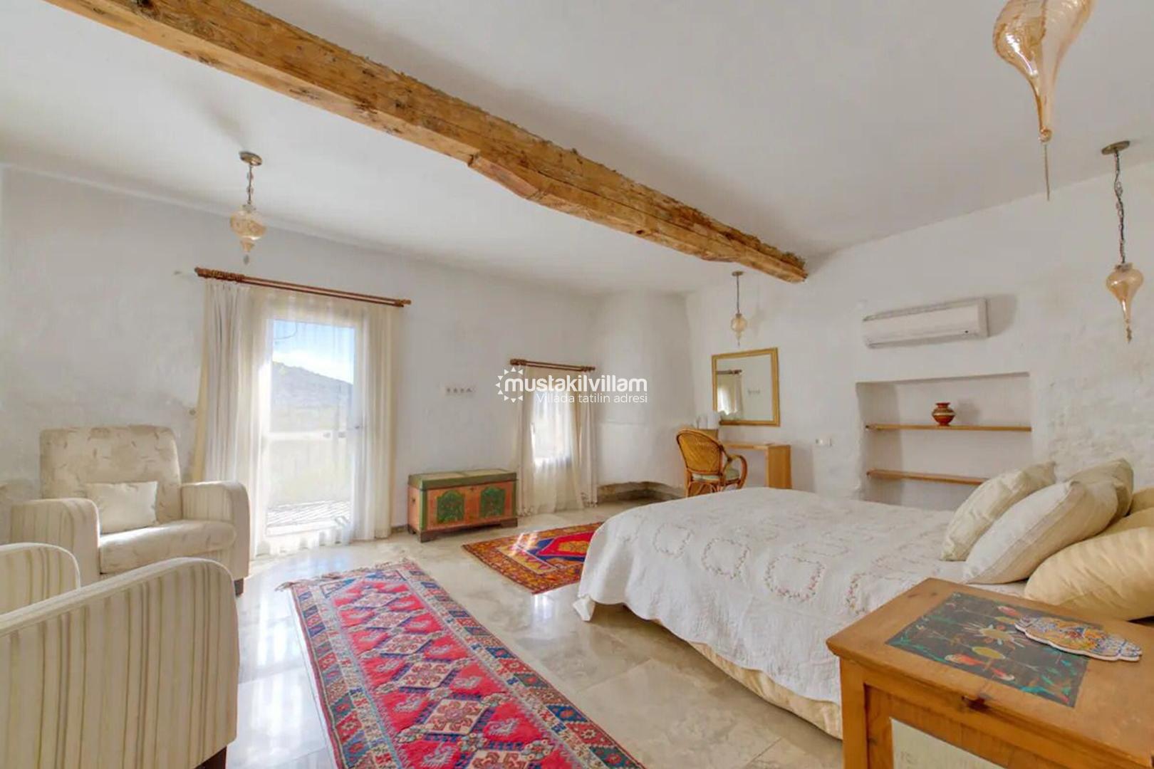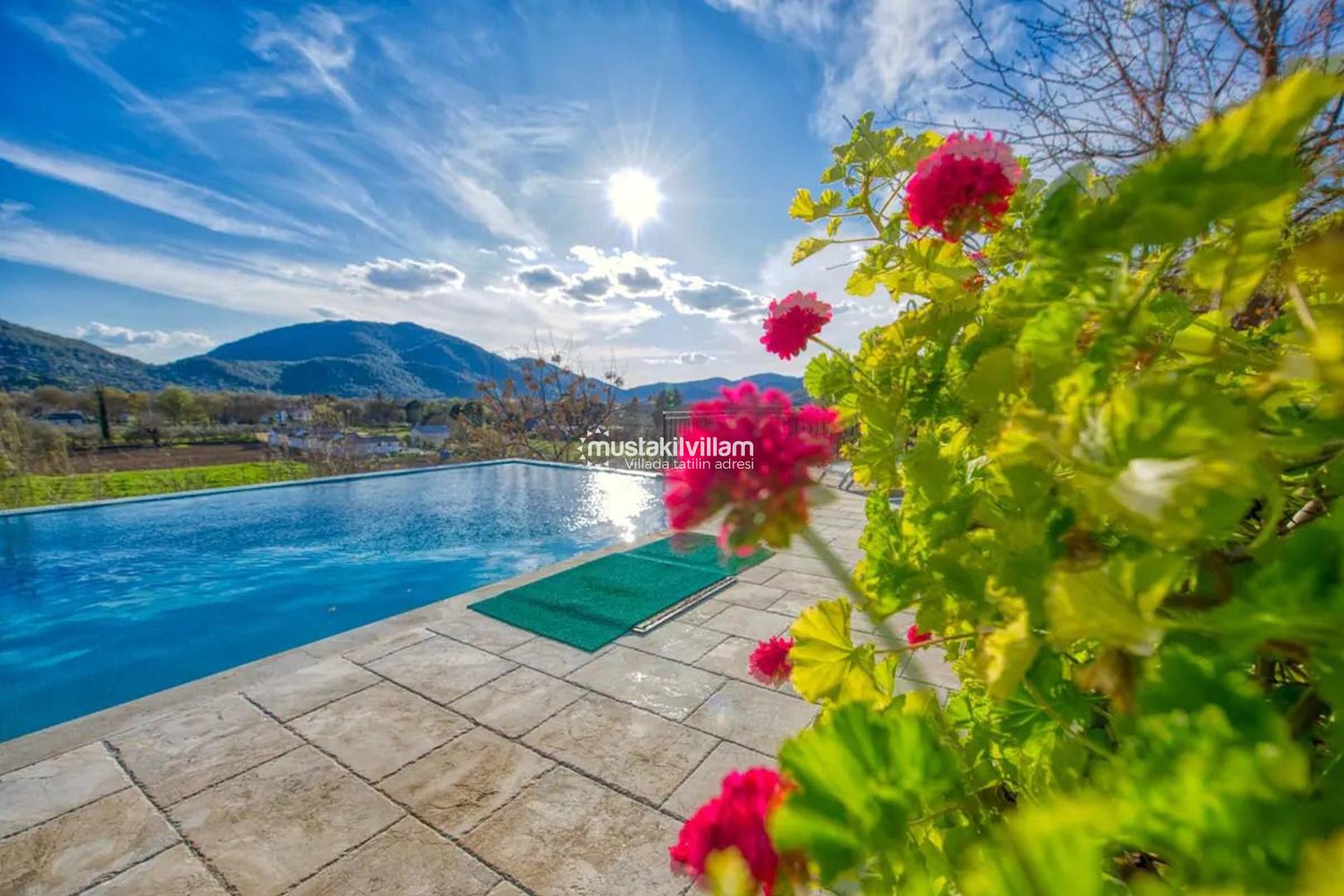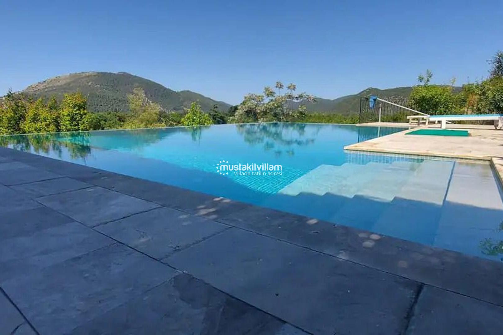 Kayaköy’ün etkileyici vadi manzarasına karşı konumlanan villa, manzarayla bütünleşen sonsuzluk havuzu sayesinde misafirlerine görsel açıdan büyüleyici bir atmosfer sunar. Havuz terası; şezlonglar, gölgelik alanlar ve rahat oturma bölümleriyle donatılmış olup gün boyu dinlenme ve keyifli vakit geçirme imkânı sağlar. Doğa ile iç içe olan bahçe alanı, sakin ve huzurlu bir tatil ortamı oluşturur.
