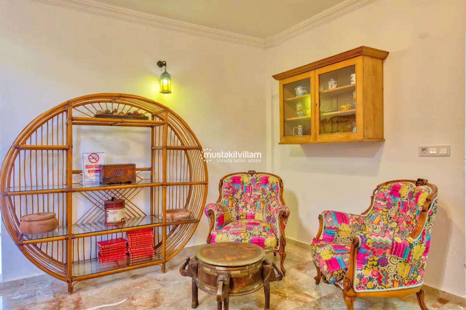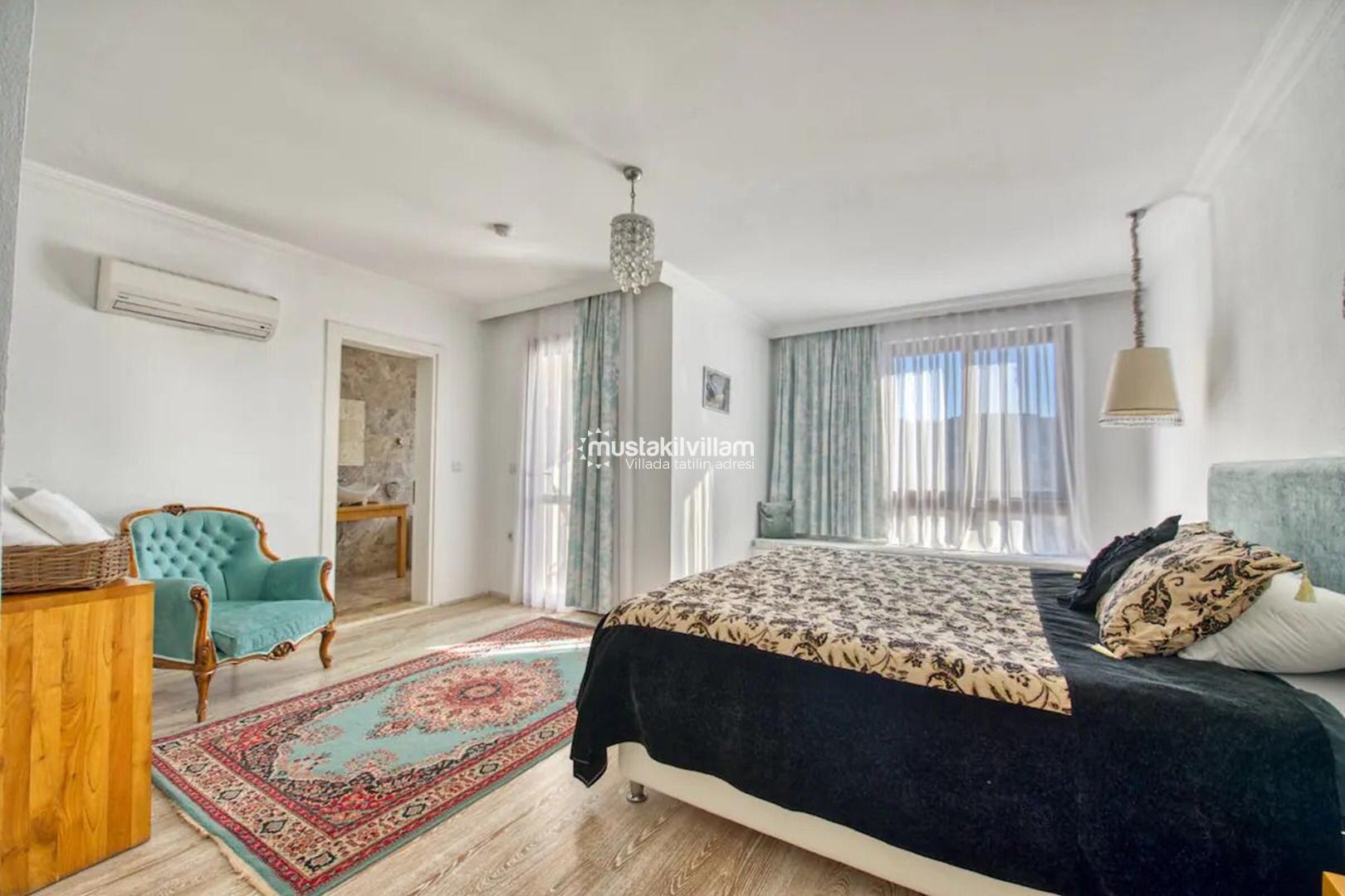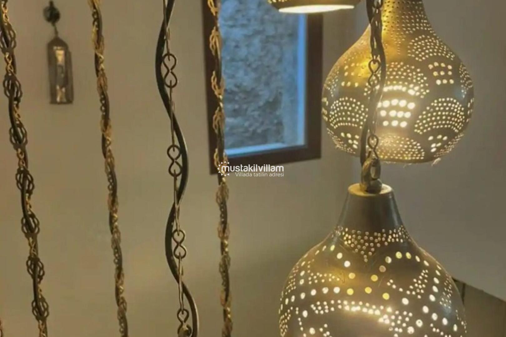 İç mekânda ferah bir salon, modern Amerikan mutfak ve konfor ön planda tutularak tasarlanmış yaşam alanları yer alır. Tüm yatak odalarında klima bulunmakta olup her odanın kendine ait özel banyosu vardır. Şık ve özenli dekorasyon anlayışı sayesinde hem estetik hem de rahat bir konaklama imkânı sunulmaktadır.