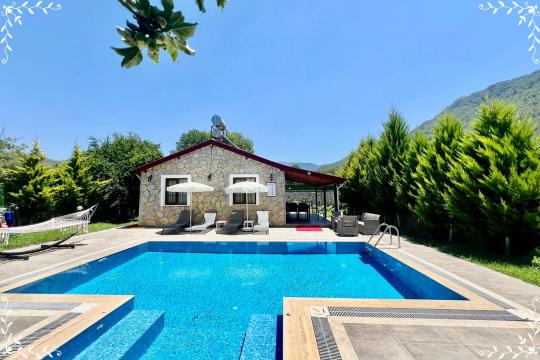 🌿 Fethiye Kayaköy’de Korunaklı Havuzlu ve Doğa İçinde 4 Kişilik Lüks Kiralık Villa – Villa Karamelim 🌿
