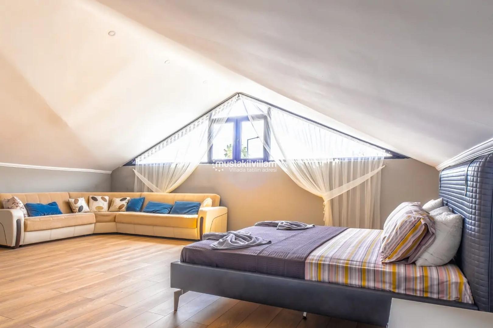 Çatı katı, manzara ve ek kullanım alanı isteyen misafirler için ideal bir alan sunar.