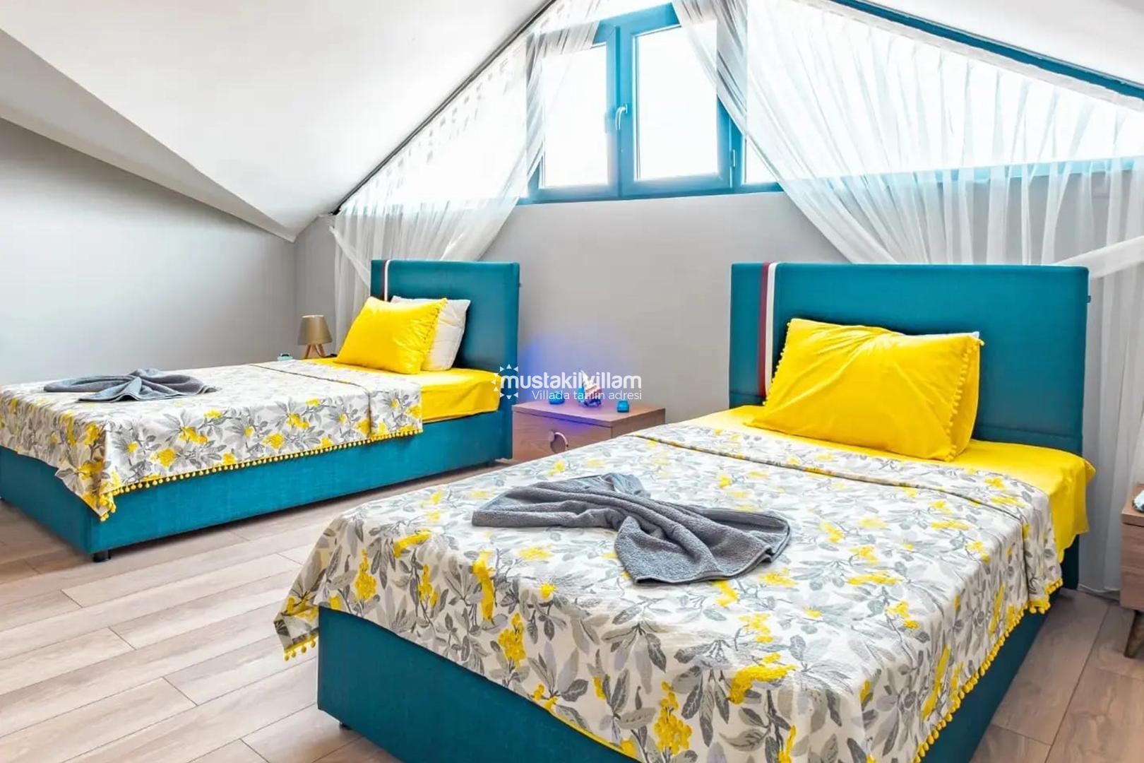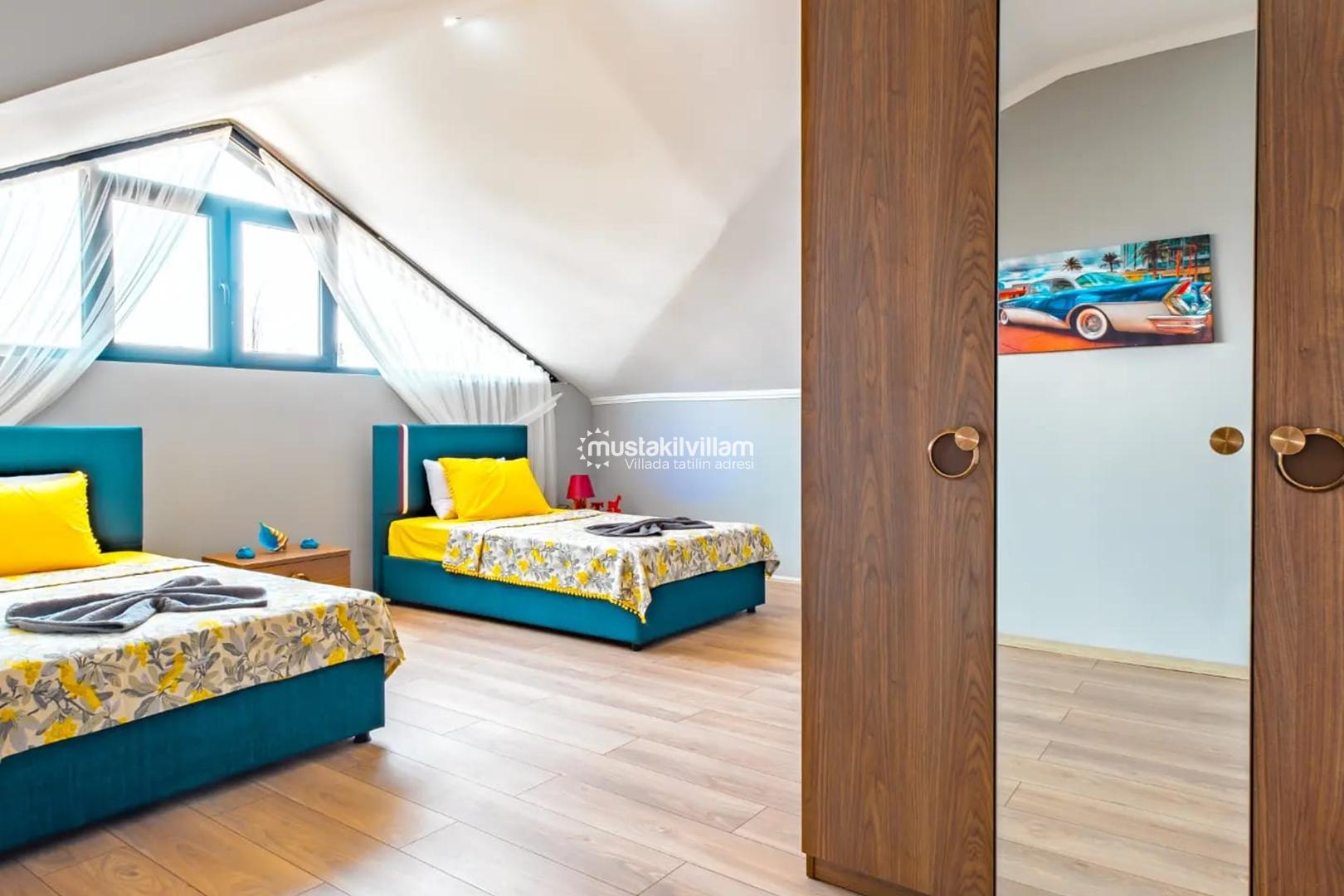 - Beşinci Yatak Odası: İki tek kişilik yatak, klima, TV.