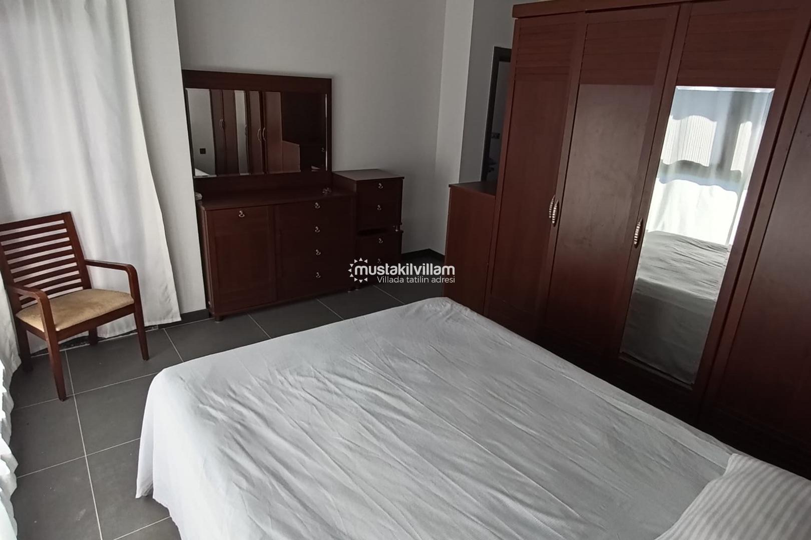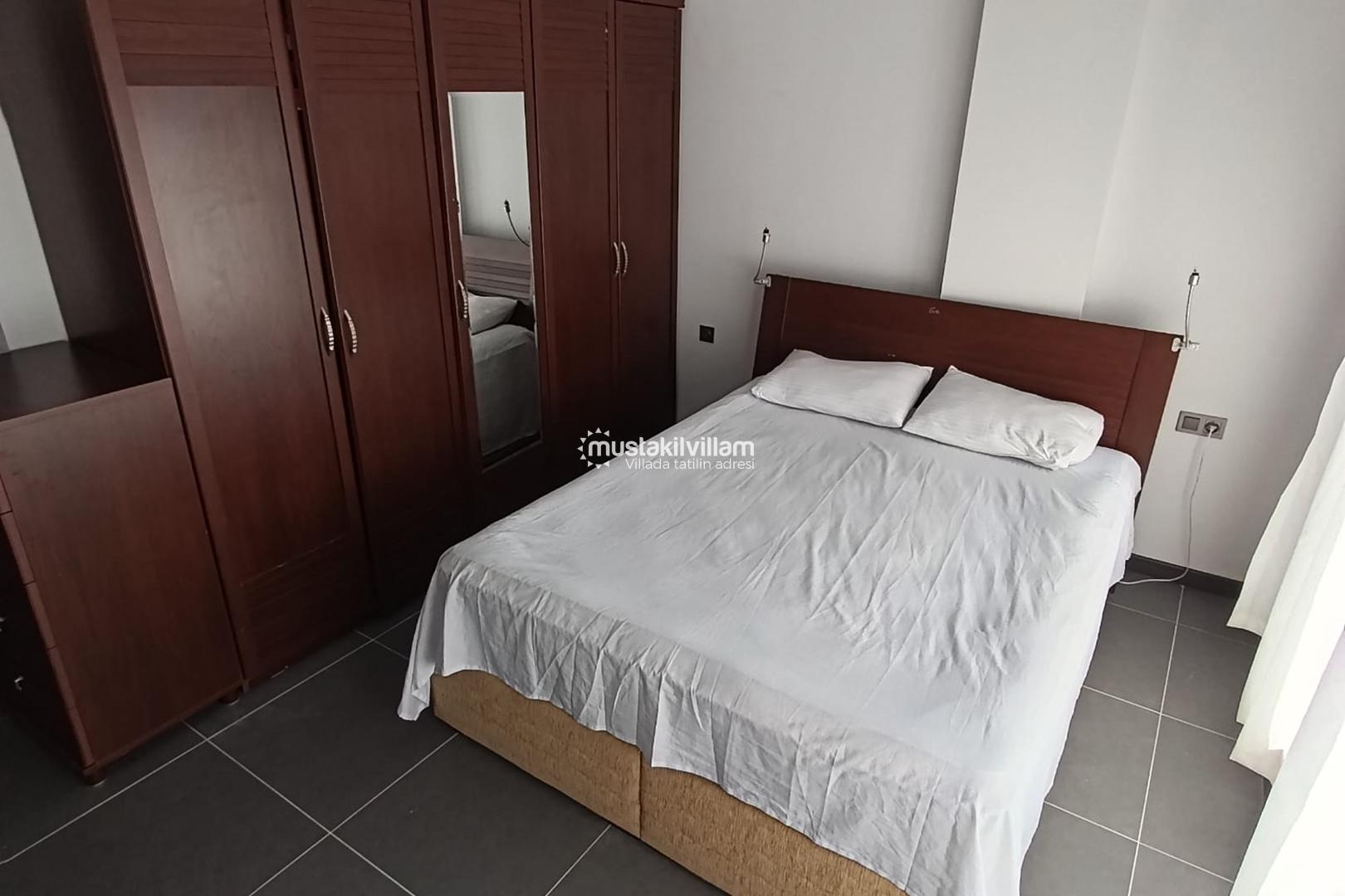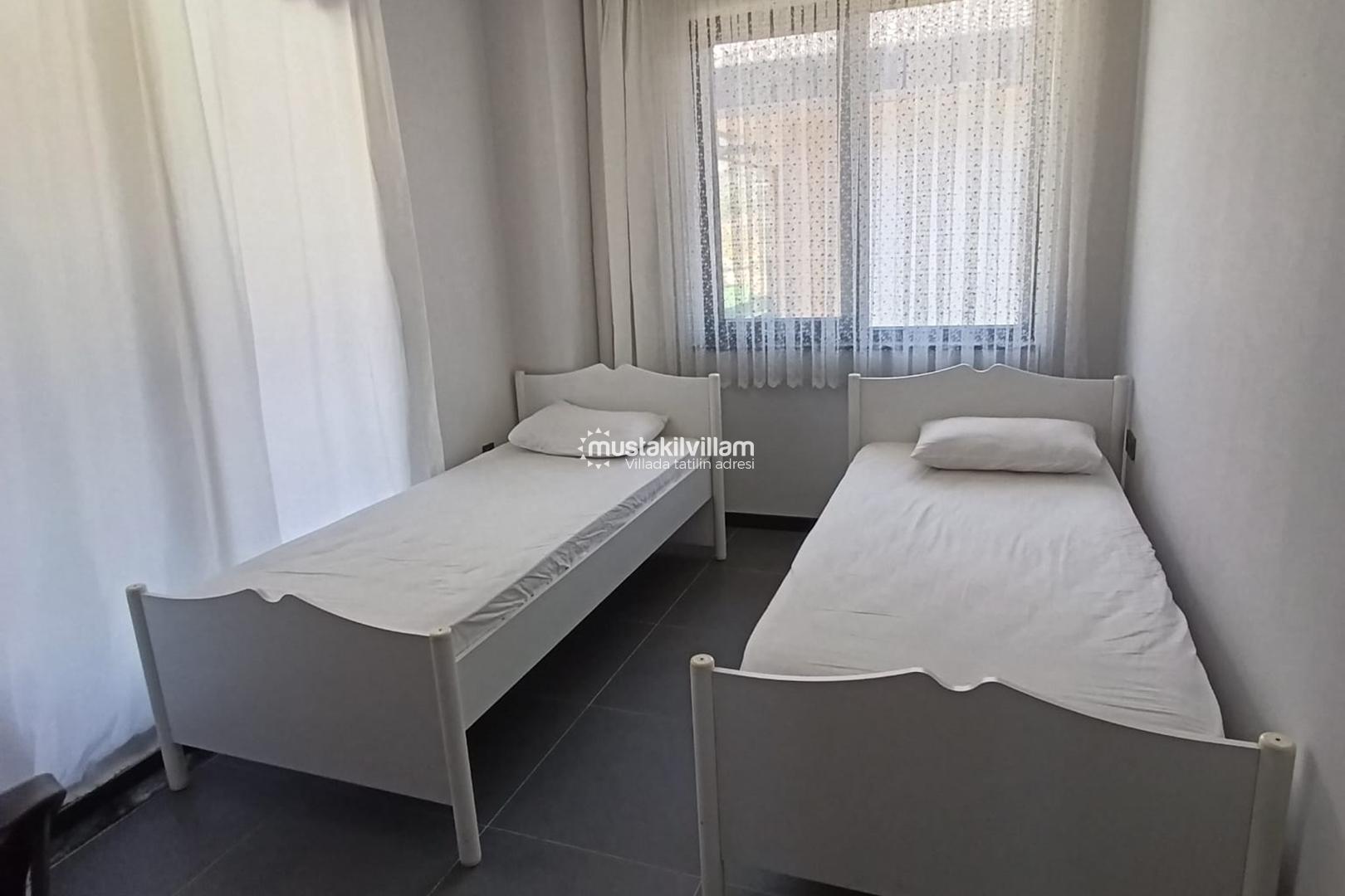 Villada toplamda 1 adet çift kişilik yatak ve 3 adet tek kişilik yatak yer almaktadır. Bu kapasite sayesinde 5 kişiye kadar konforlu bir konaklama mümkündür. Aileler ve arkadaş grupları için oldukça uygun olan villa, her odasında bulunan klima sayesinde yaz aylarında serin bir ortam sunar.