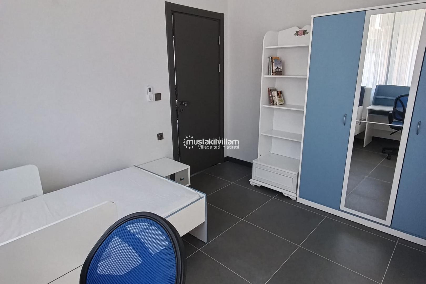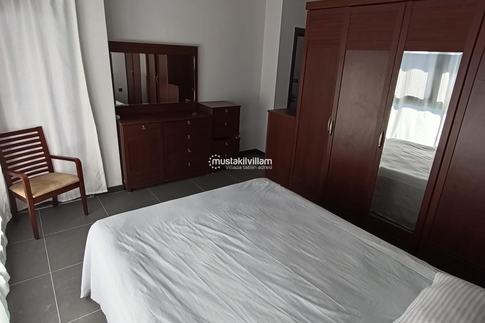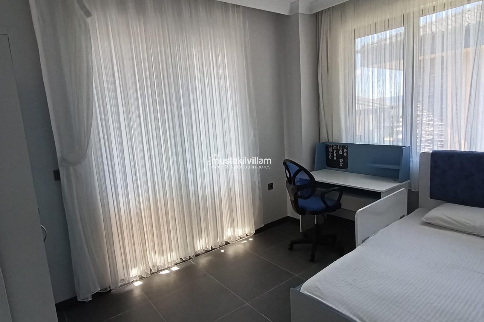 Villada toplamda 1 adet çift kişilik yatak ve 3 adet tek kişilik yatak yer almaktadır. Bu kapasite sayesinde 5 kişiye kadar konforlu bir konaklama mümkündür. Aileler ve arkadaş grupları için oldukça uygun olan villa, her odasında bulunan klima sayesinde yaz aylarında serin bir ortam sunar.