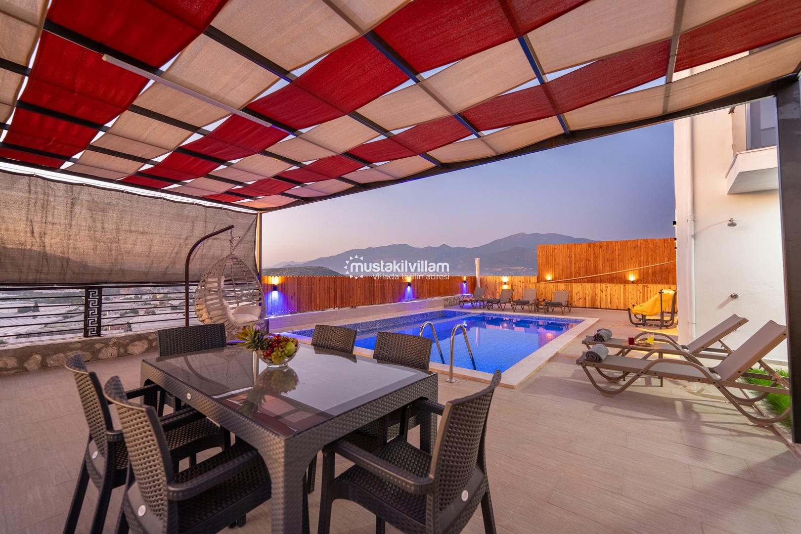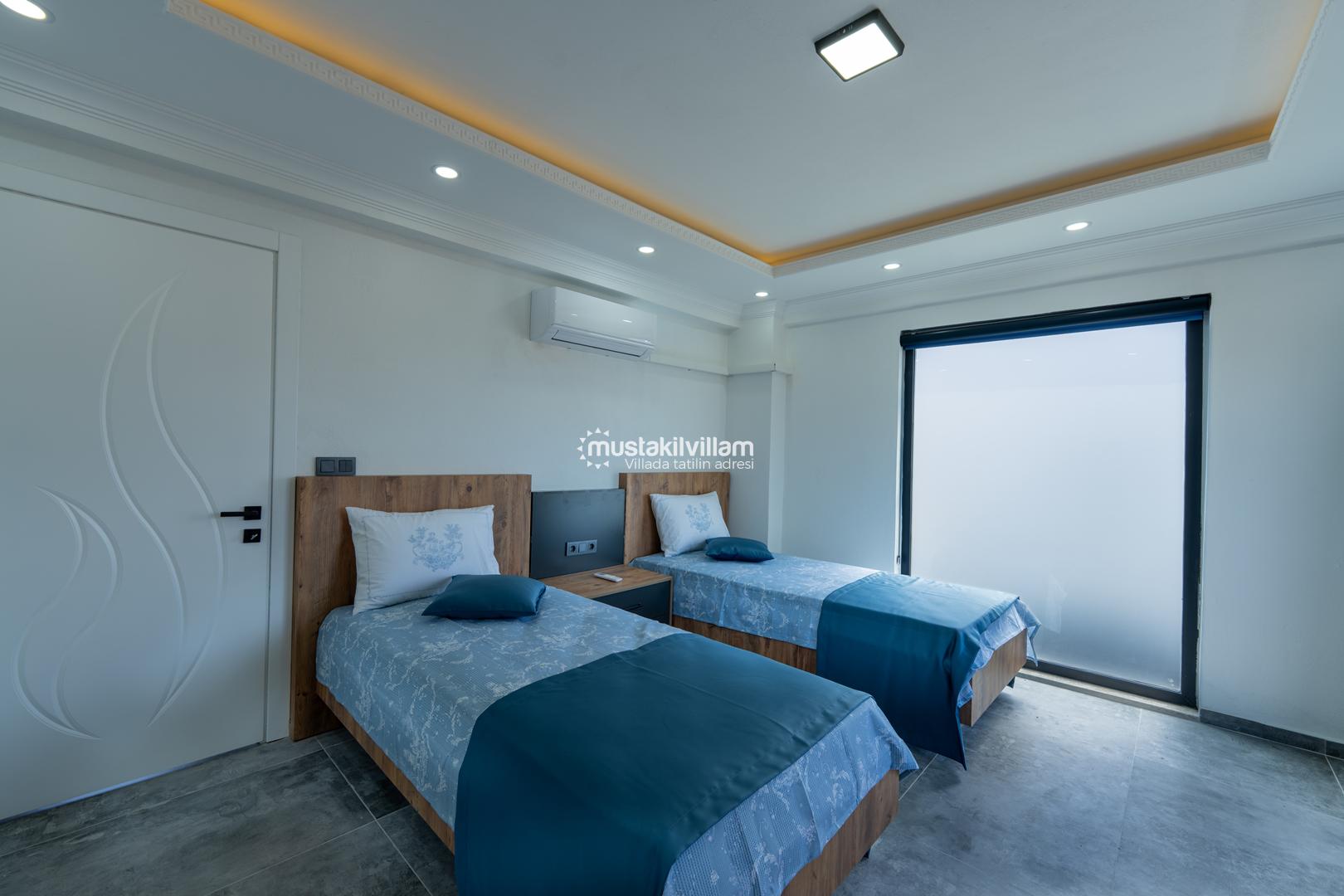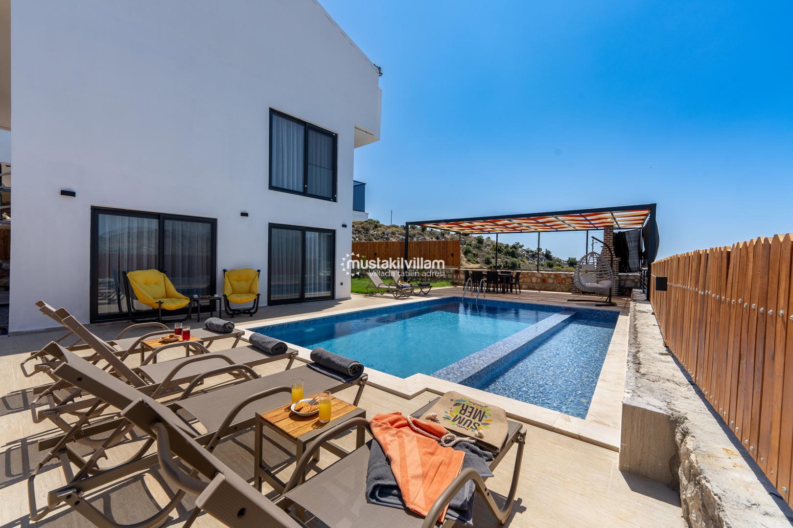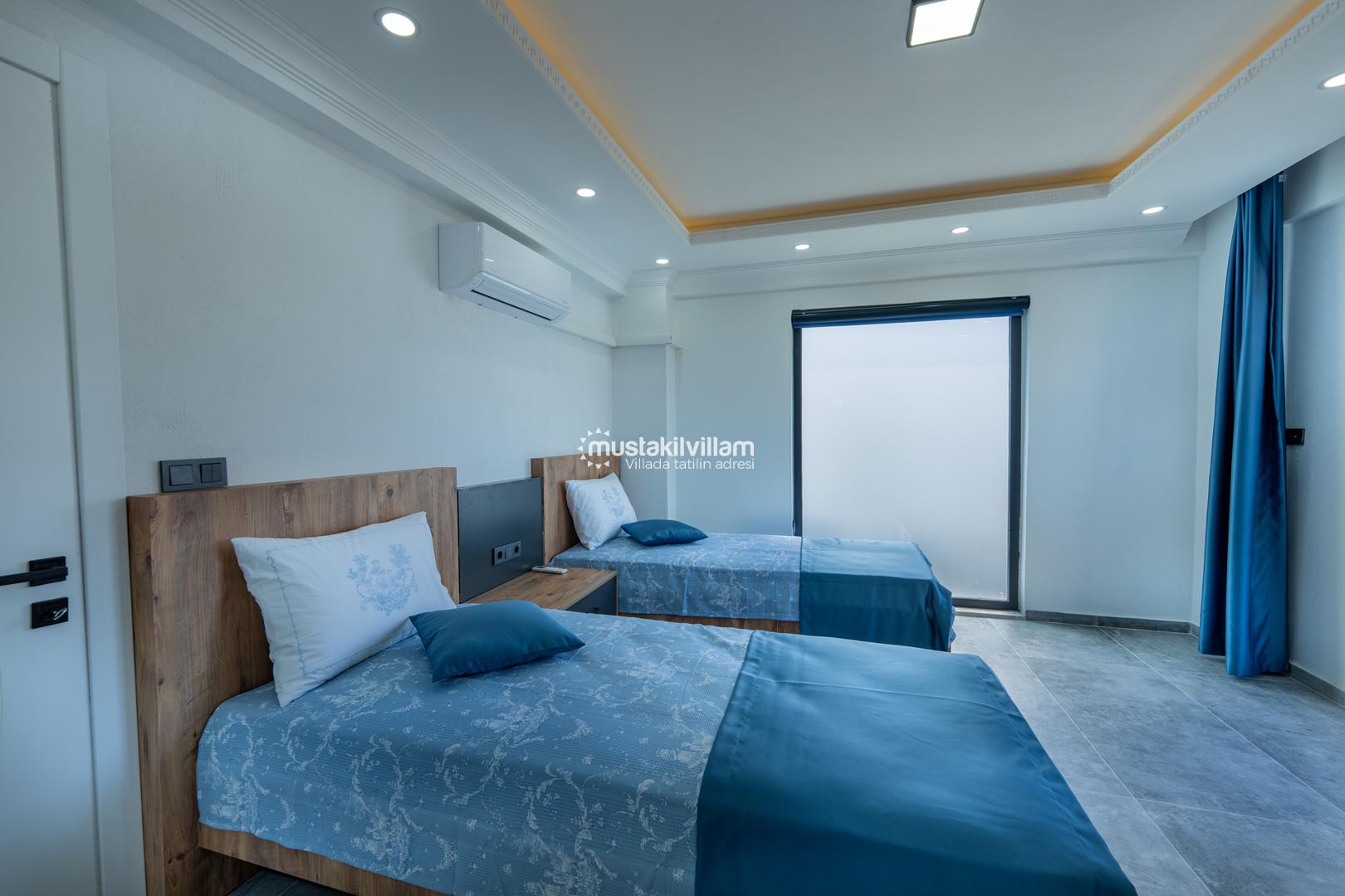 Muğla’nın doğal güzellikleriyle öne çıkan Seydikemer ilçesinin Kumluova mahallesinde yer alan bu modern villa, Patara Plajı’na sadece 6 kilometre mesafededir. Yeni inşa edilmiş yapısı ve çağdaş mimarisiyle dikkat çeken villa, 6 kişilik konaklama kapasitesiyle özellikle çekirdek aileler ve küçük aile grupları için ideal bir tatil imkânı sunar. Villanın dışarıdan görünmeyecek şekilde konumlandırılmış özel yüzme havuzu, tam mahremiyet sağlamaktadır. Geniş bahçesinde yer alan barbekü alanı, açık havada keyifli yemekler hazırlamanıza olanak tanır. Ebeveyn yatak odasında bulunan jakuzi ise tatil boyunca dinlenme ve rahatlama imkânı sunar. Modern mobilyalarla donatılmış iç mekân, konforlu ve işlevsel bir yaşam alanı sağlar. Doğayla iç içe huzurlu bir atmosferde, denize yakın konumuyla bu villa, kalite ve konforu bir arada arayan misafirler için ideal bir seçenektir.