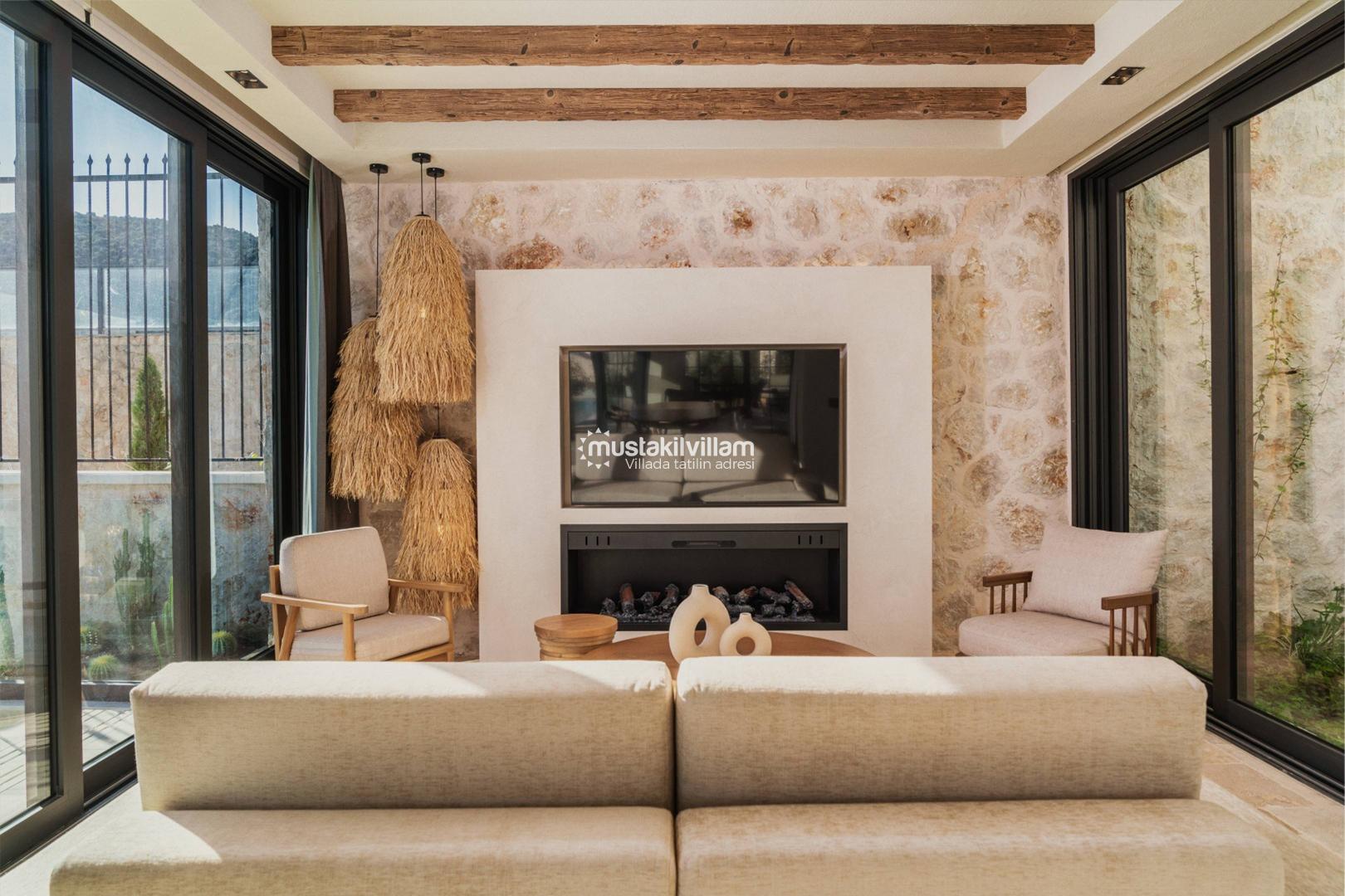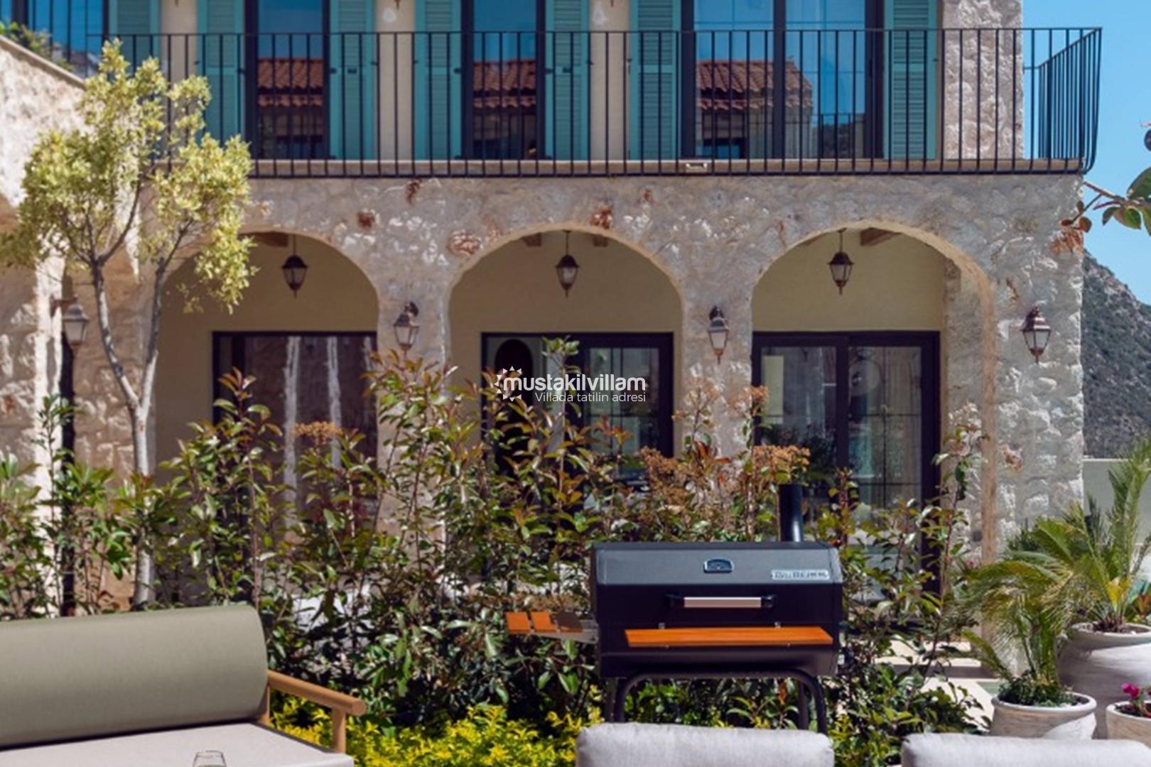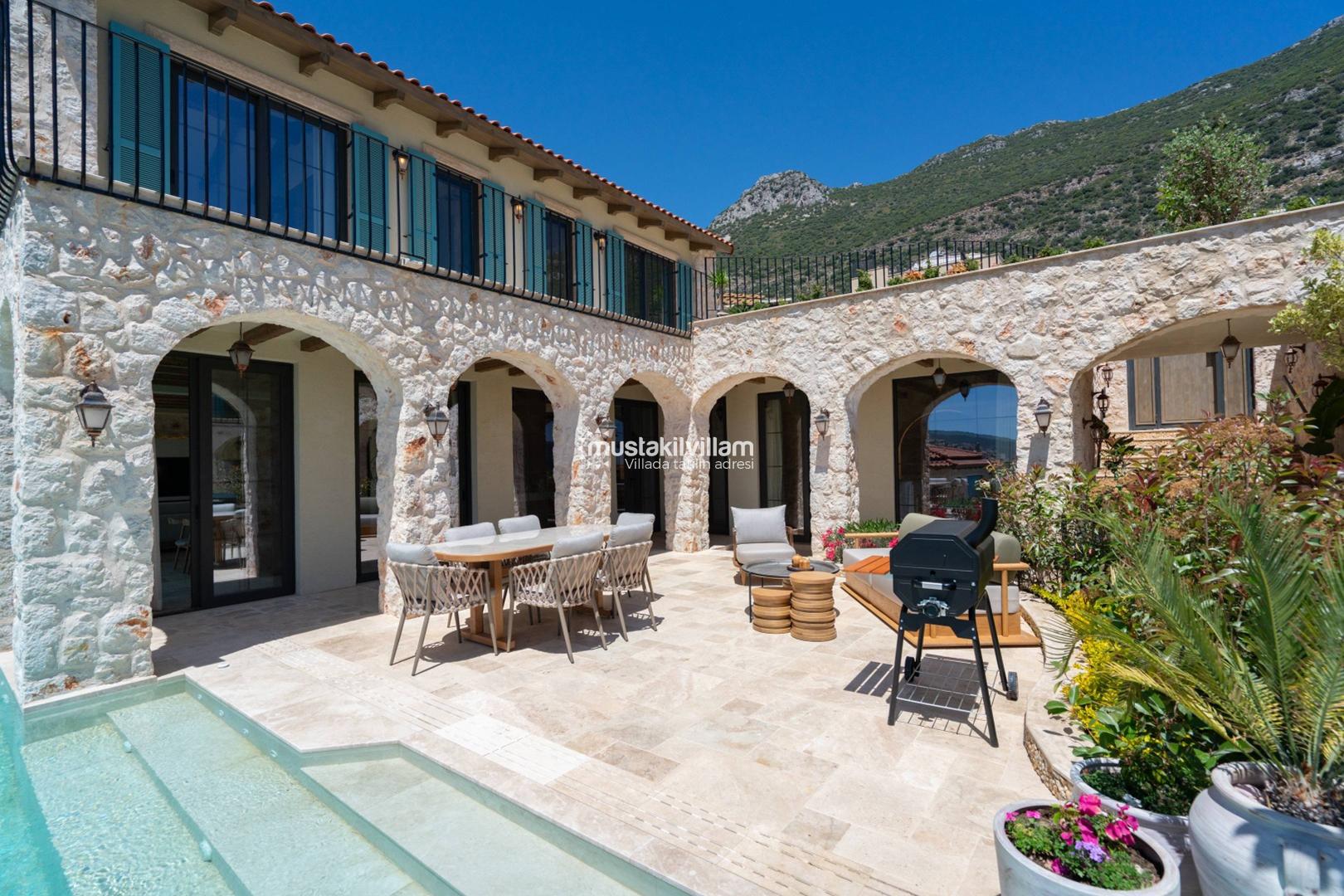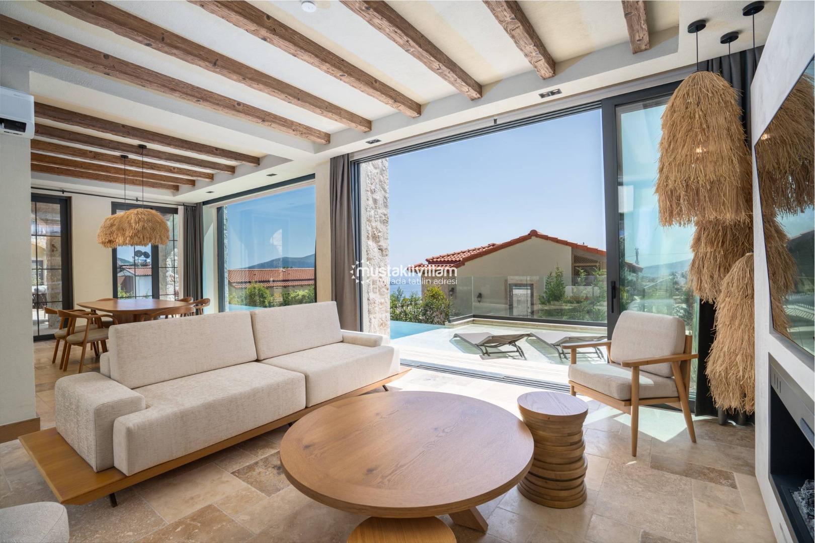 Modern mimari ile Akdeniz esintilerinin harmanlandığı villa, ferah yaşam alanları ve deniz ile dağ manzarası sayesinde huzurlu ve keyifli bir tatil deneyimi sunar.