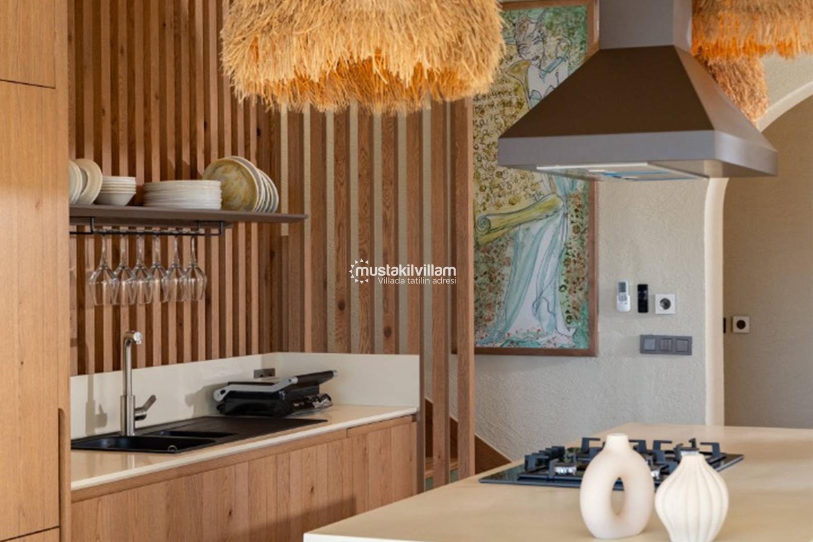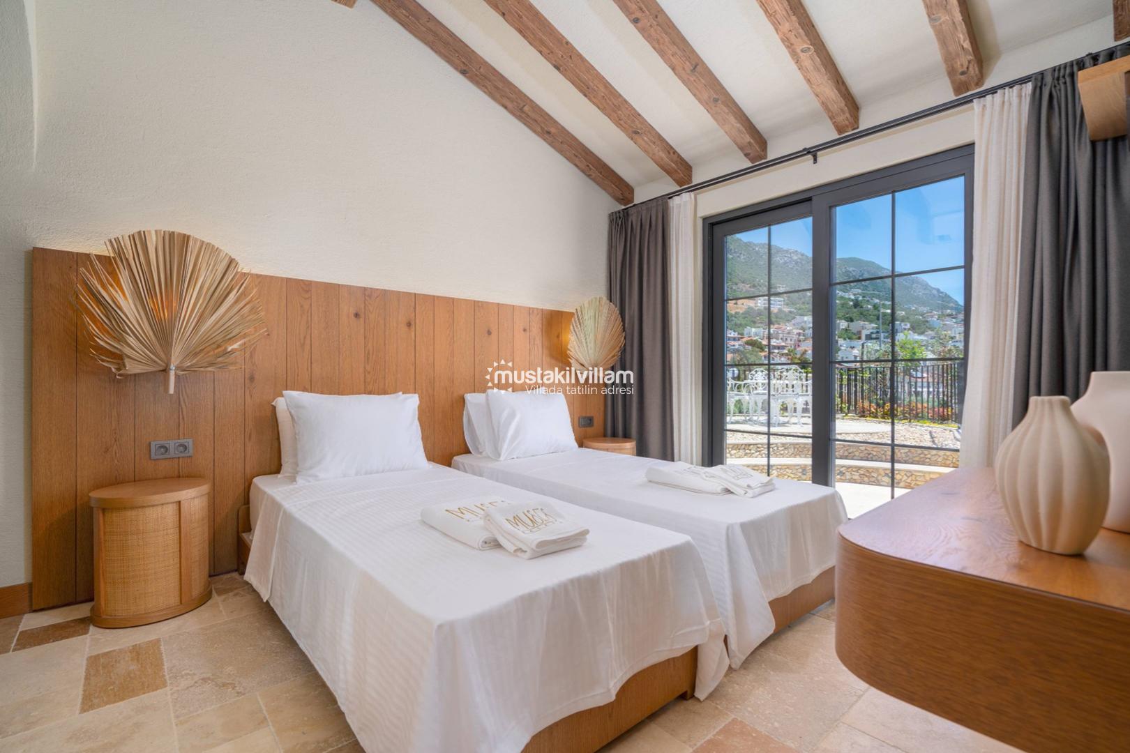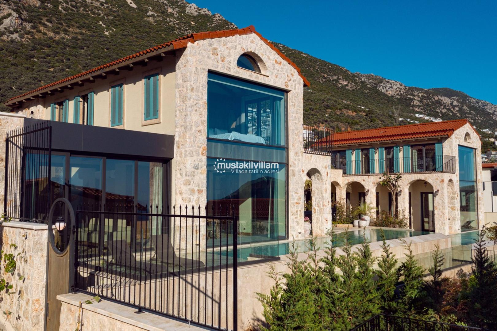 Modern mimari ile Akdeniz esintilerinin harmanlandığı villa, ferah yaşam alanları ve deniz ile dağ manzarası sayesinde huzurlu ve keyifli bir tatil deneyimi sunar.