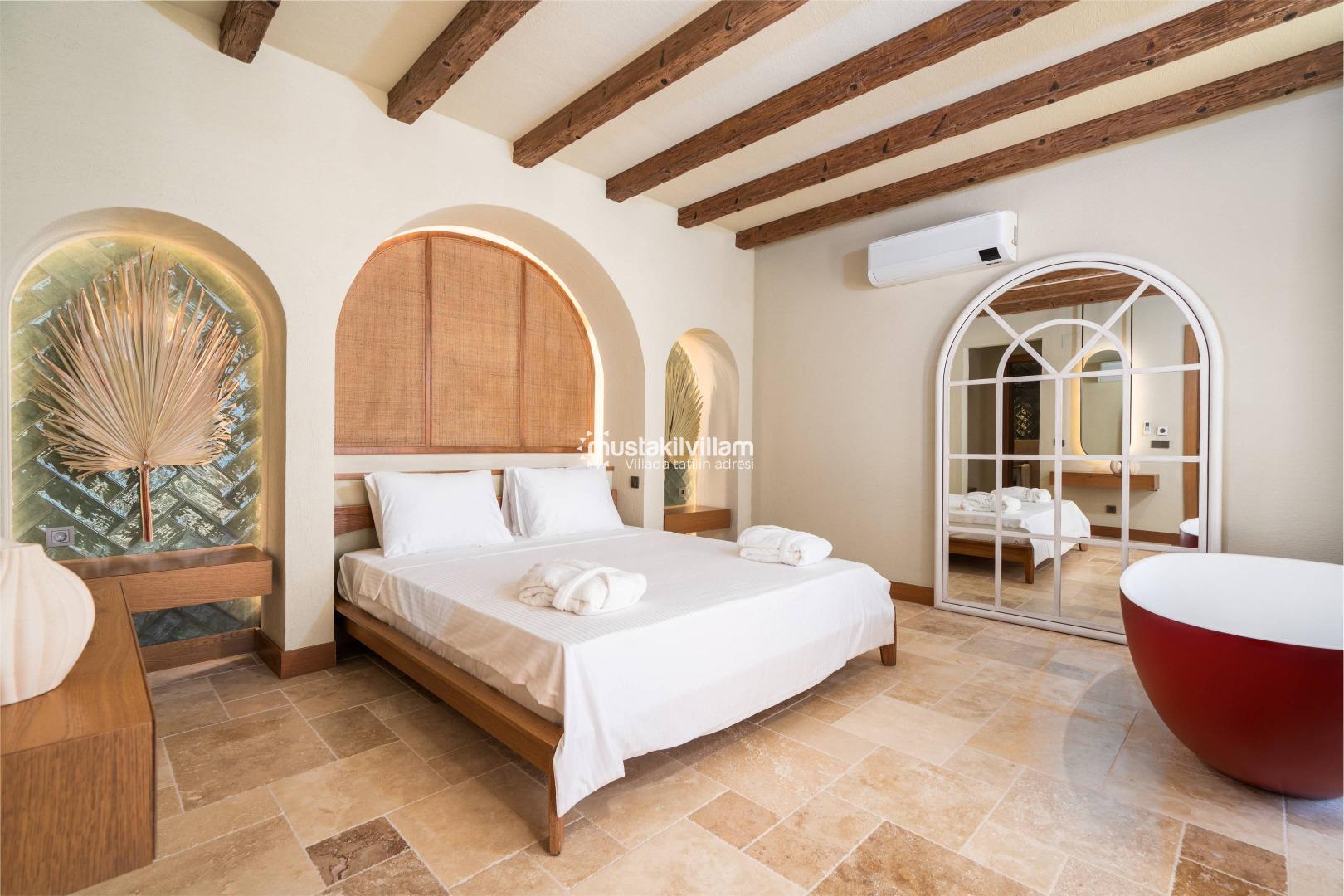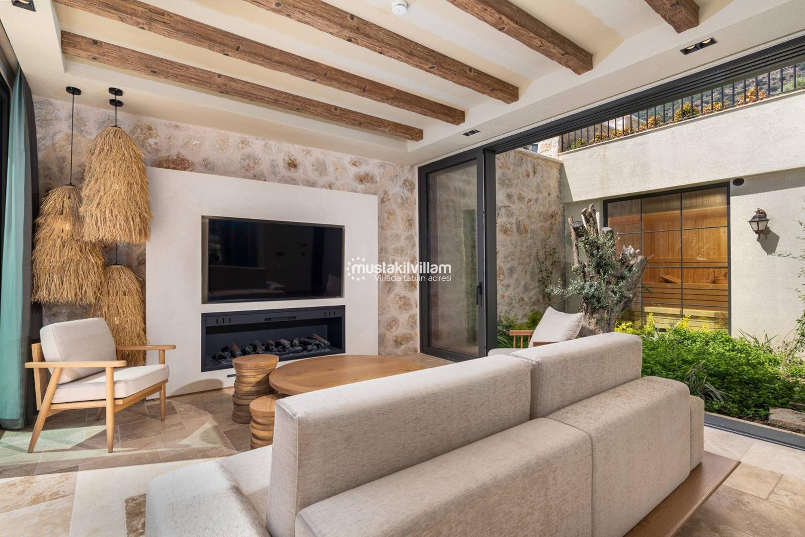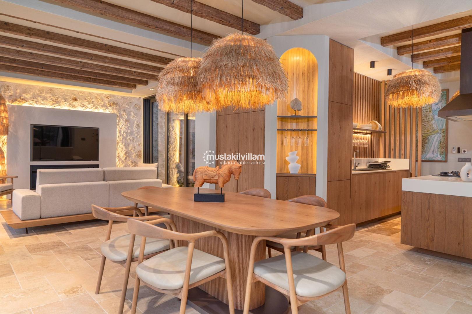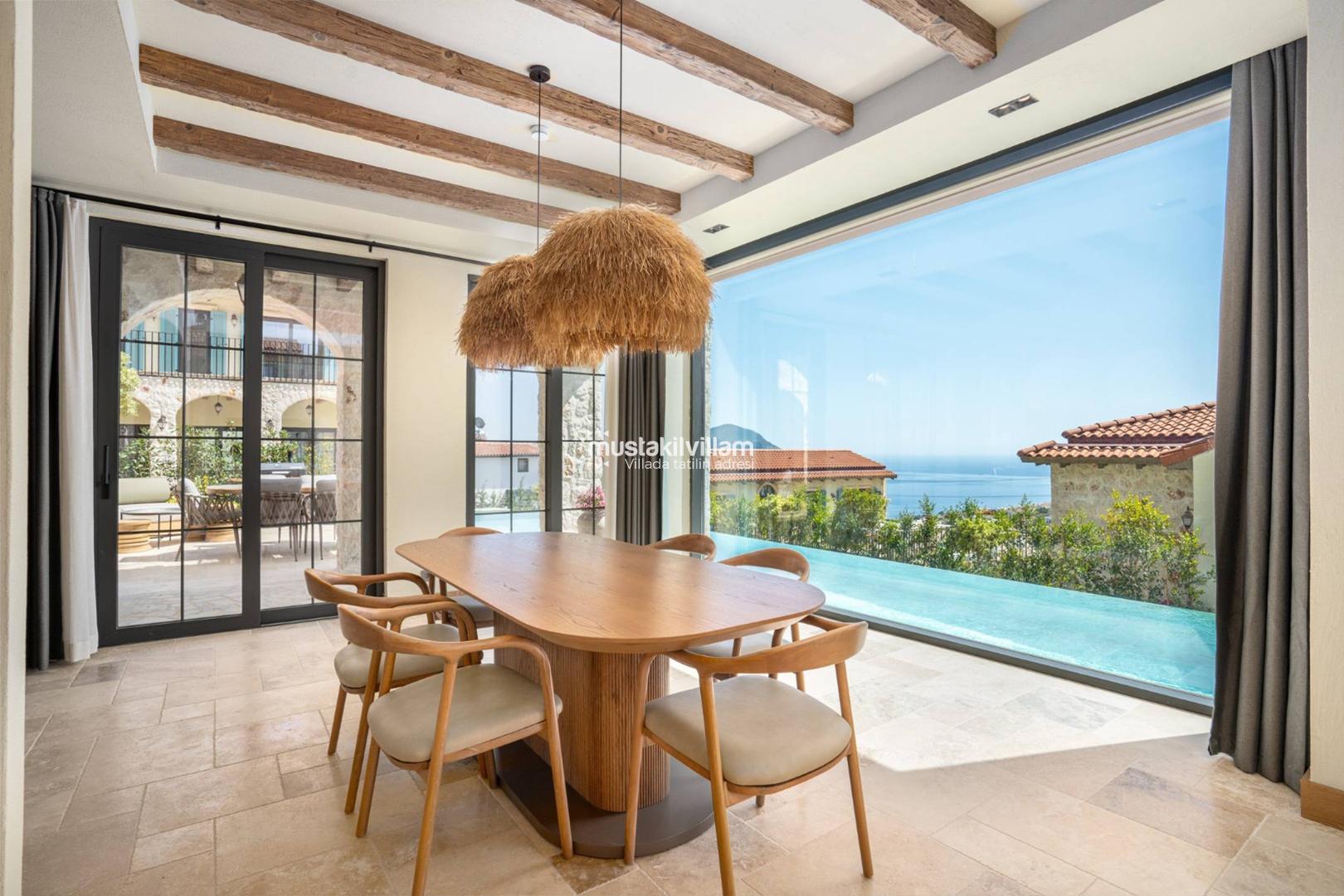 Modern mimari ile Akdeniz esintilerinin harmanlandığı villa, ferah yaşam alanları ve deniz ile dağ manzarası sayesinde huzurlu ve keyifli bir tatil deneyimi sunar.