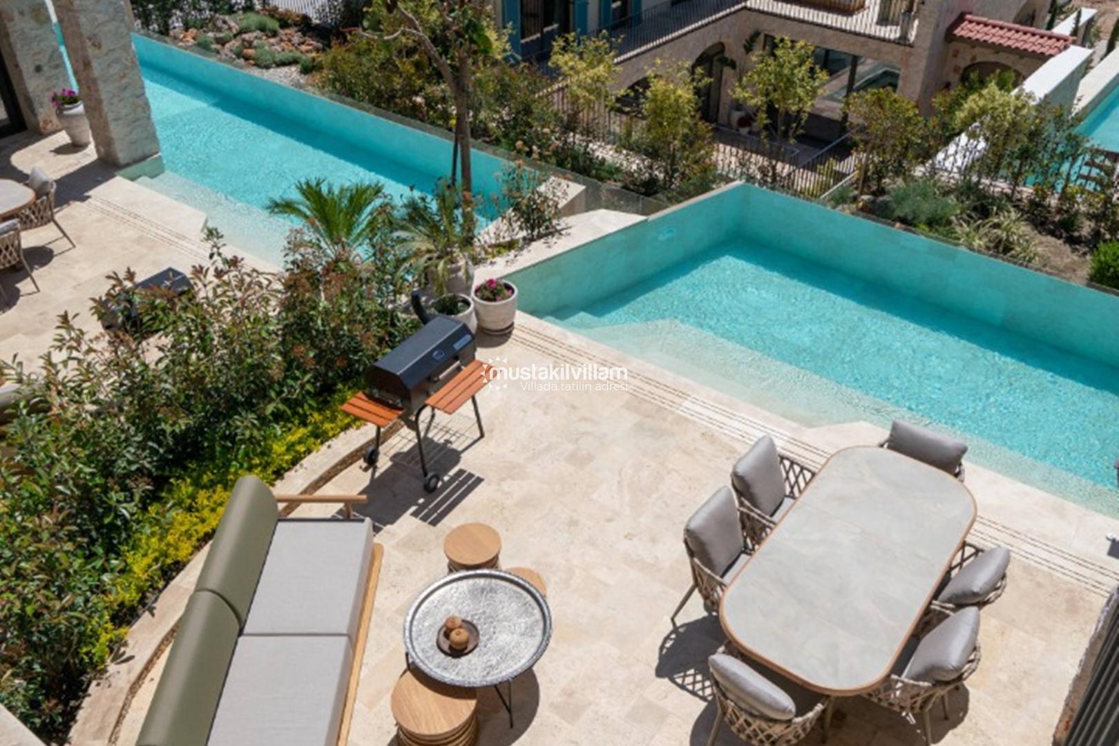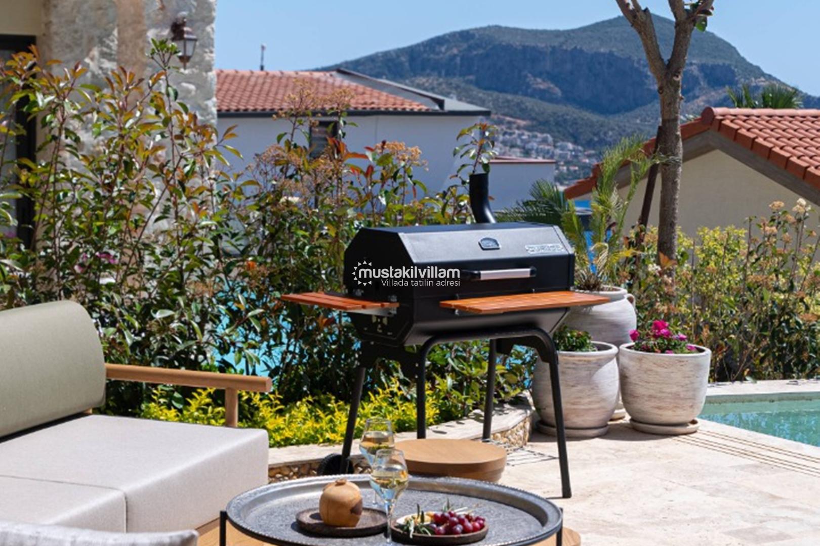 Villanın dış alanında yaklaşık 12 × 3 metre ölçülerinde özel yüzme havuzu yer almaktadır. Havuz çevresi şezlonglar, veranda oturma alanı ve barbekü/mangal ile donatılmıştır. Bu alan, sabah kahvaltılarından gün batımı keyfine ve akşam sohbetlerine kadar açık havada keyifli zaman geçirmenize olanak tanır.
